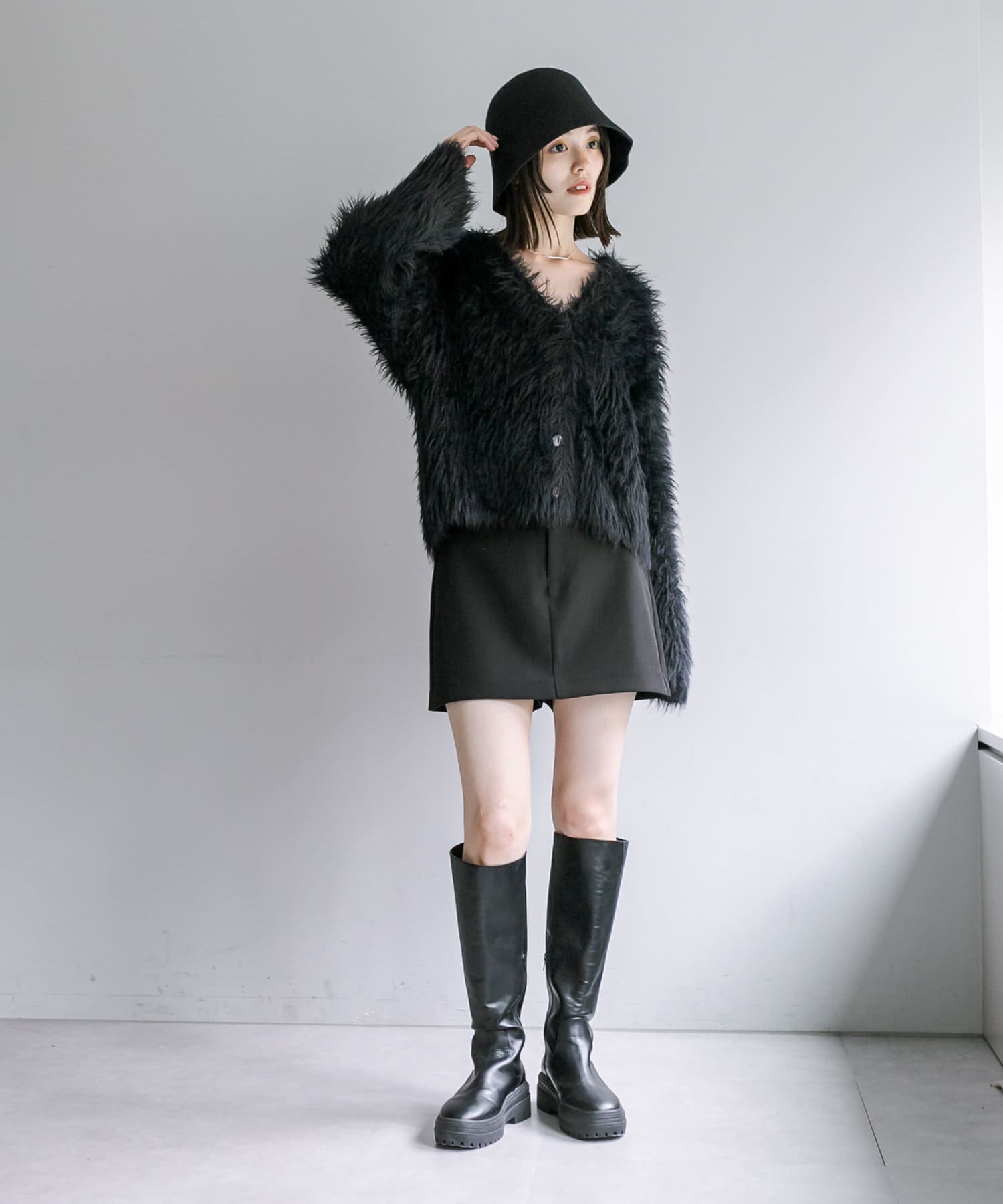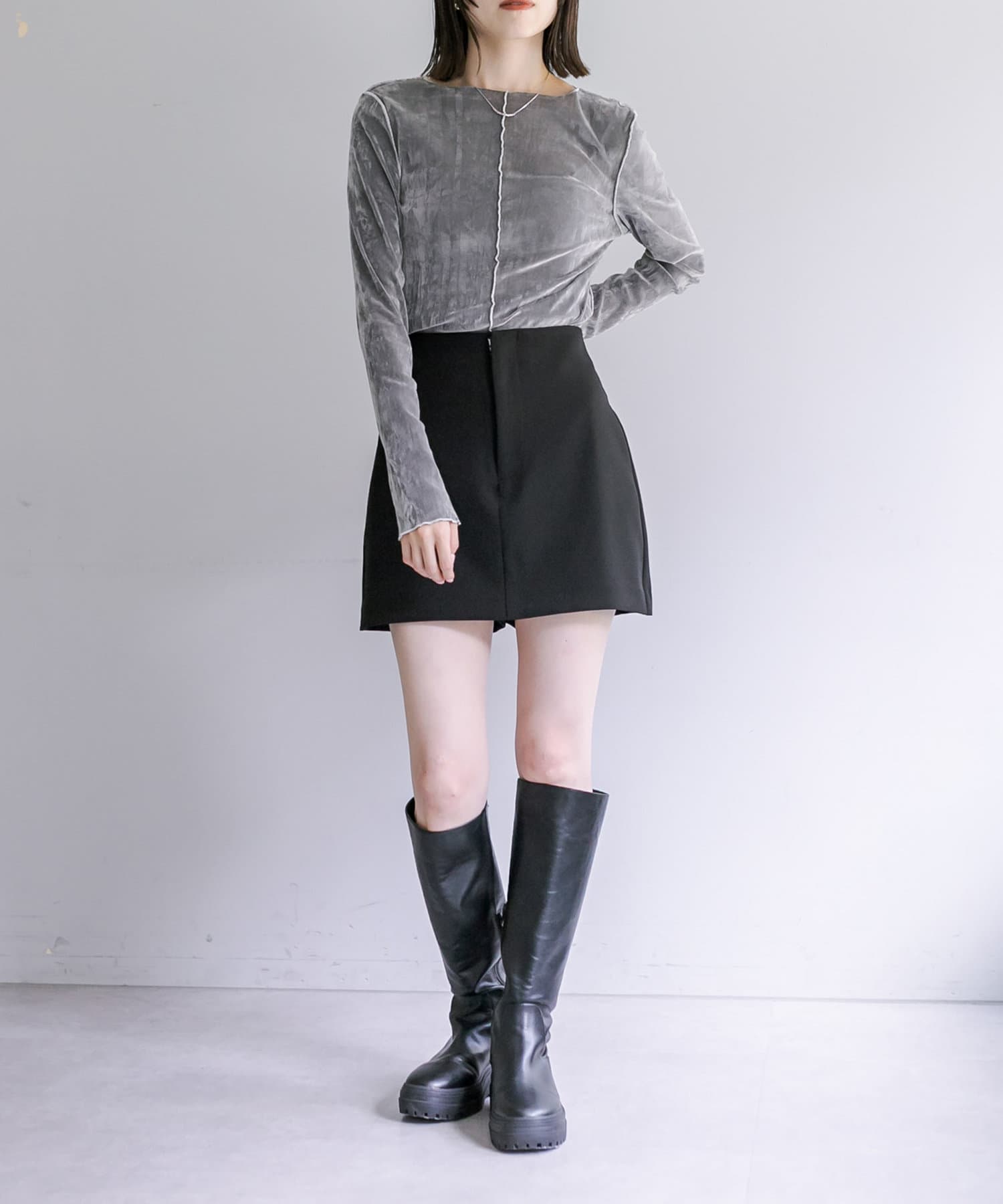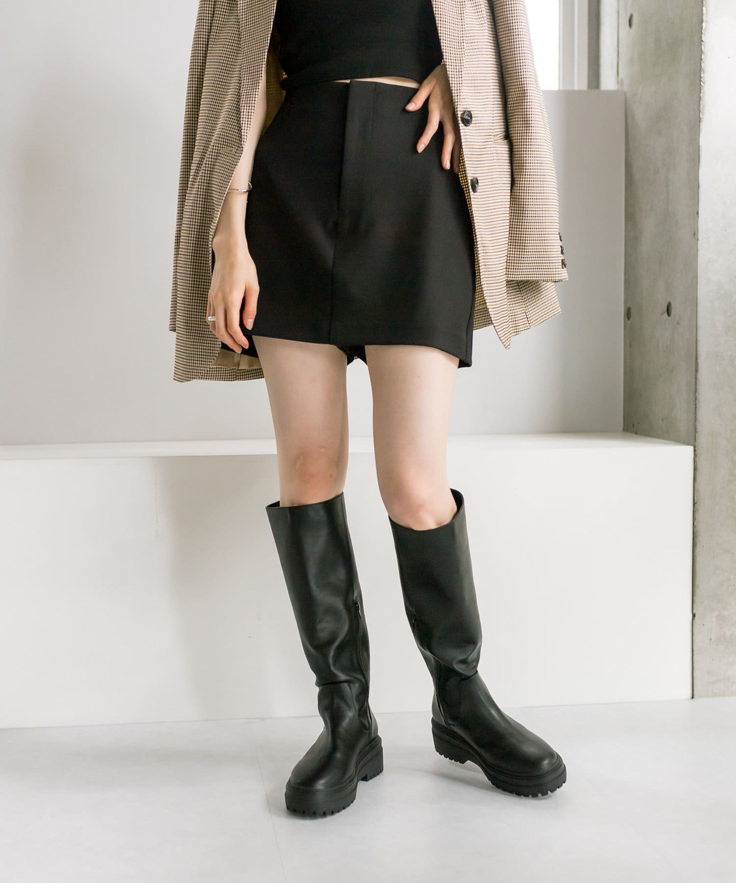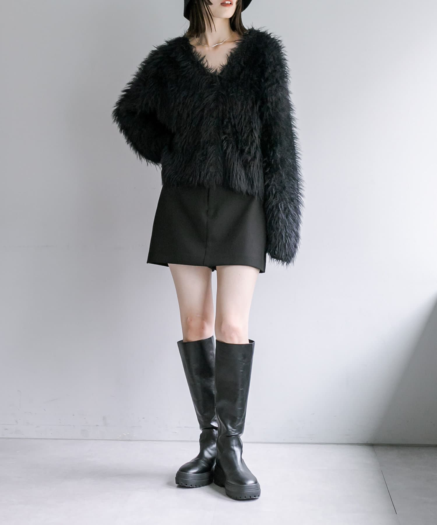 ・今年らしいロングブーツ合わせで程よく肌見せするのがおすすめ。