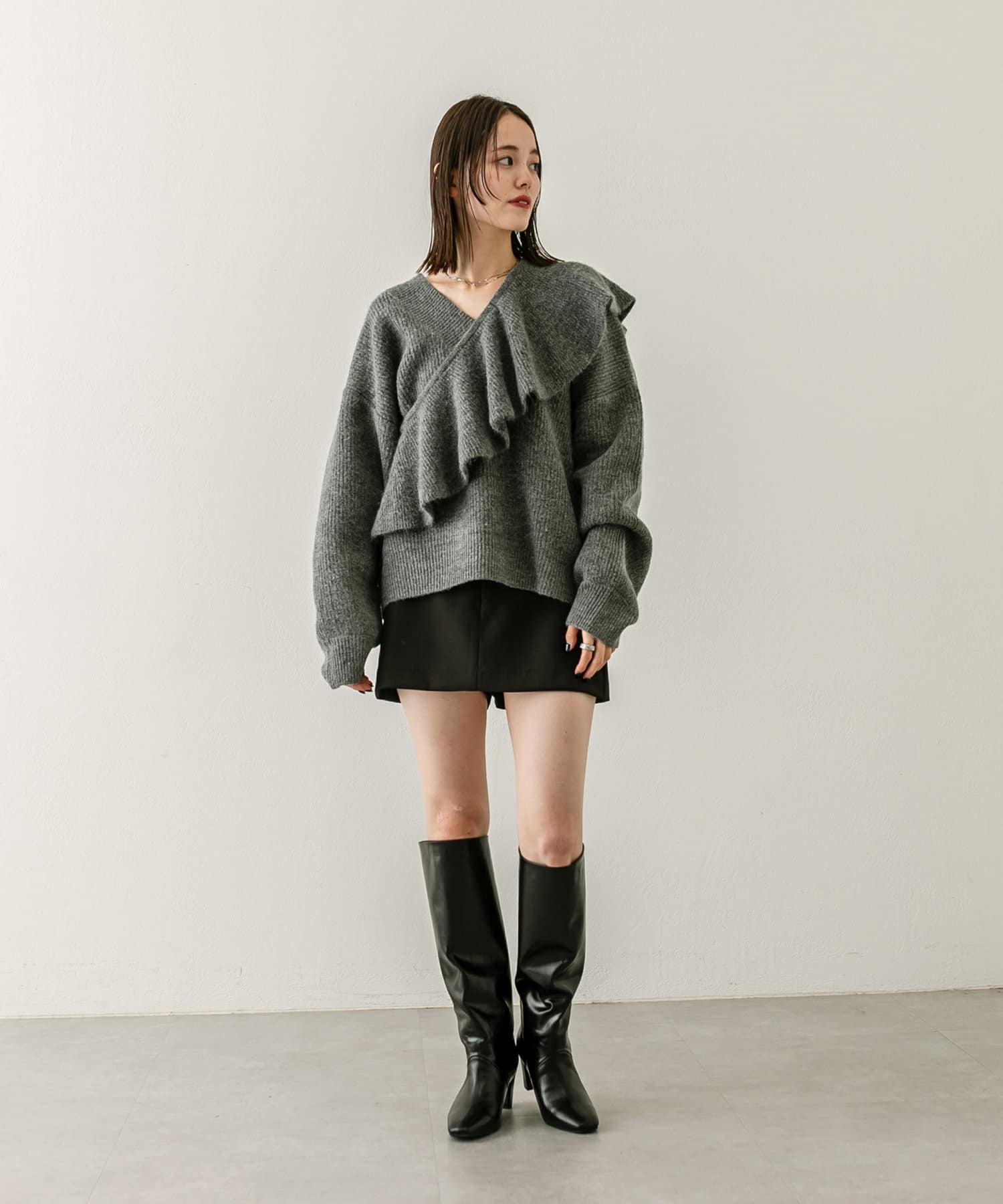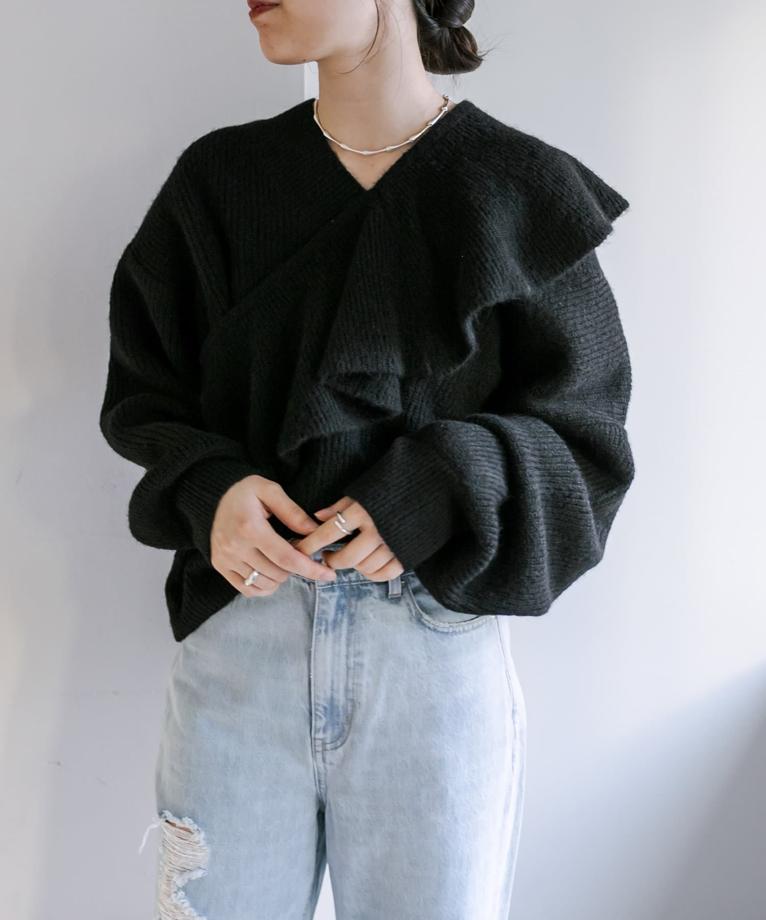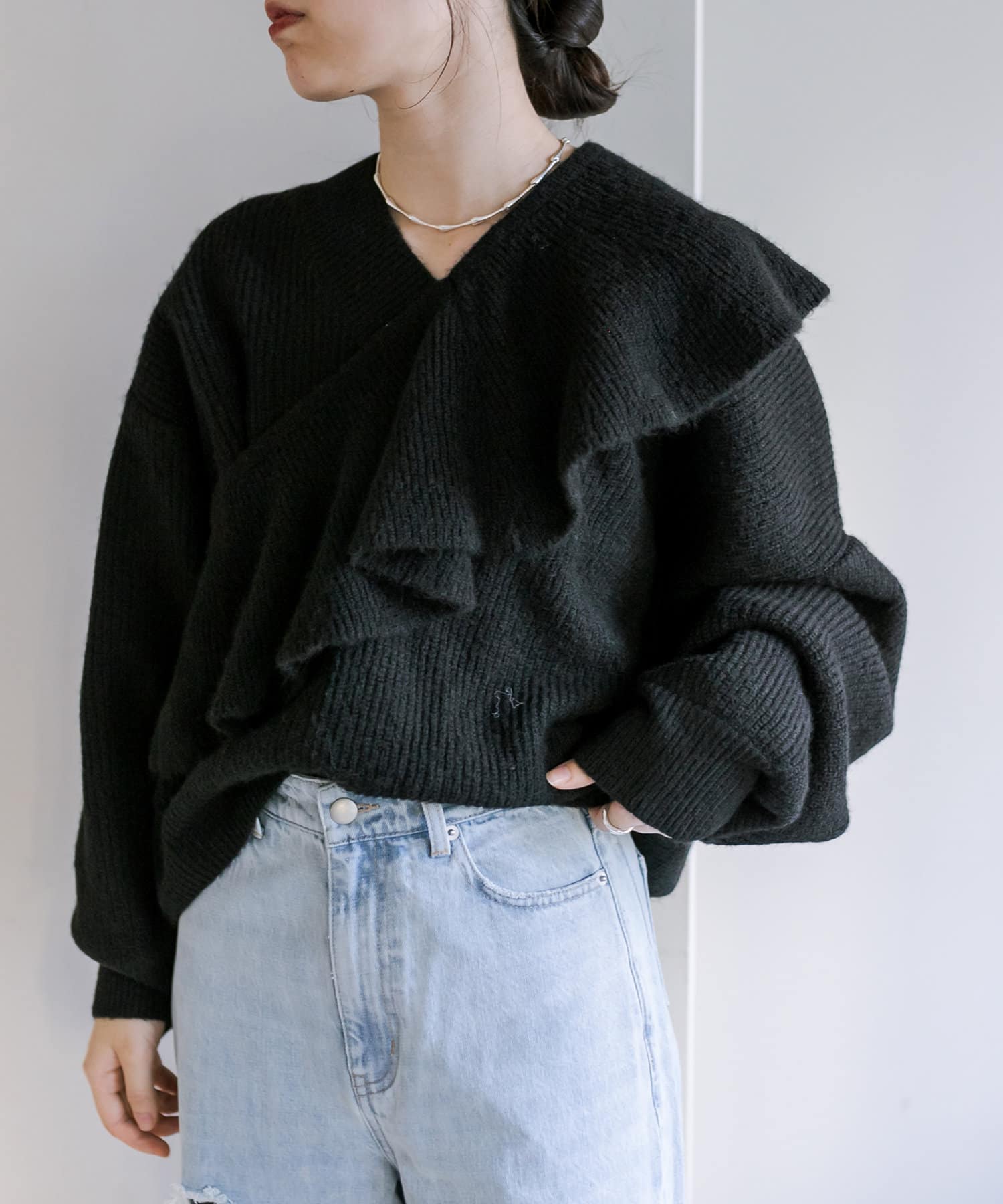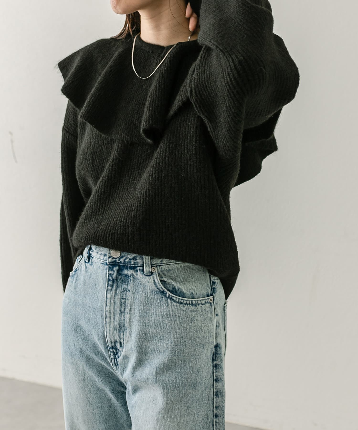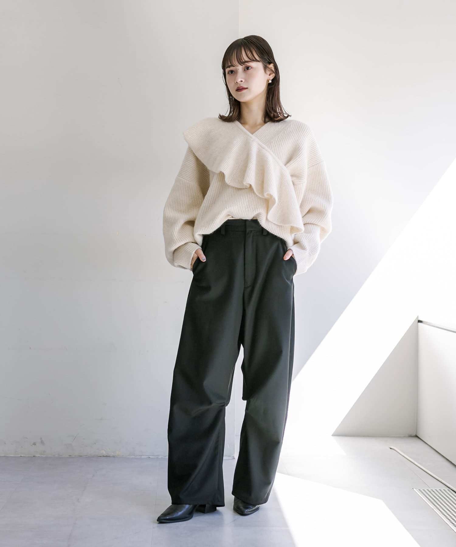 ・フリルを斜めがけしたキャッチーなスタイリングもおすすめです。
