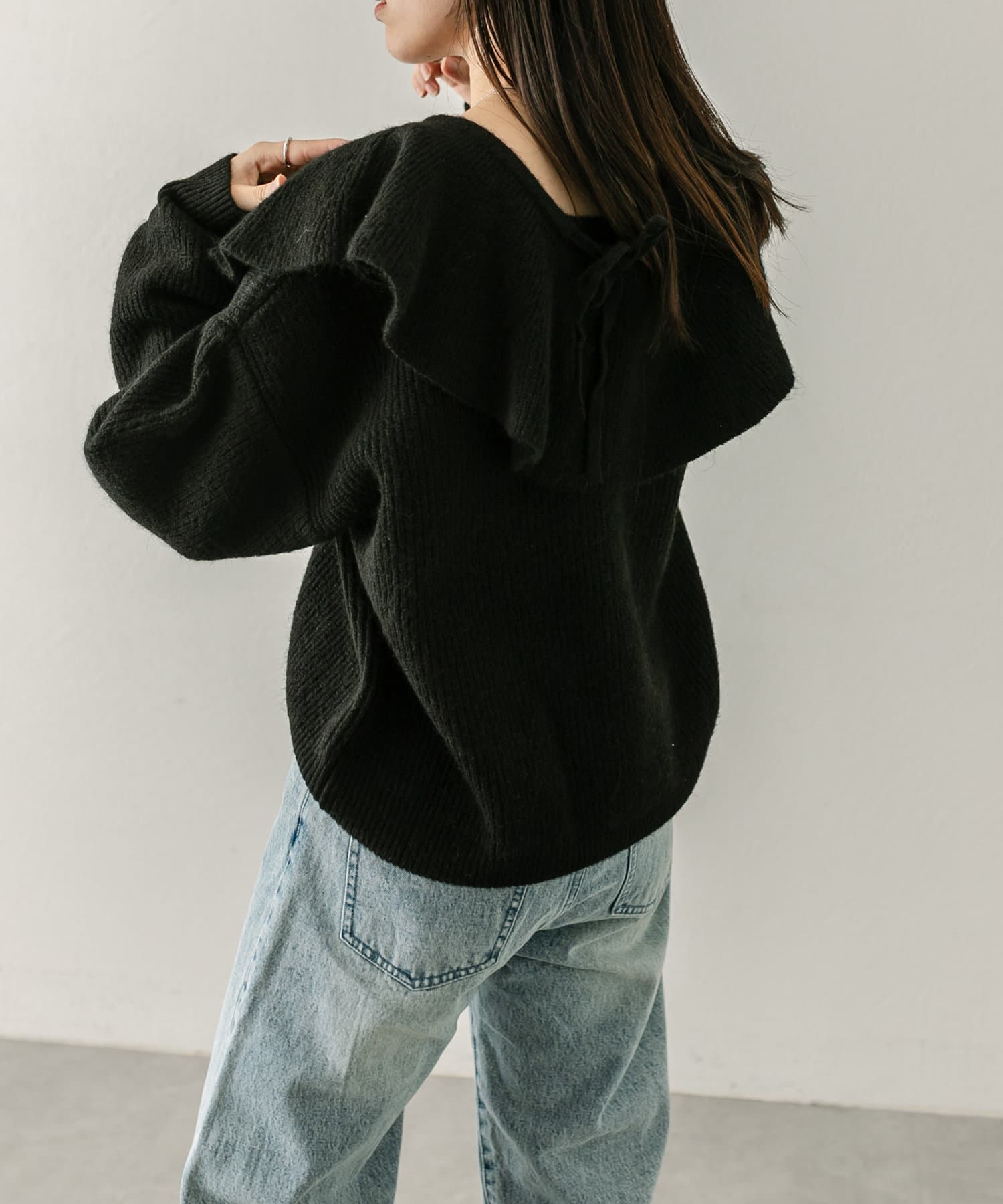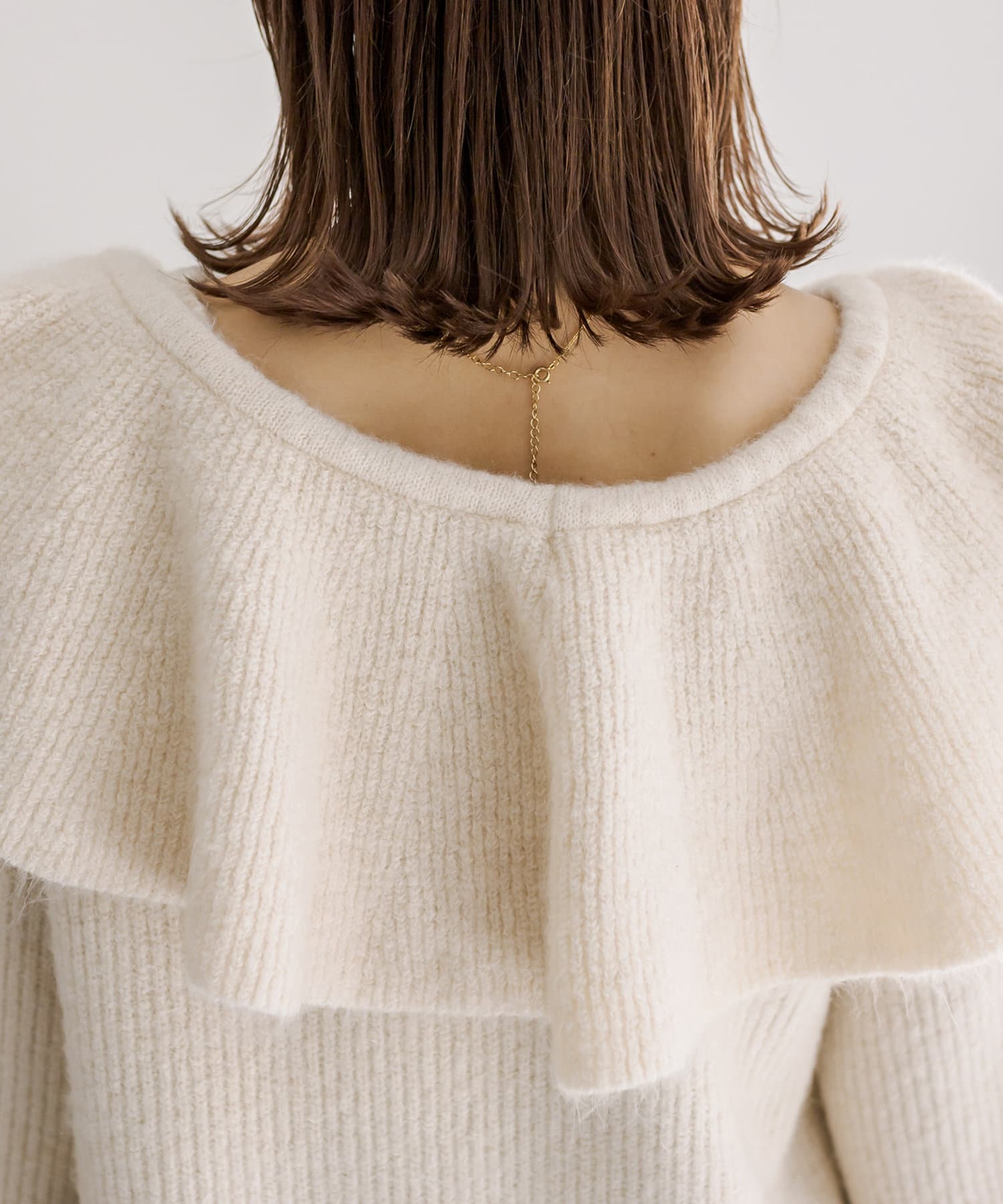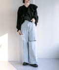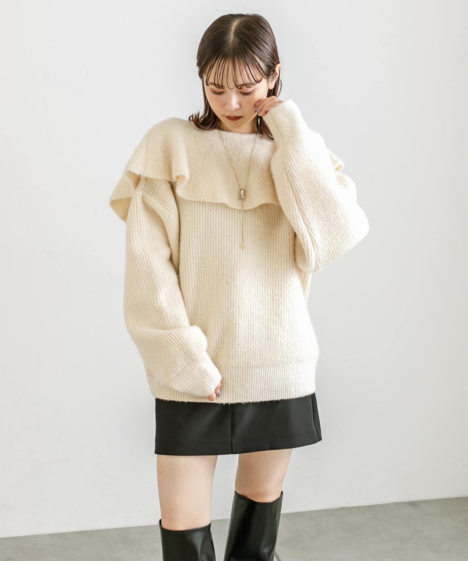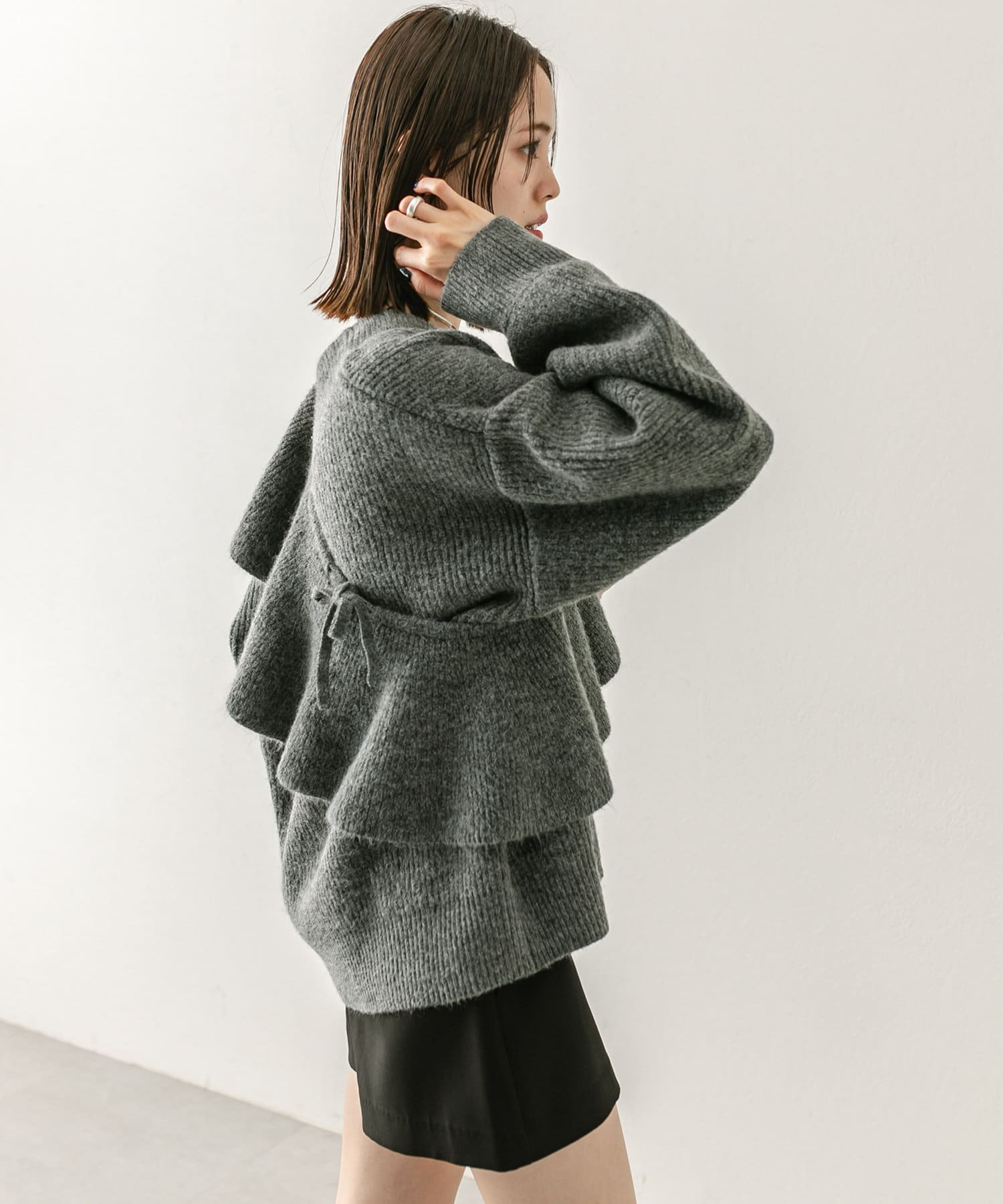 ・フリルを斜めがけしたキャッチーなスタイリングもおすすめです。