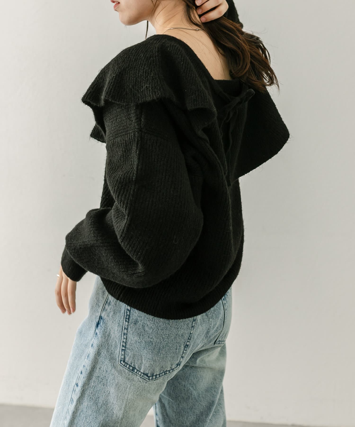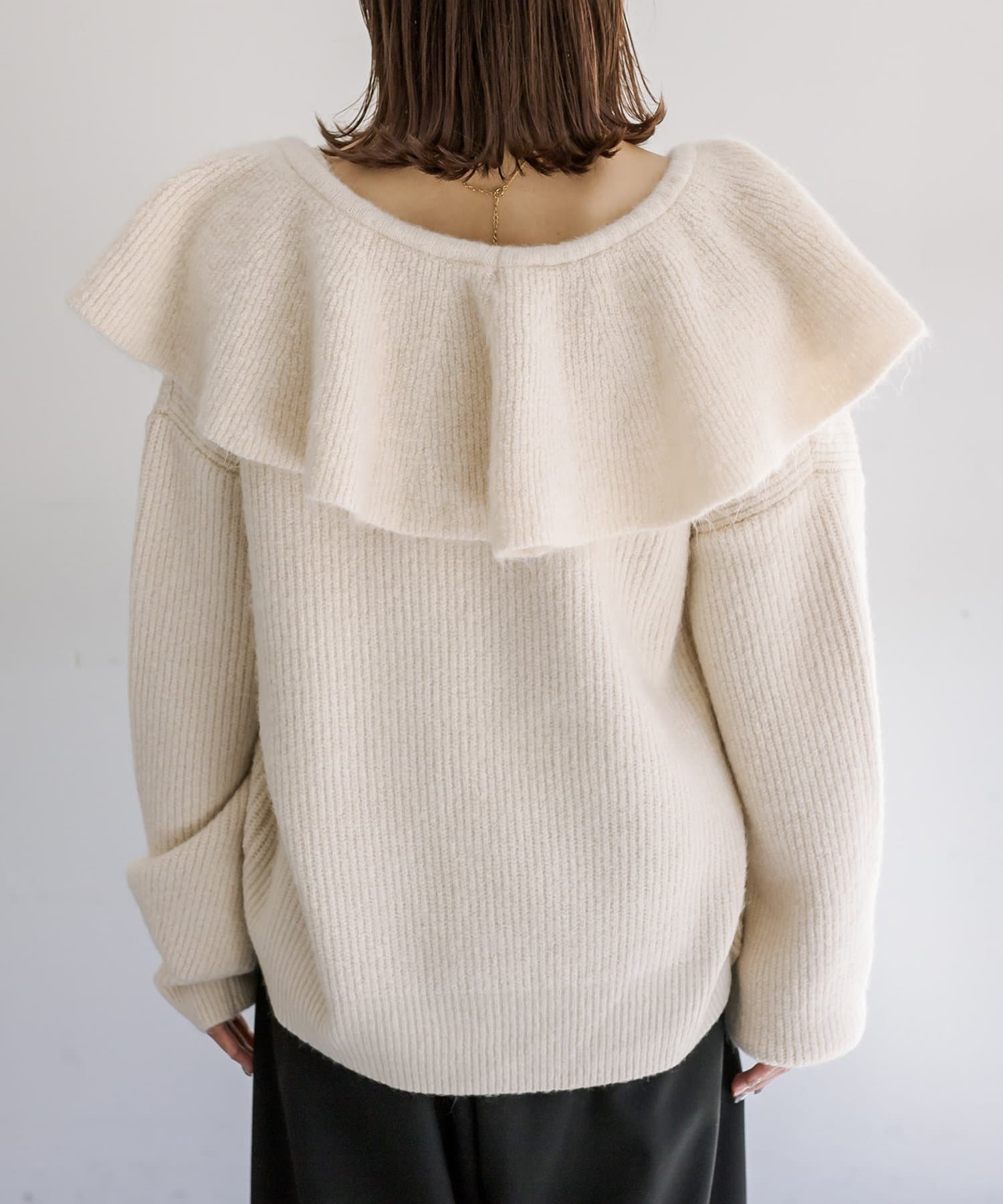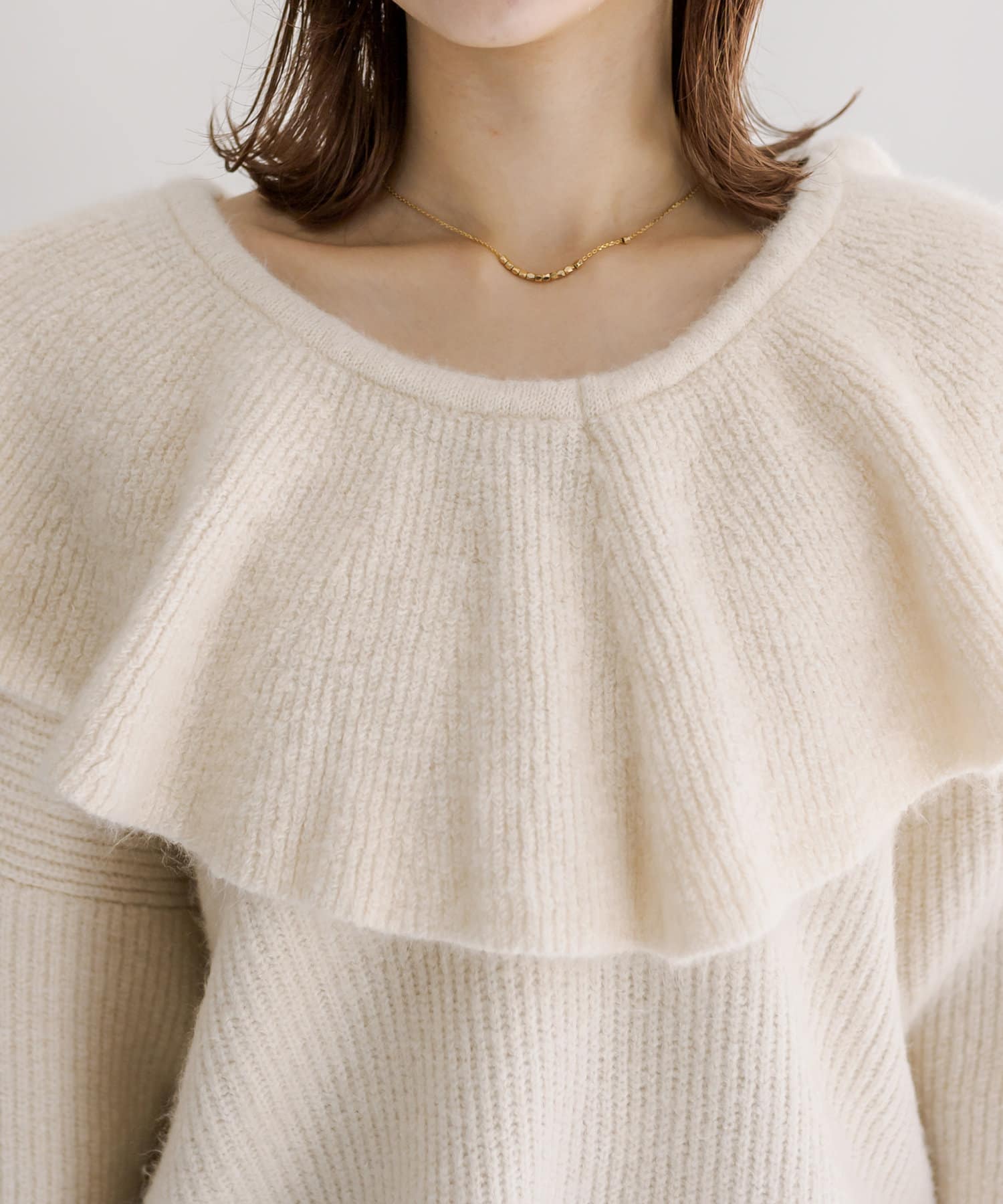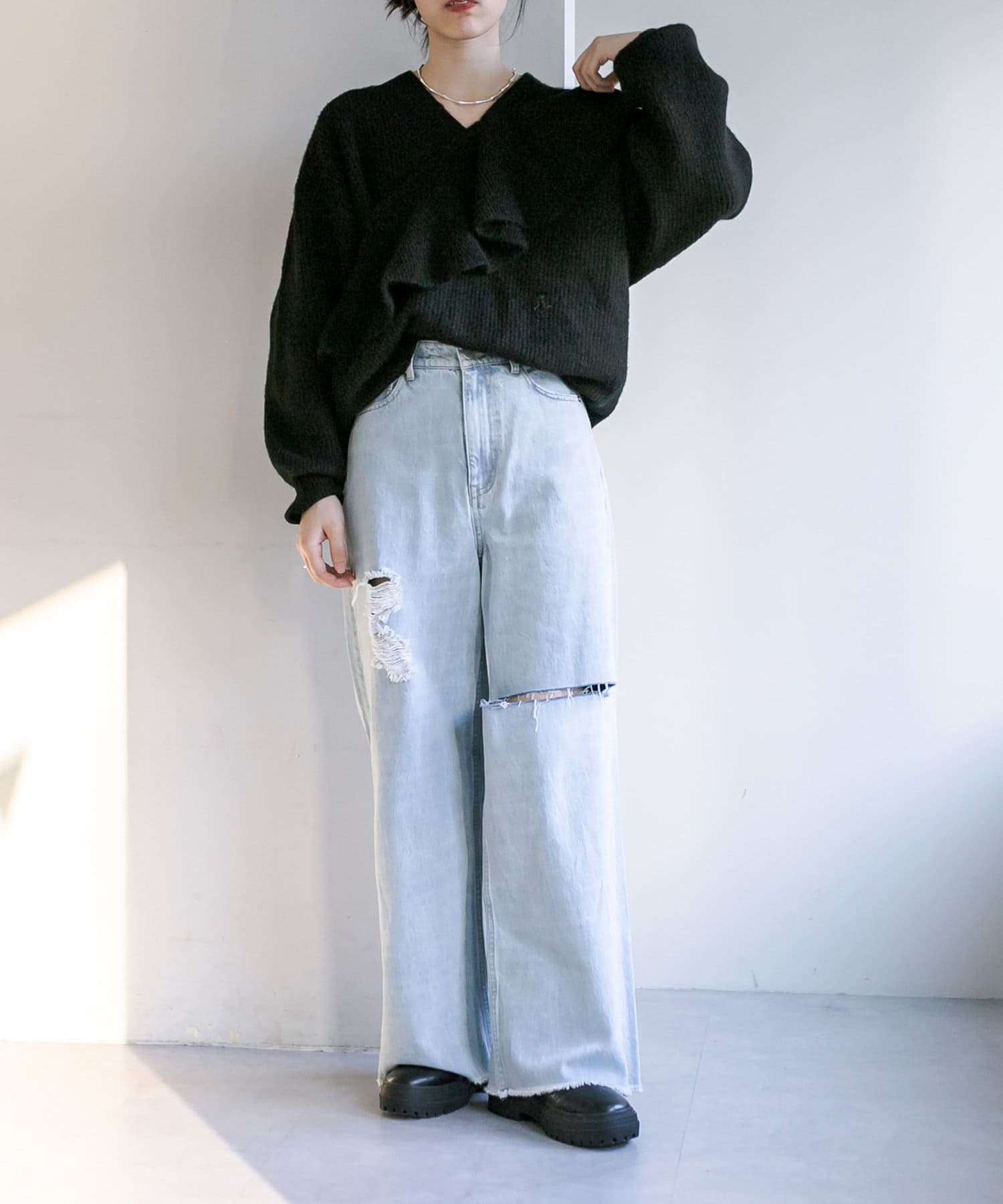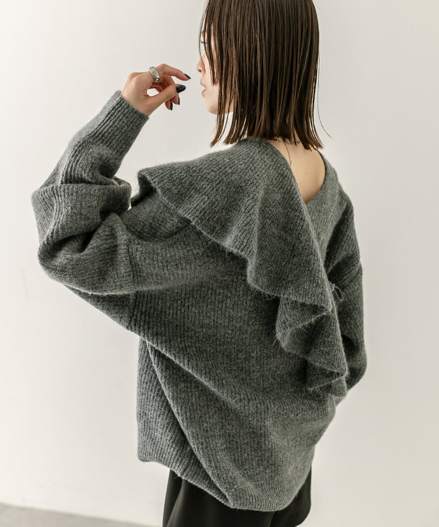 ・フリルを斜めがけしたキャッチーなスタイリングもおすすめです。