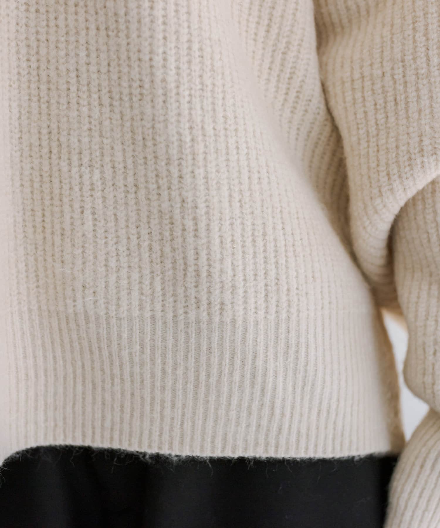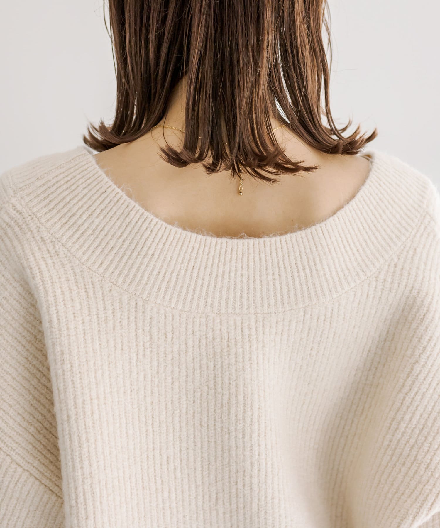 ・襟元のリブは幅広デザインで首周りをすっきり見せてくれます。