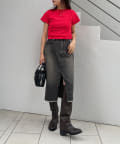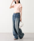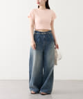 ・短丈トップスなので、ハイウエストボトムとも相性良く決まります!