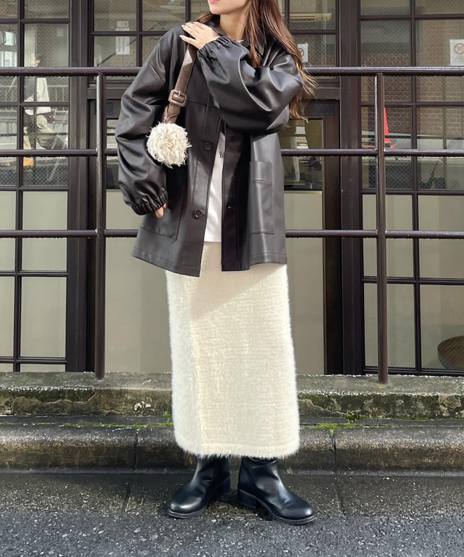 ・ロングスカートのシルエットの中に、スリットが抜け感を出してくれます◎