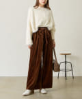 ・ツヤッとしたベロア素材がコーディネートの主役にもなるフレアパンツ◎