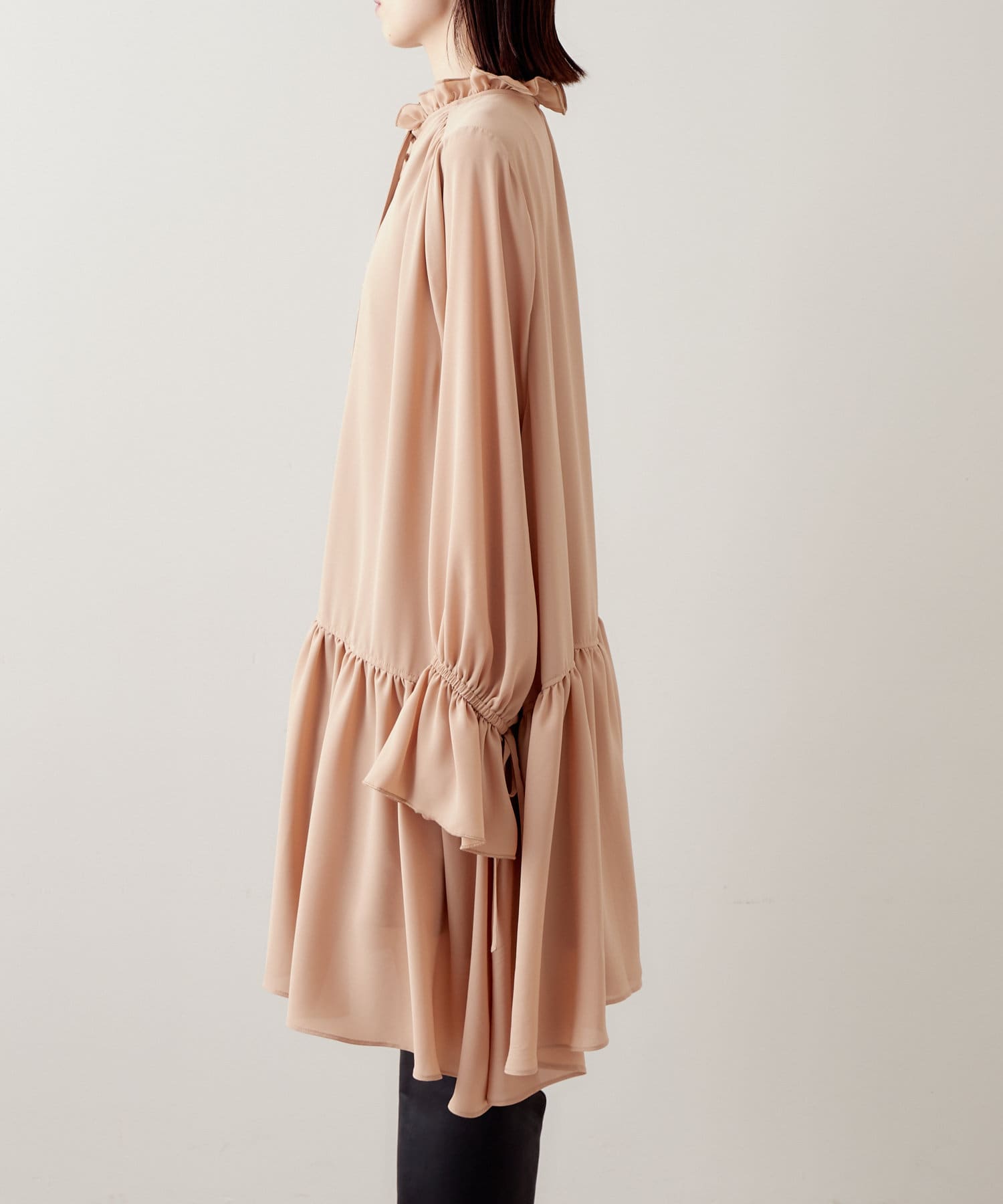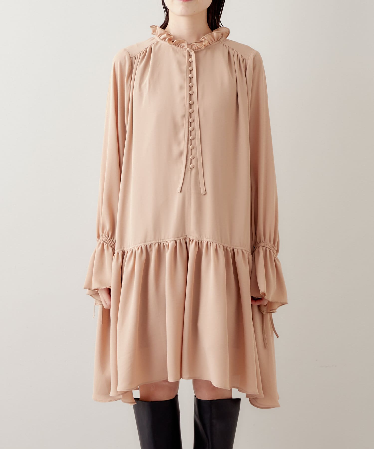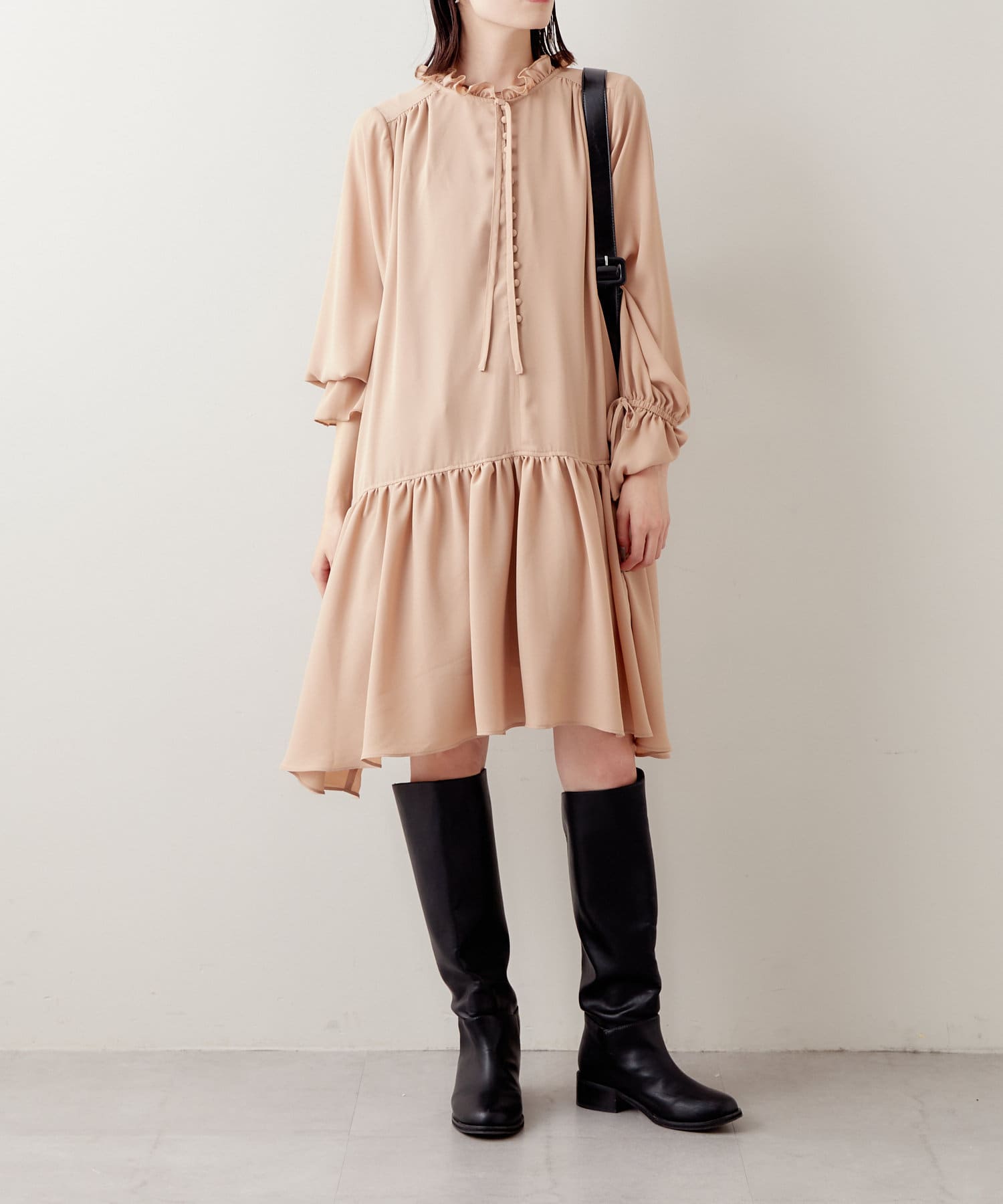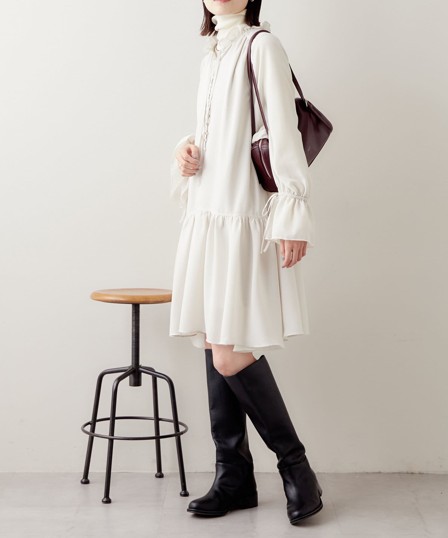 歩くたびに揺れる素材感が大人可愛いフリルワンピースが登場!