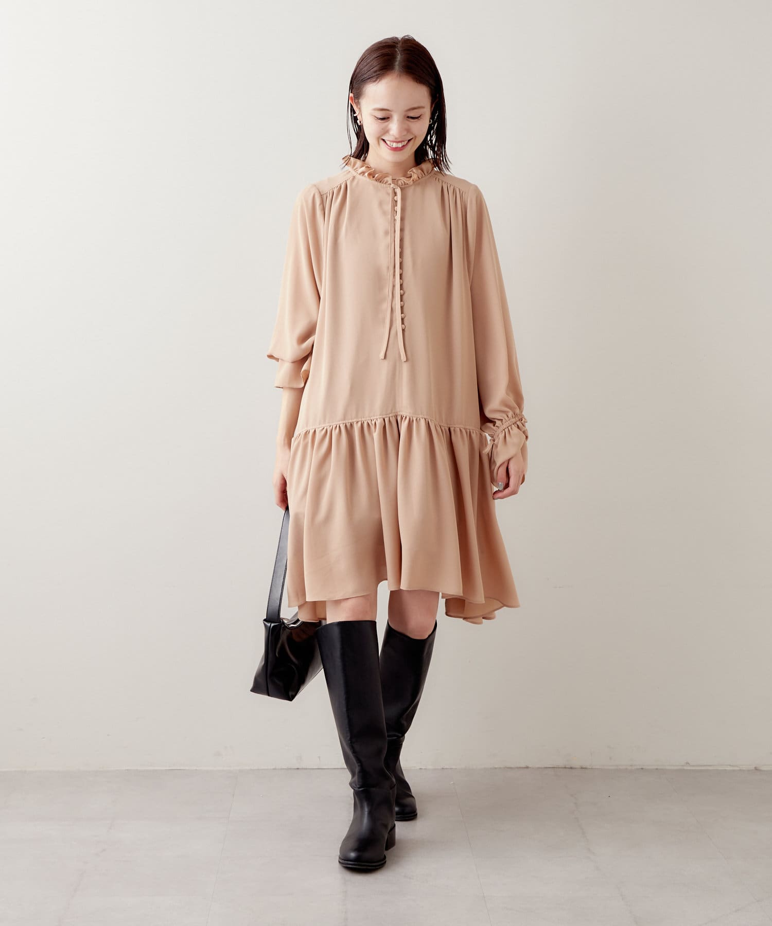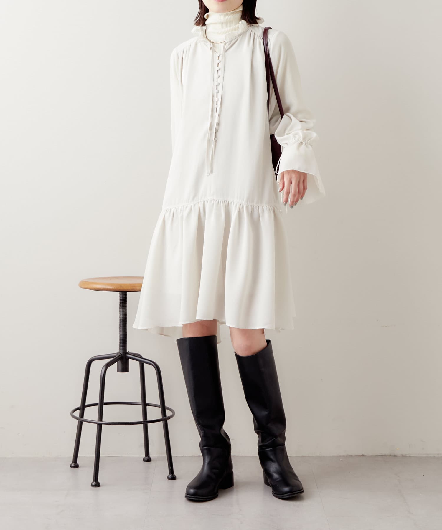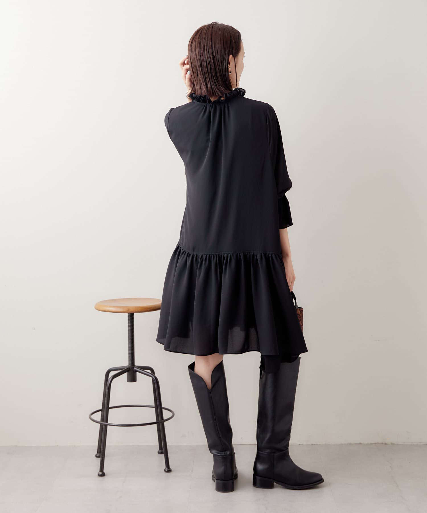 歩くたびに揺れる素材感が大人可愛いフリルワンピースが登場!