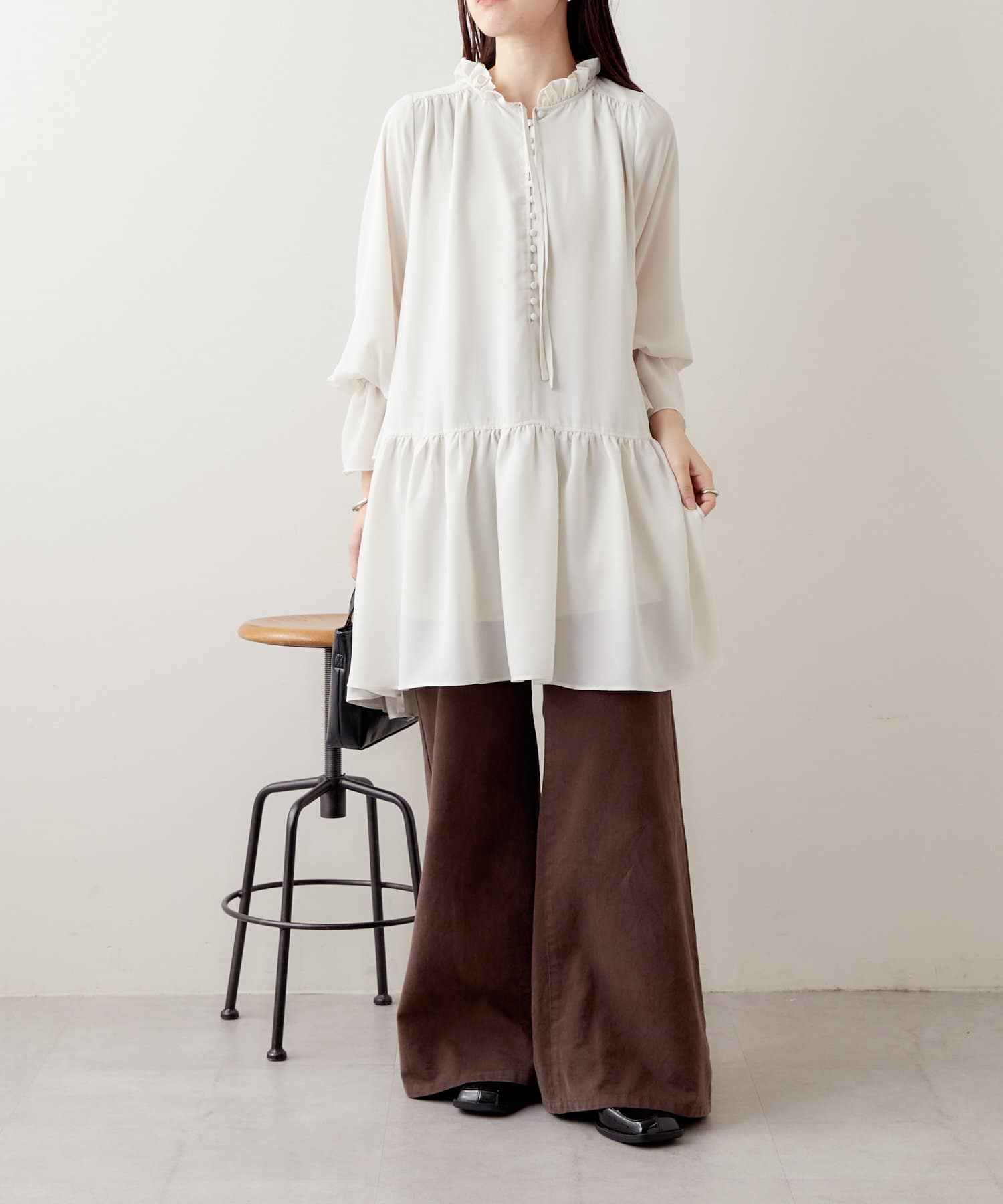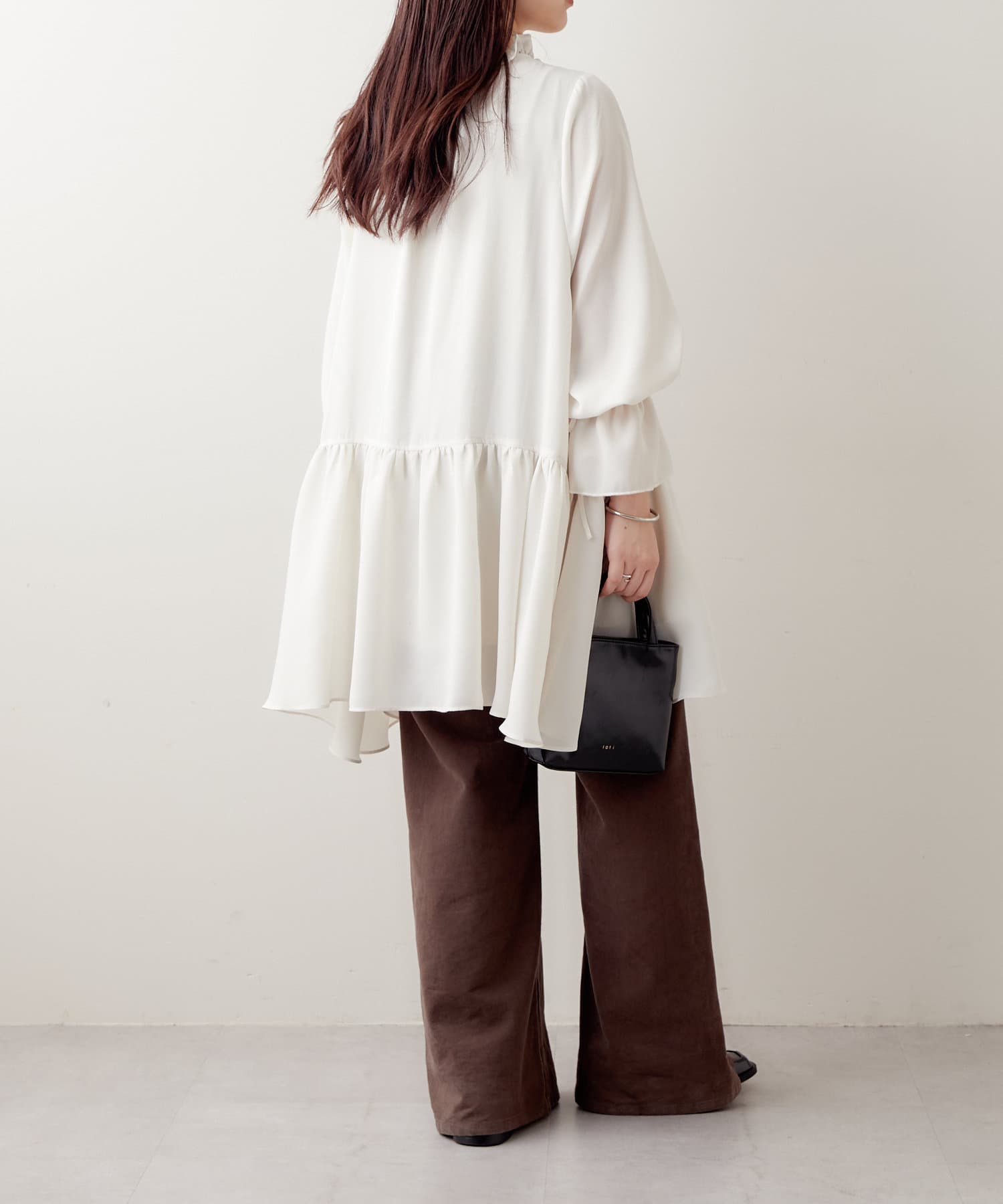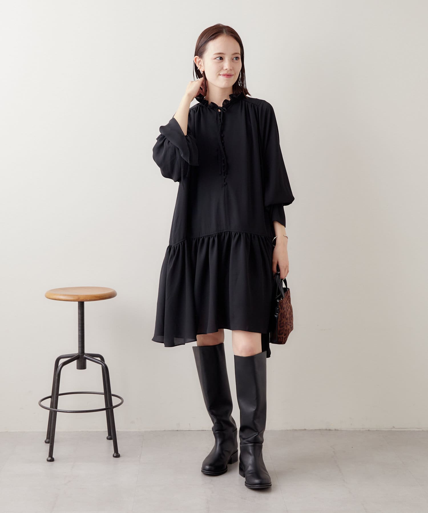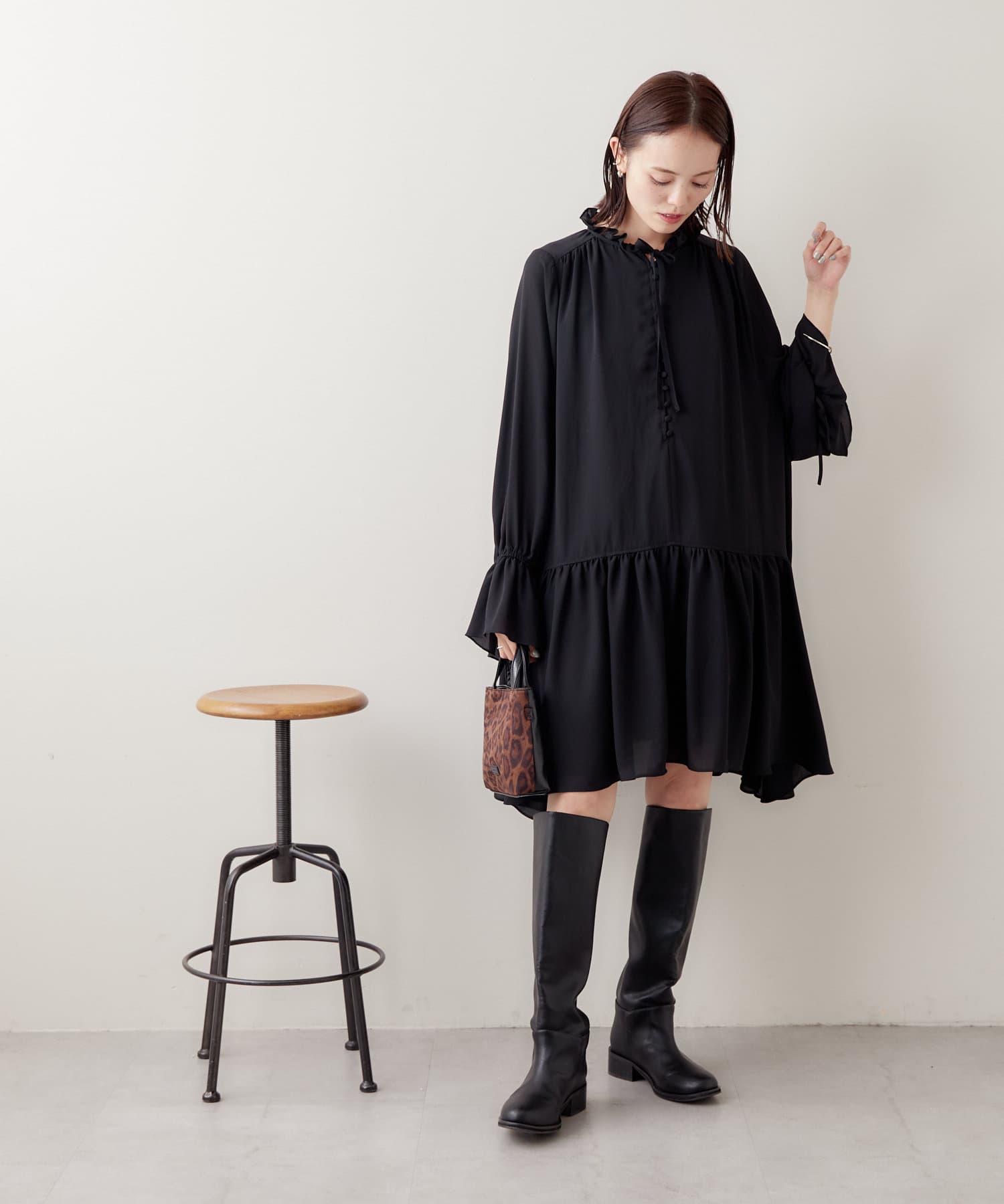 歩くたびに揺れる素材感が大人可愛いフリルワンピースが登場!