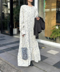 ・歩くたびに揺れるティアードデザイン×花柄が女性らしく決まるワンピース。