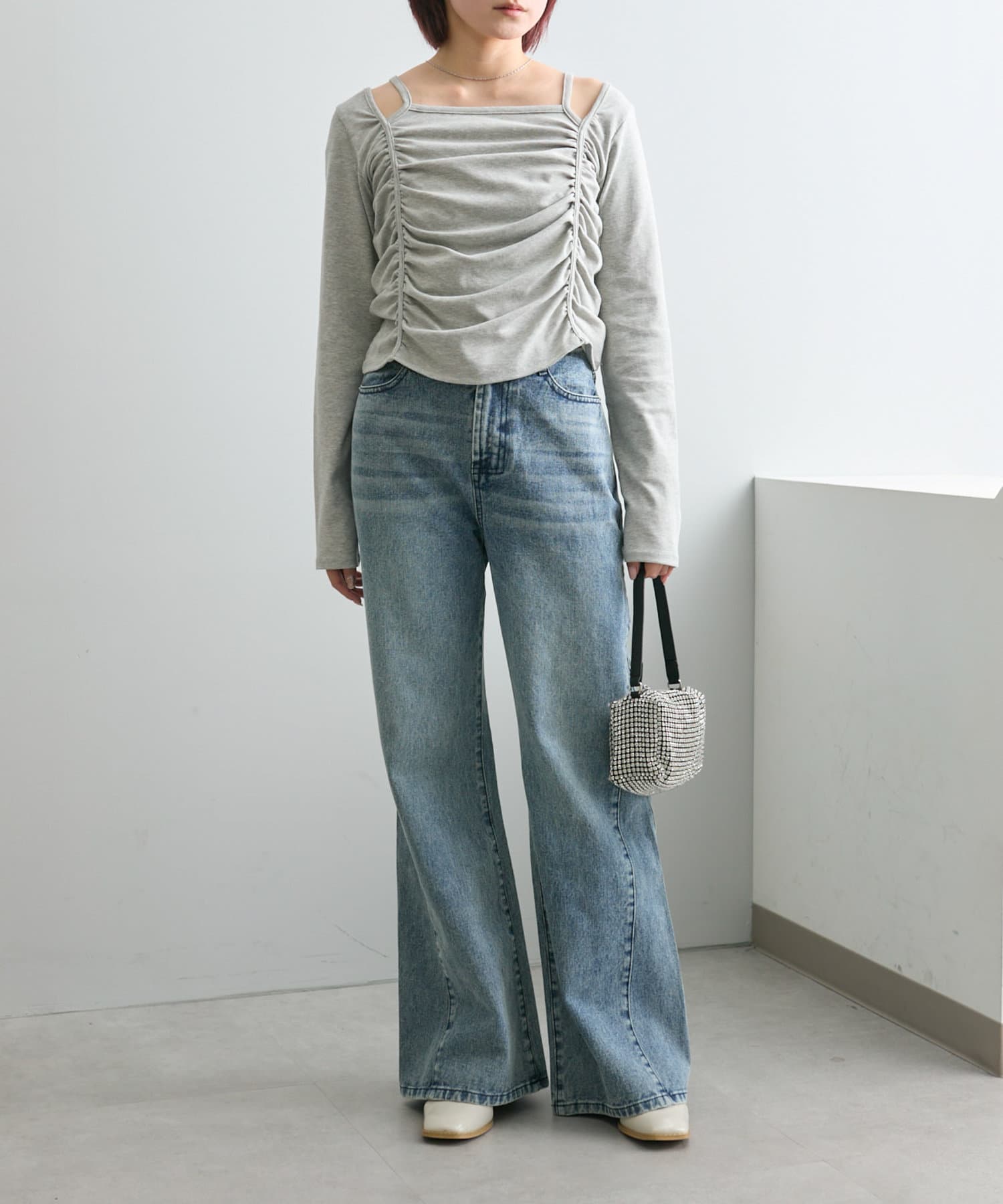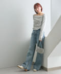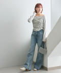 ・コンパクトなトップスなので、ワイドシルエットのボトムス合わせでトレンド感あるスタイリングに!