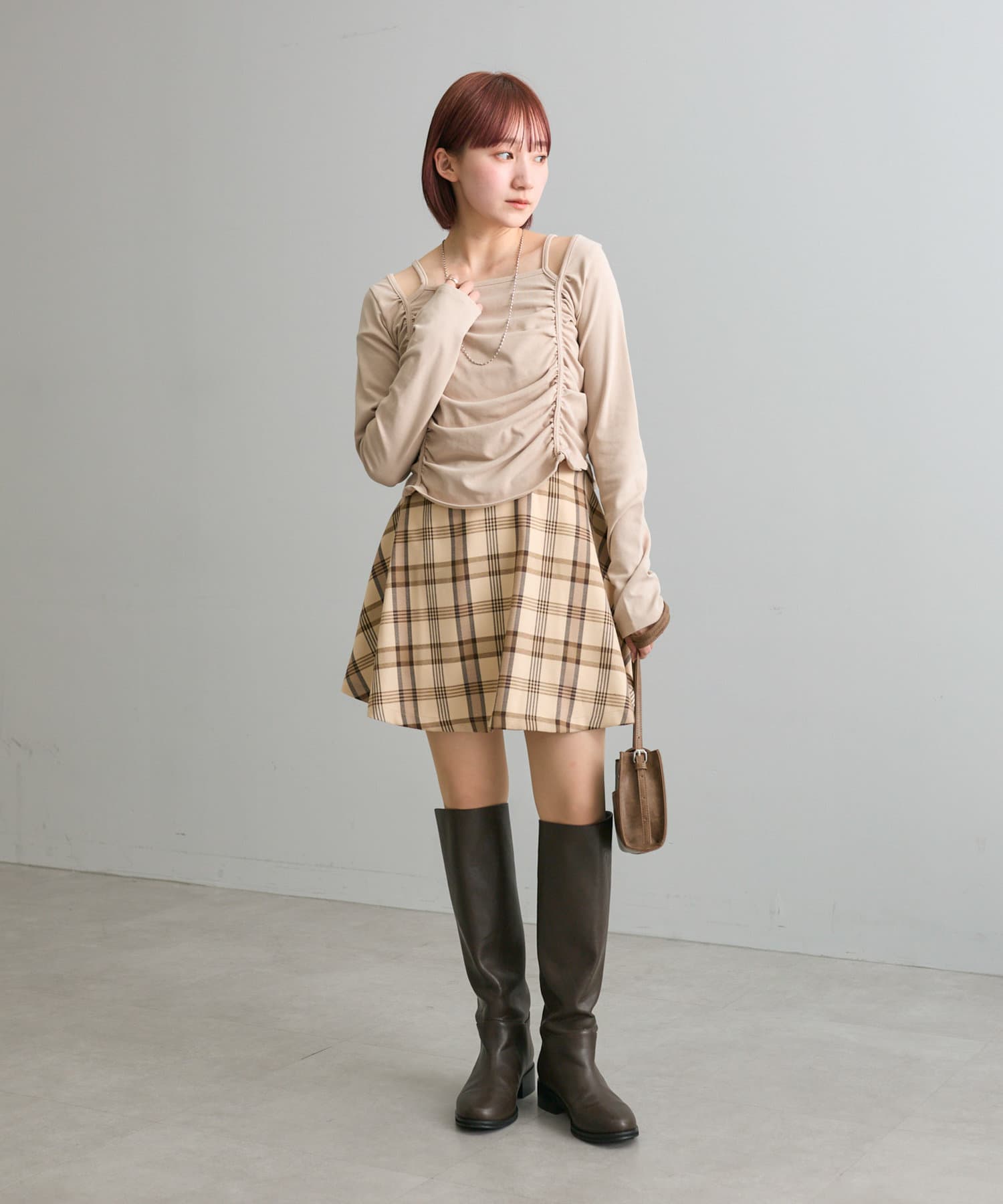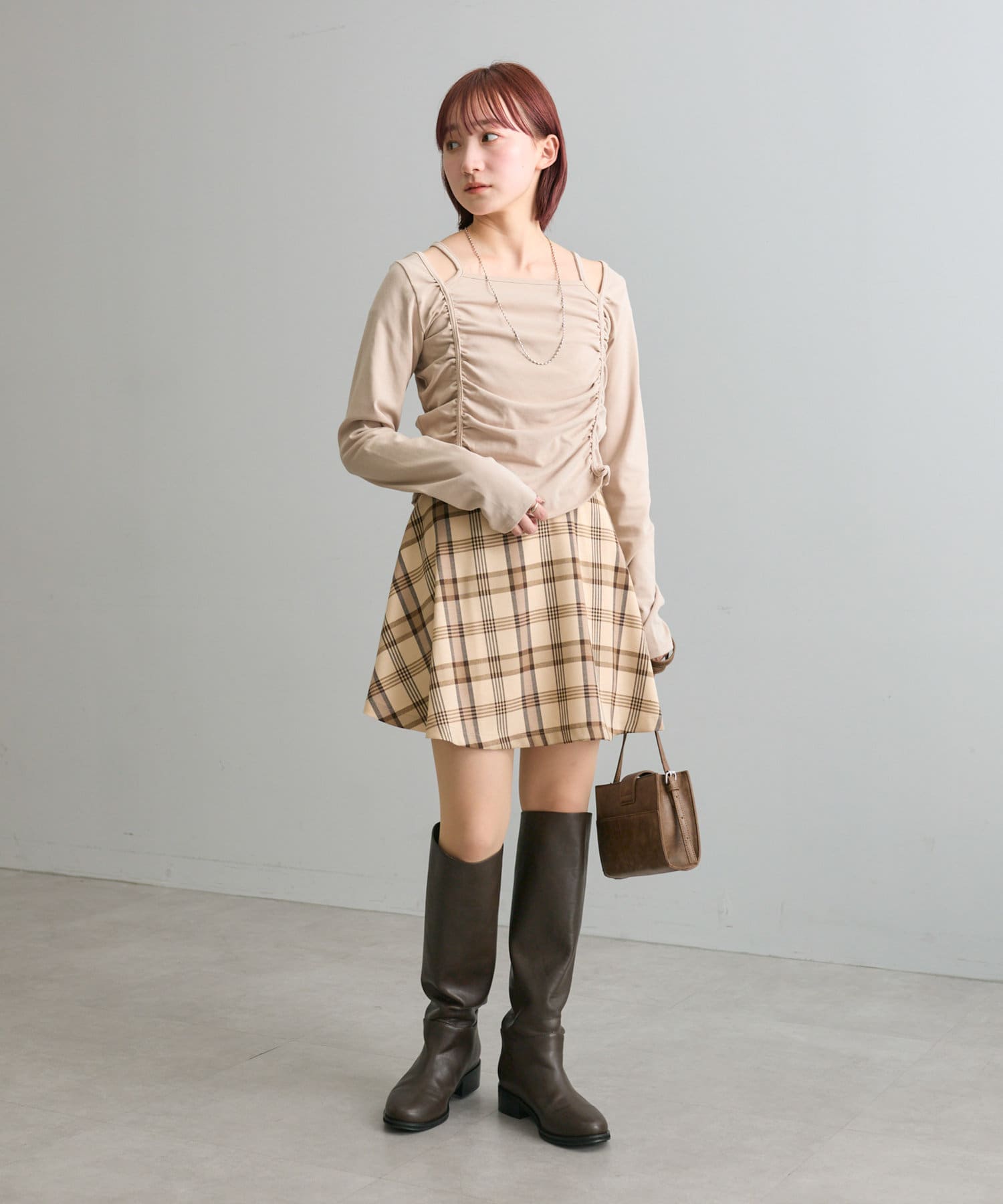 ・ミニ丈ボトムスとロングブーツ合わせでトレンドな着こなしに◎