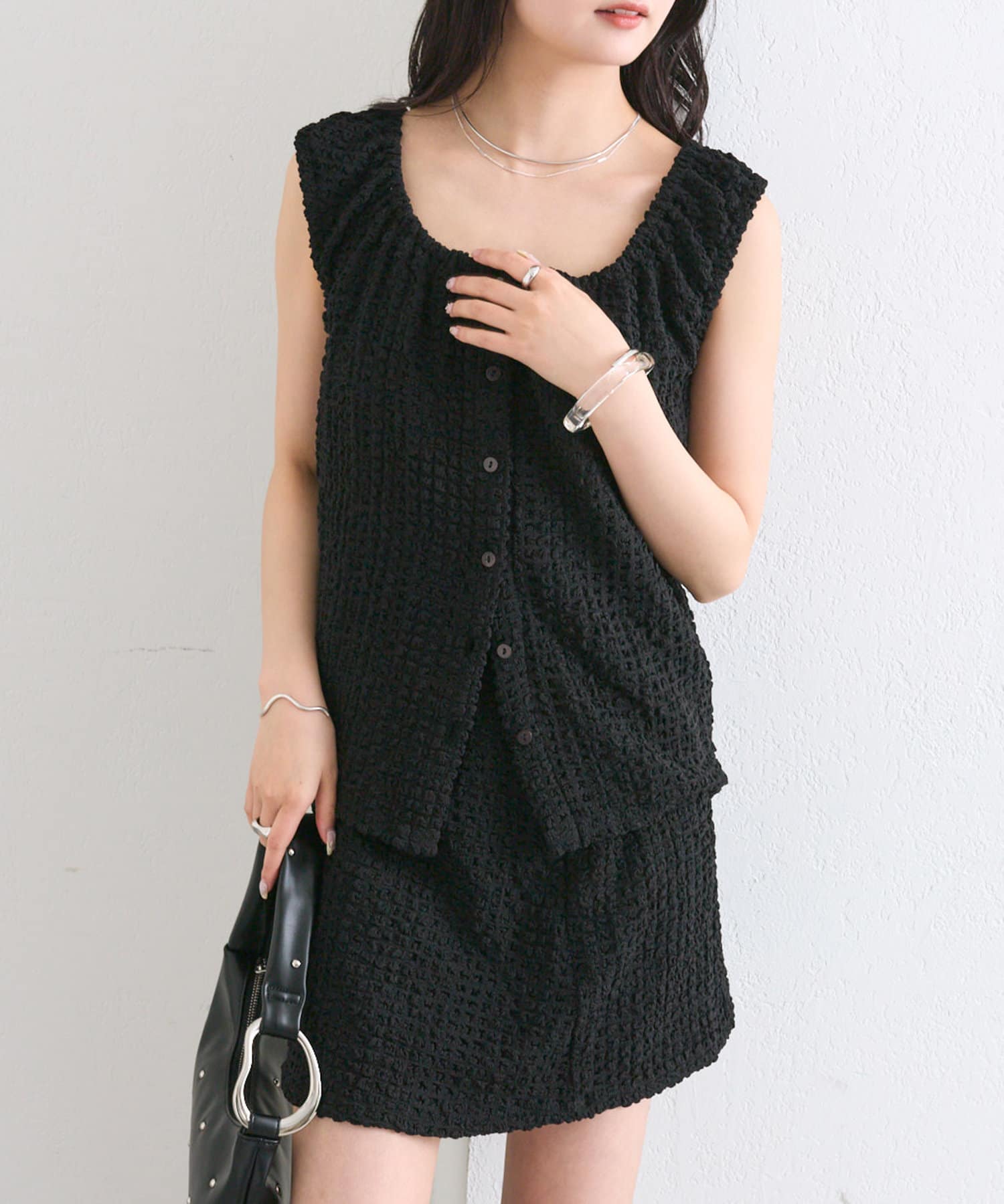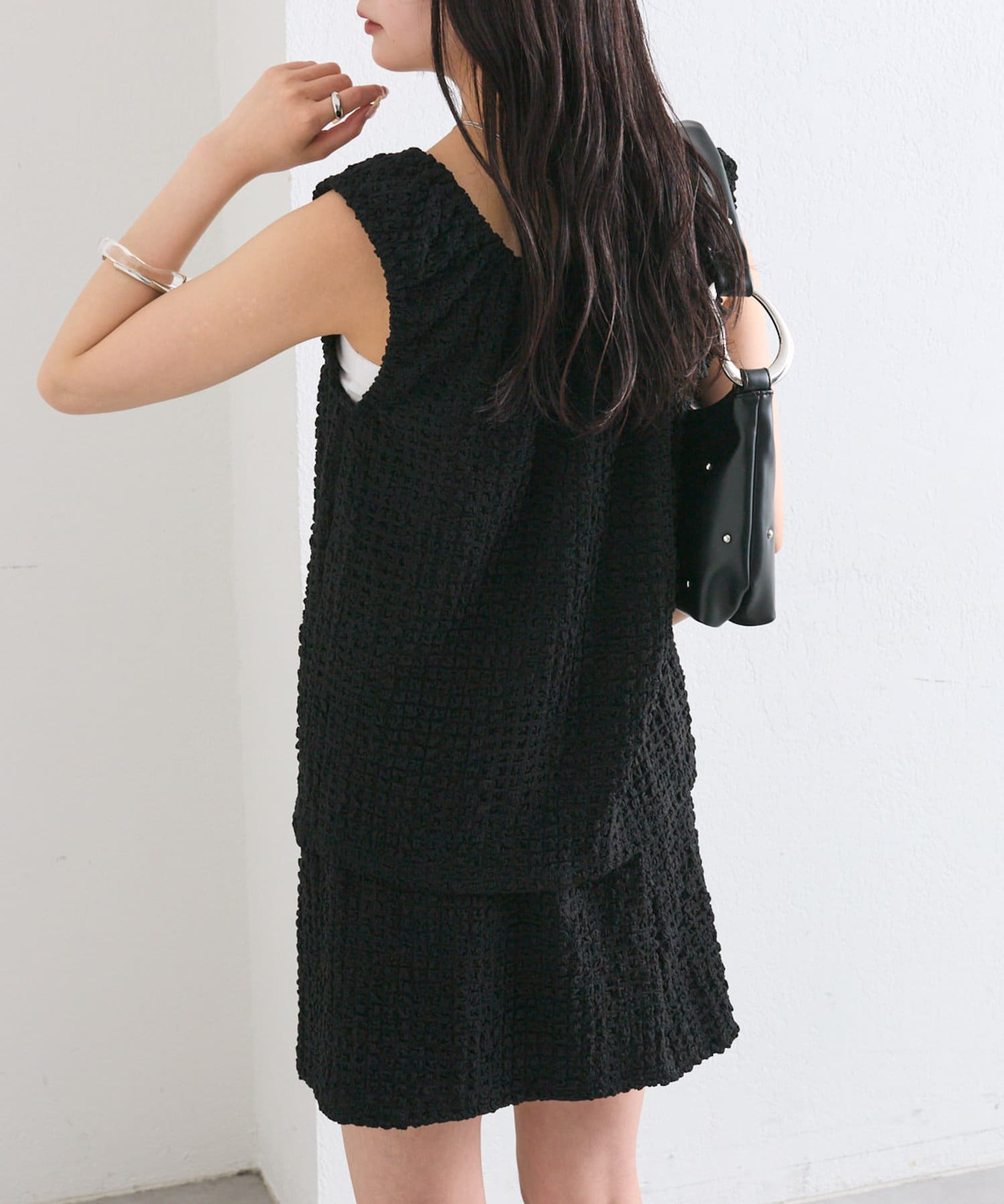 シャーリング素材の立体的な生地が特徴的なアイテムが登場!