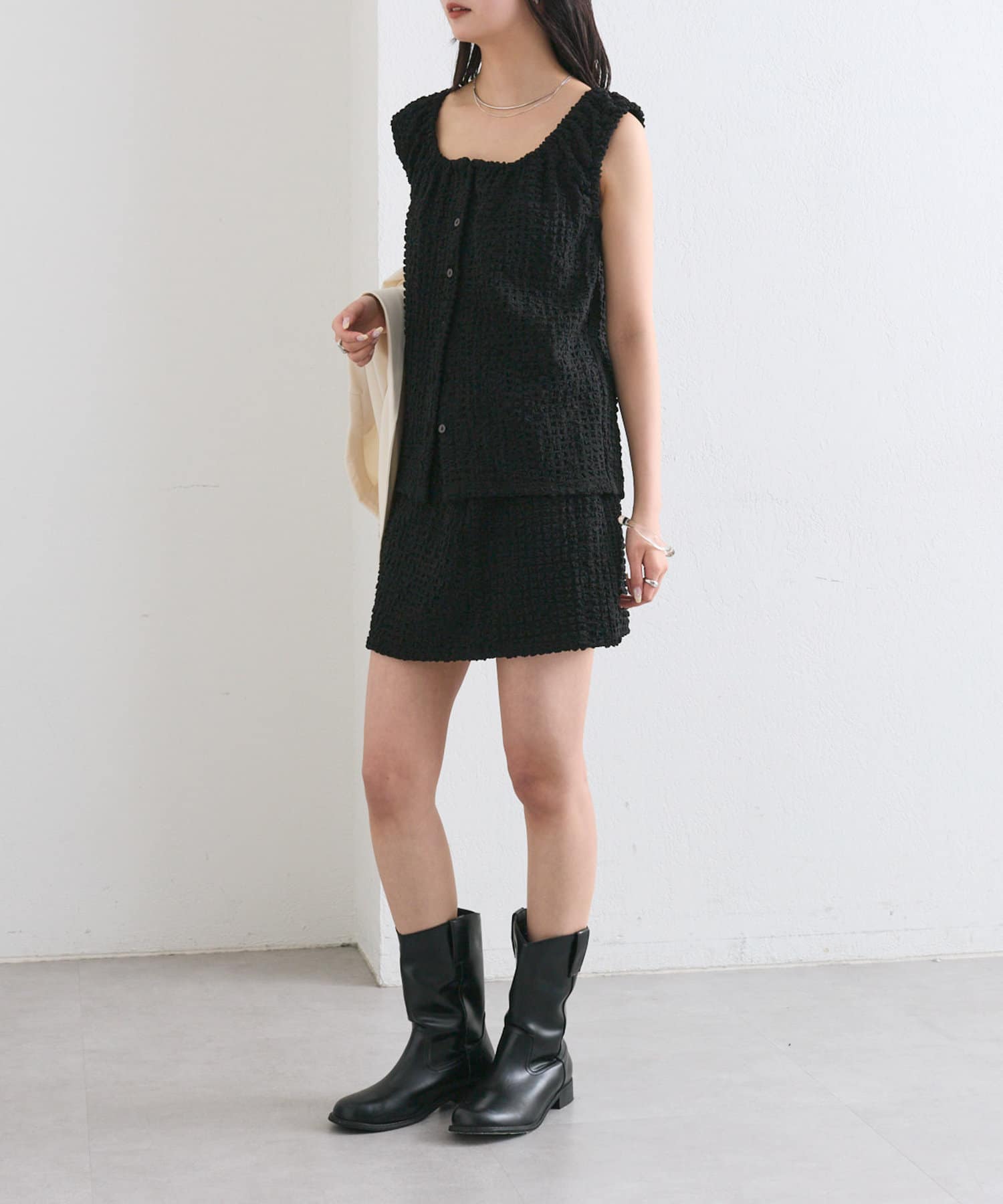 シャーリングスクエアタンクとセットで着用いただけます。