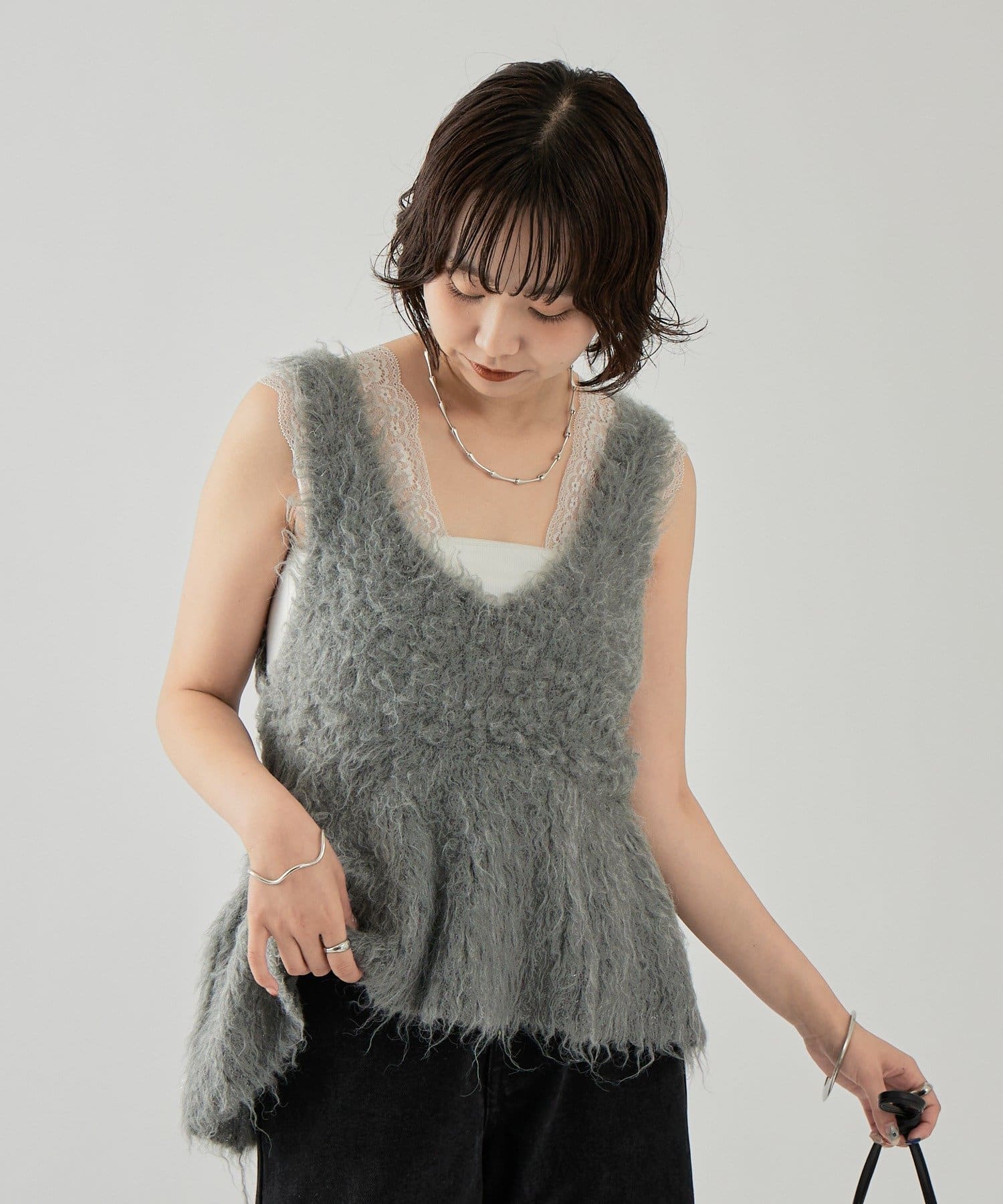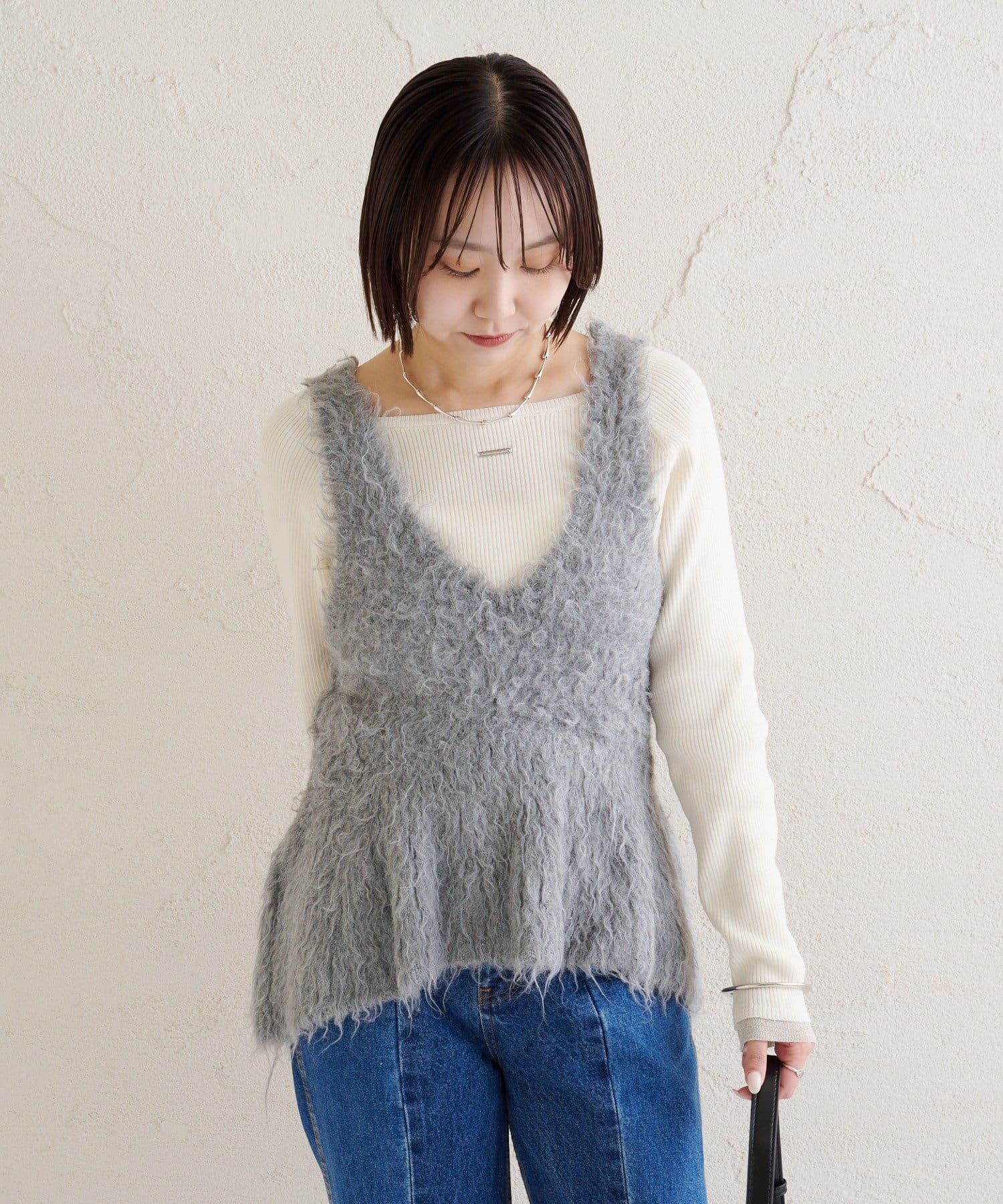 ふわふわな素材感が魅力的なシャギーニット ペプラムベストが登場!