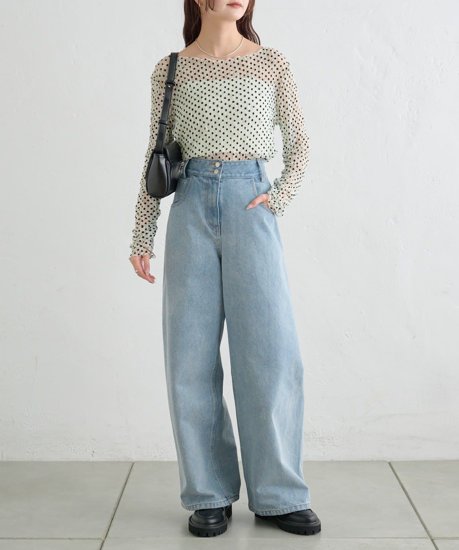 ・ドット柄でデザイン性のあるアイテムのため、デニムとの相性抜群◎