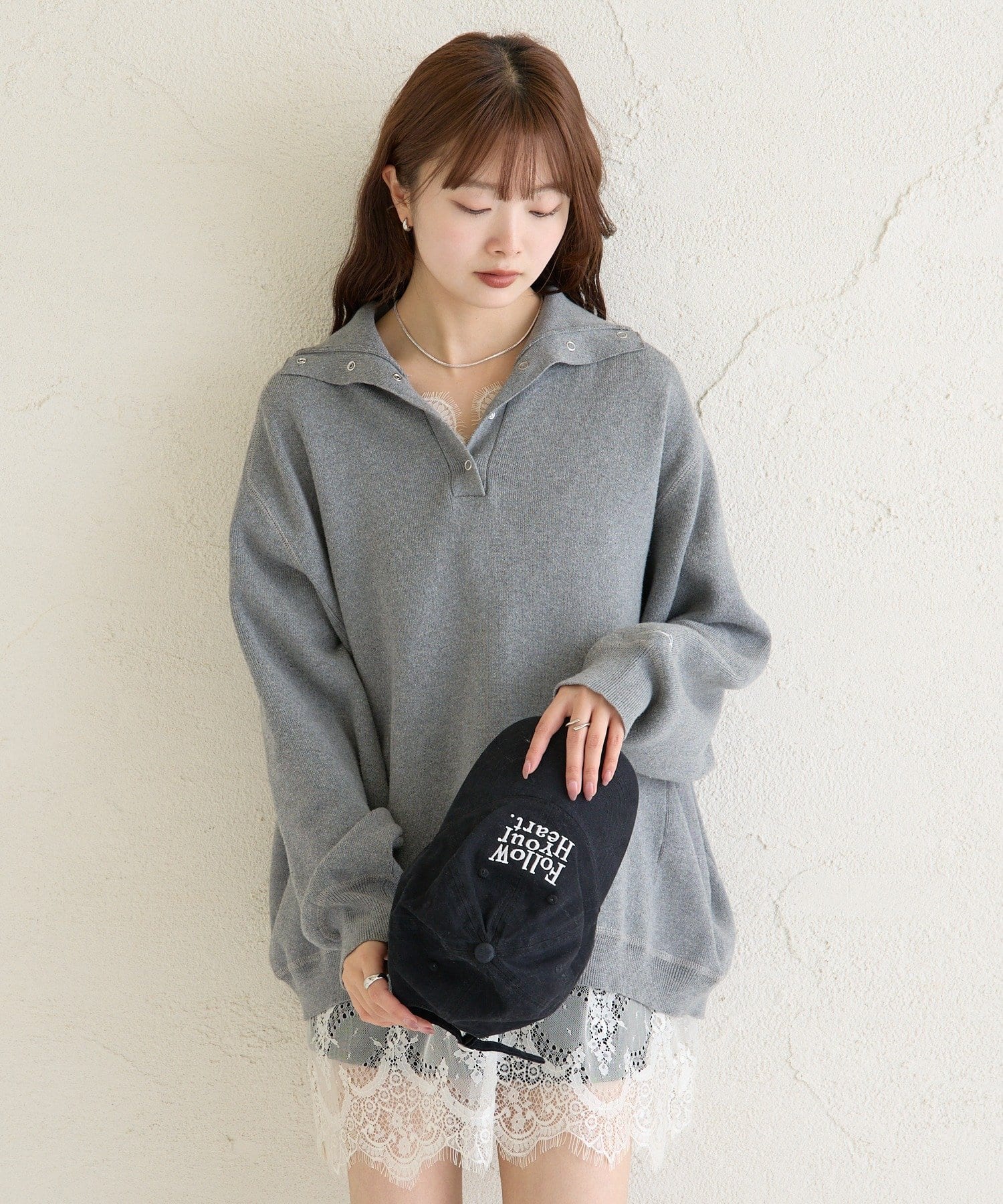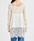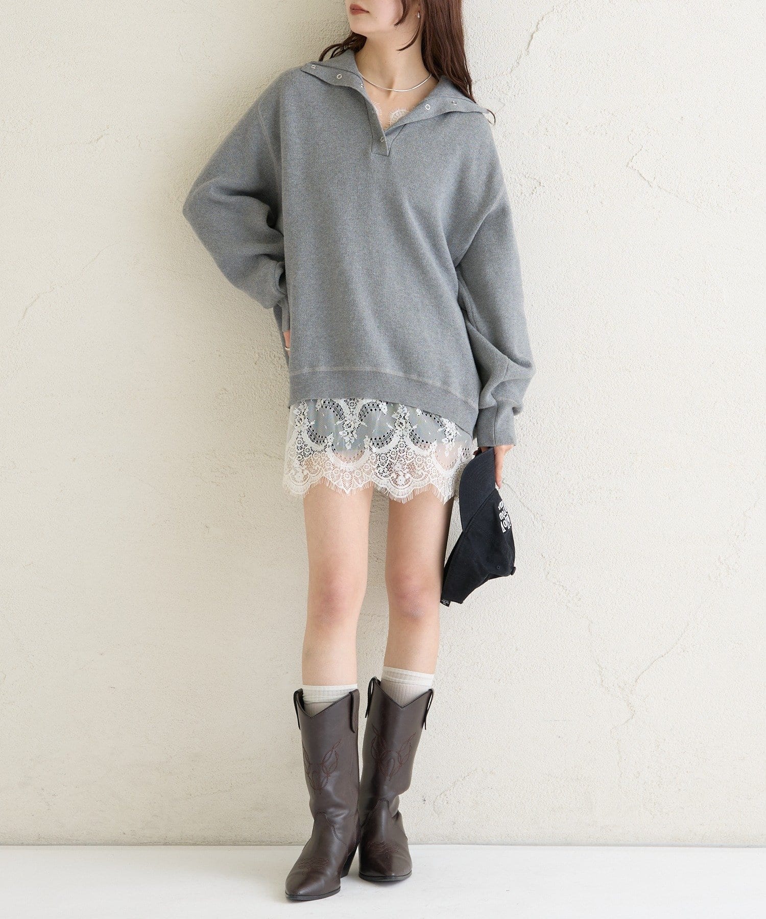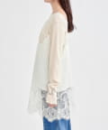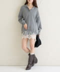 ・カーディガンをレイヤードさせる着方もおすすめで、首回りのレースが程よく見えるのがポイント◎