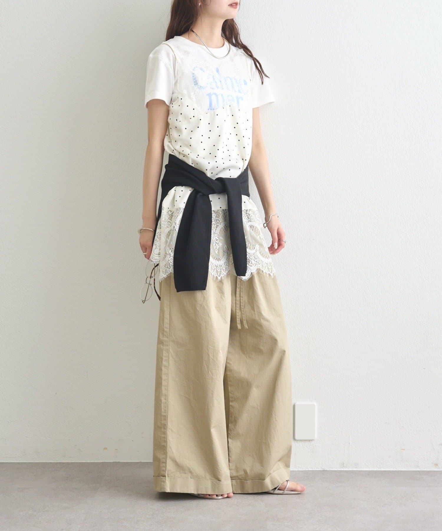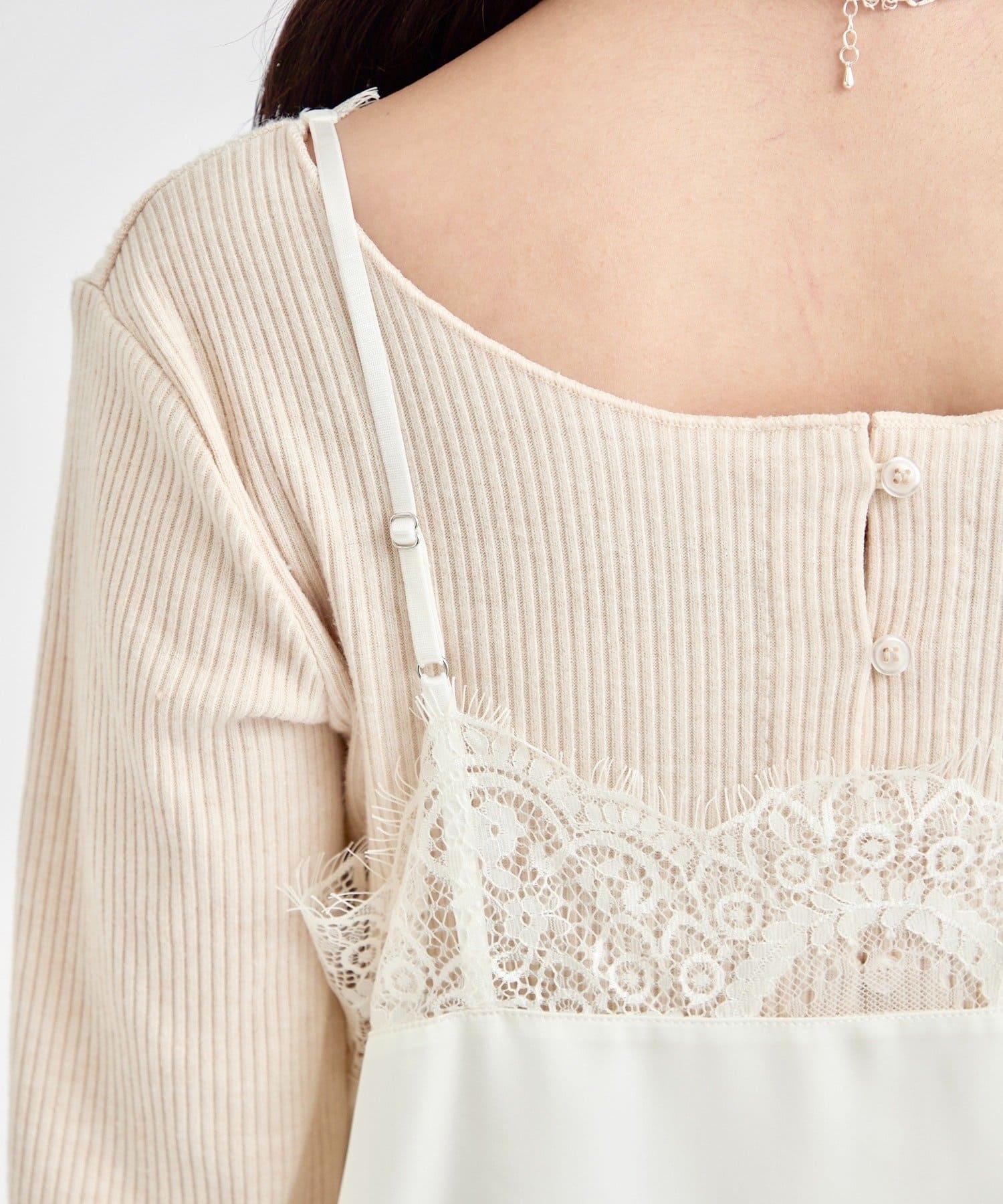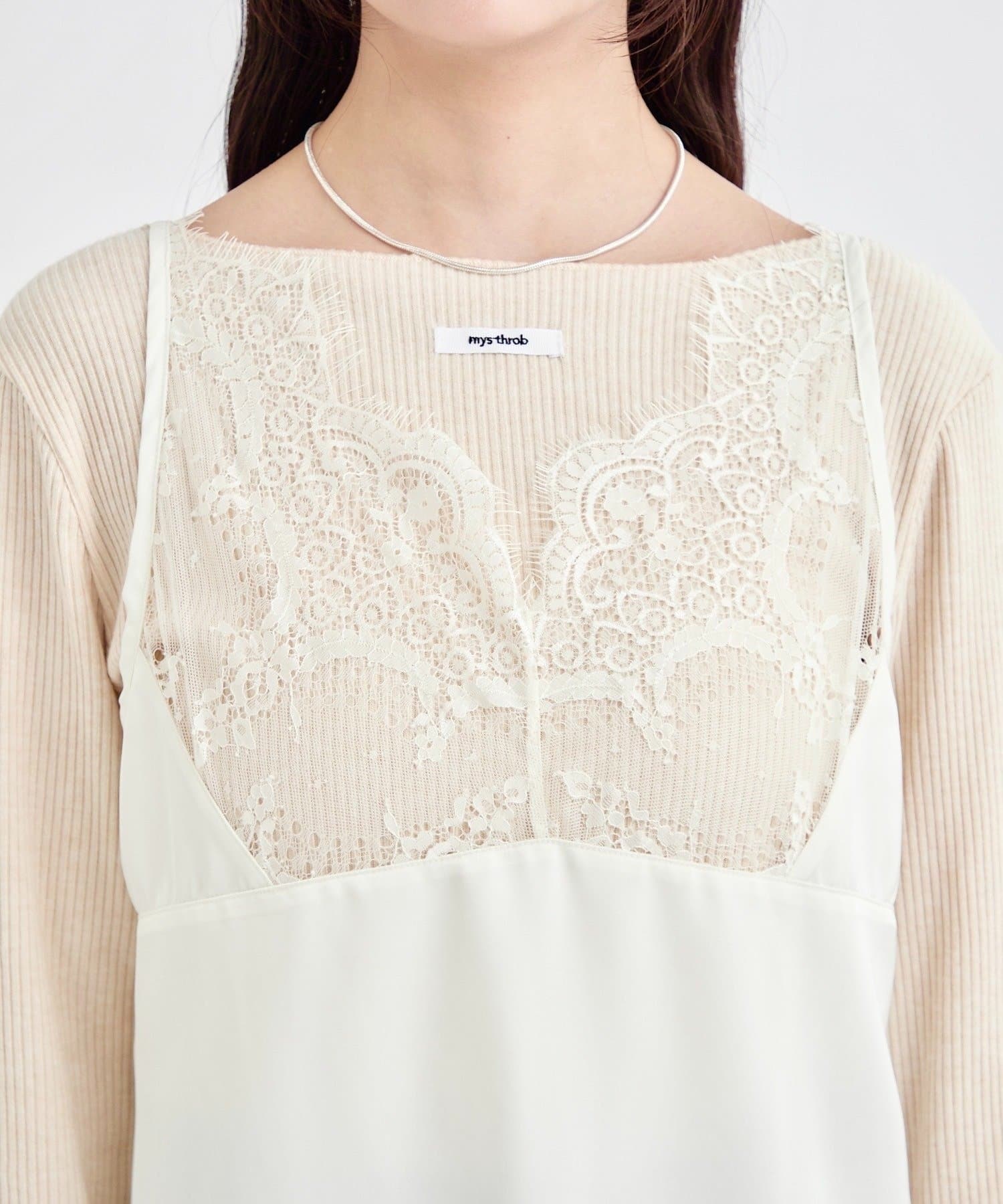 ・サテン生地×レースが今年らしいランジェリータッチなレイヤードアイテム。