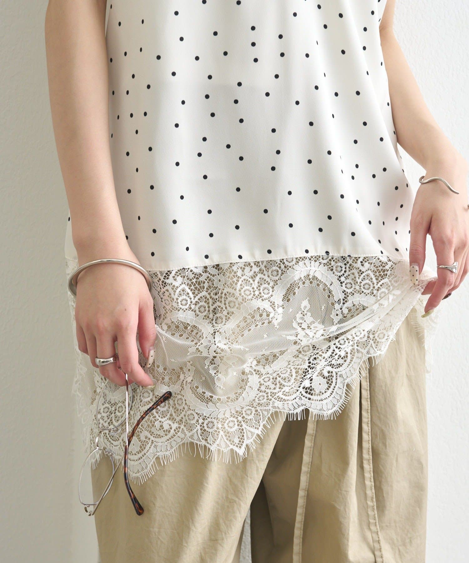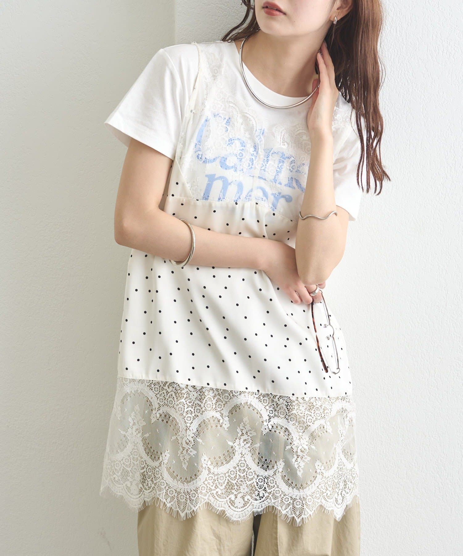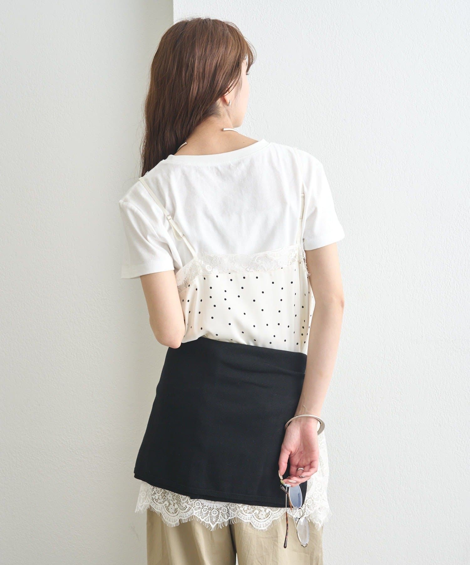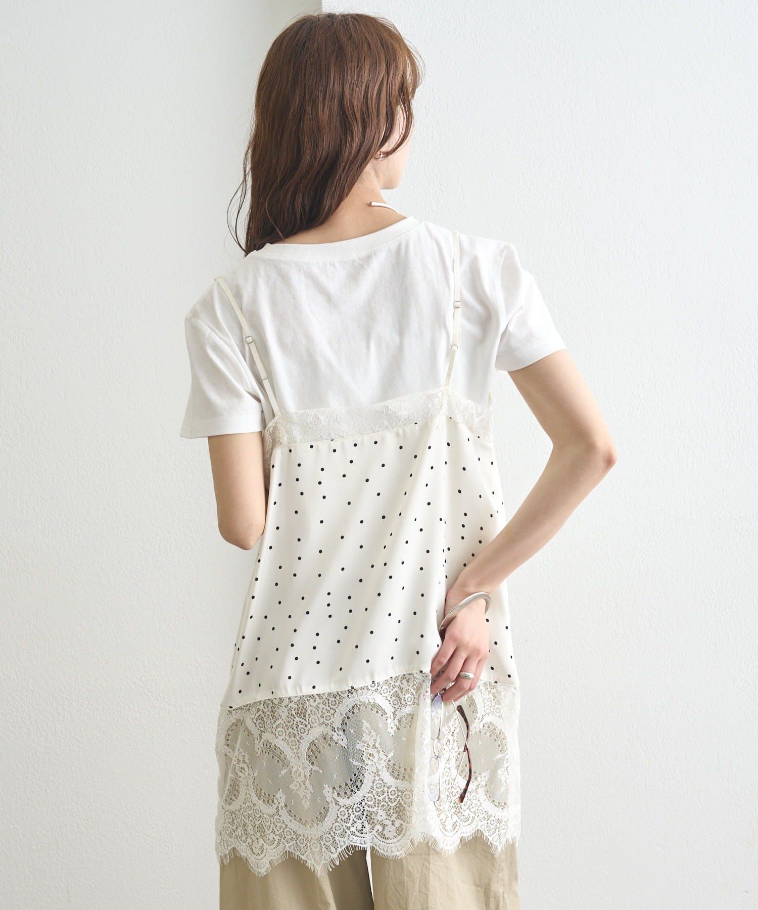 《新色ドット》【大人っぽいレイヤードスタイルに】レースサテンキャミソール