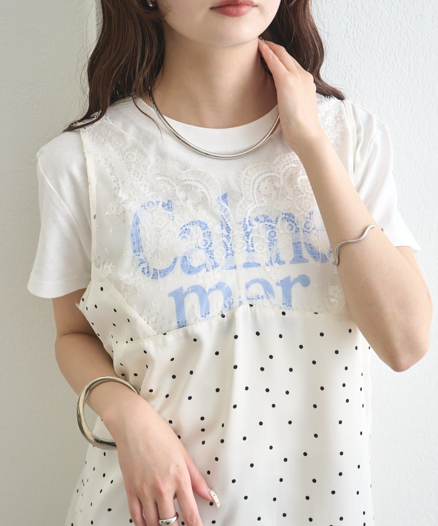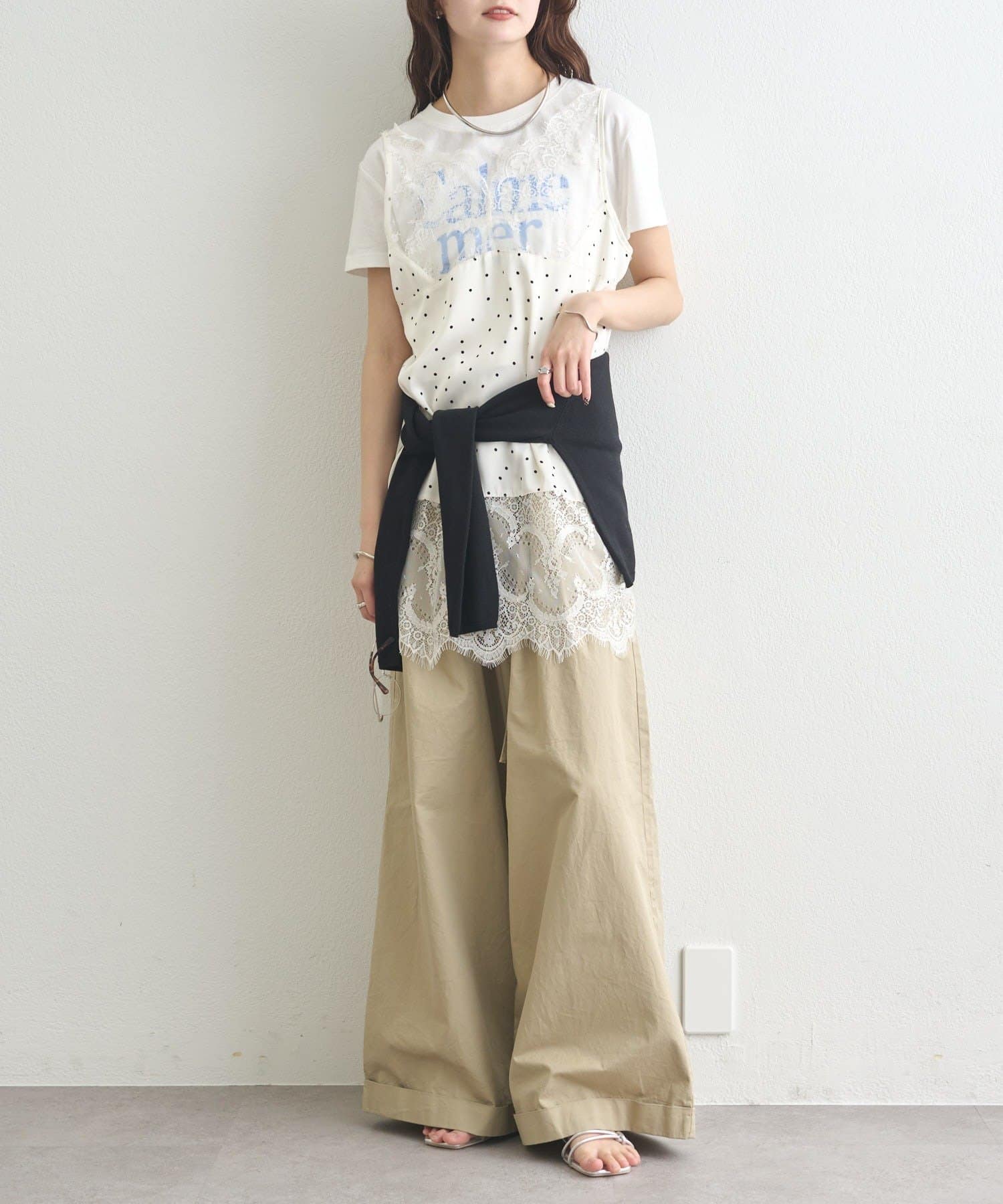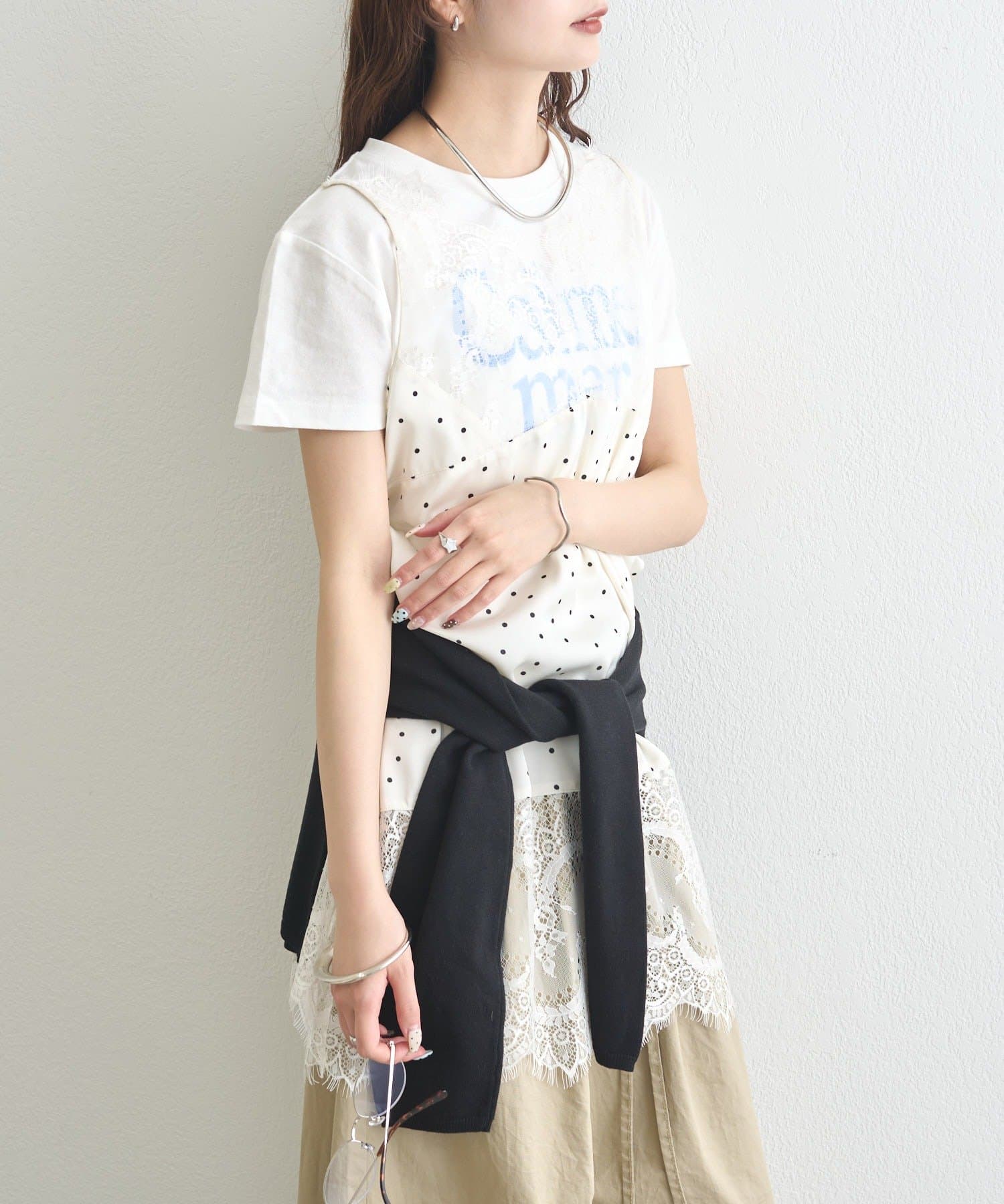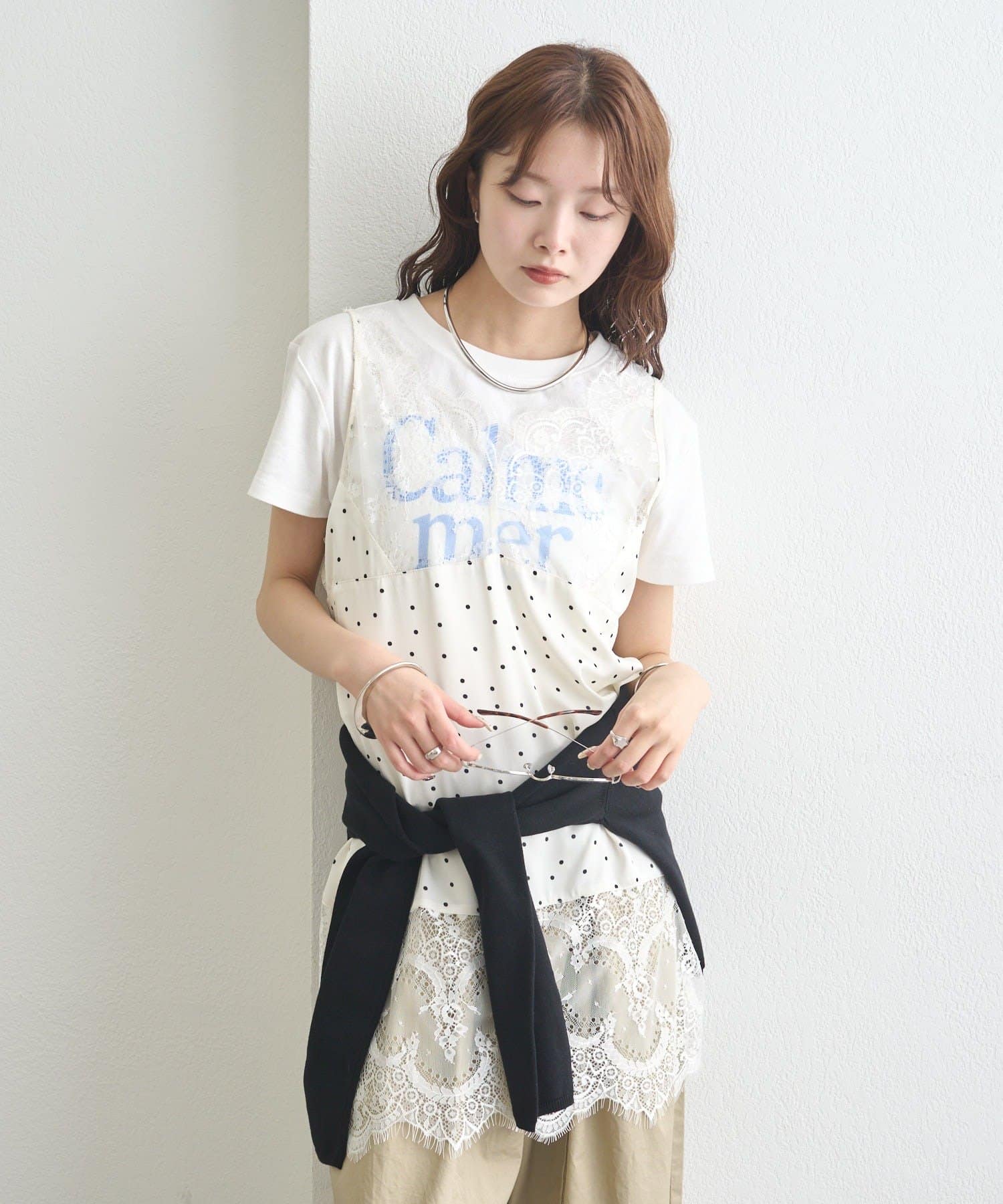 《新色ドット》【大人っぽいレイヤードスタイルに】レースサテンキャミソール