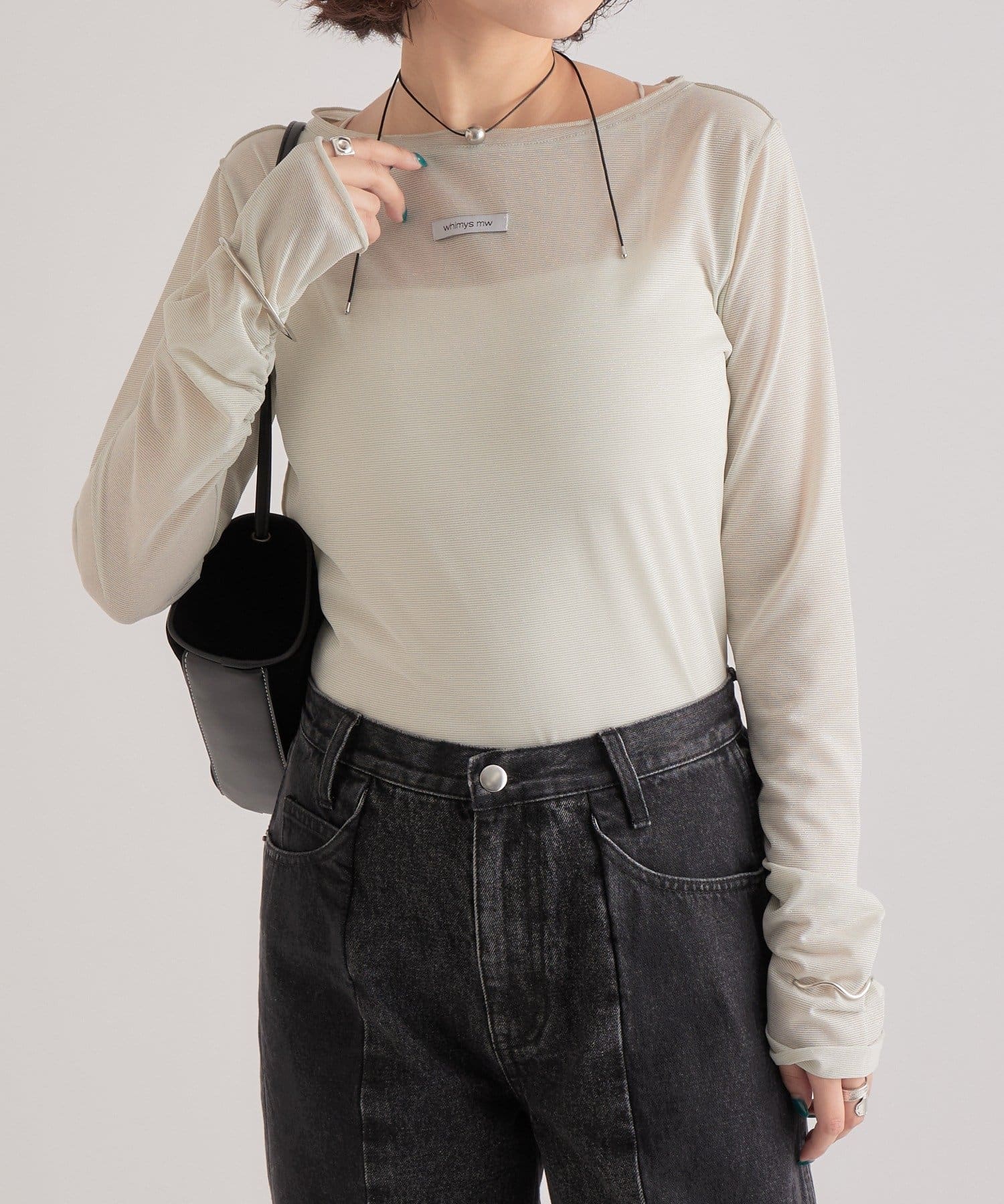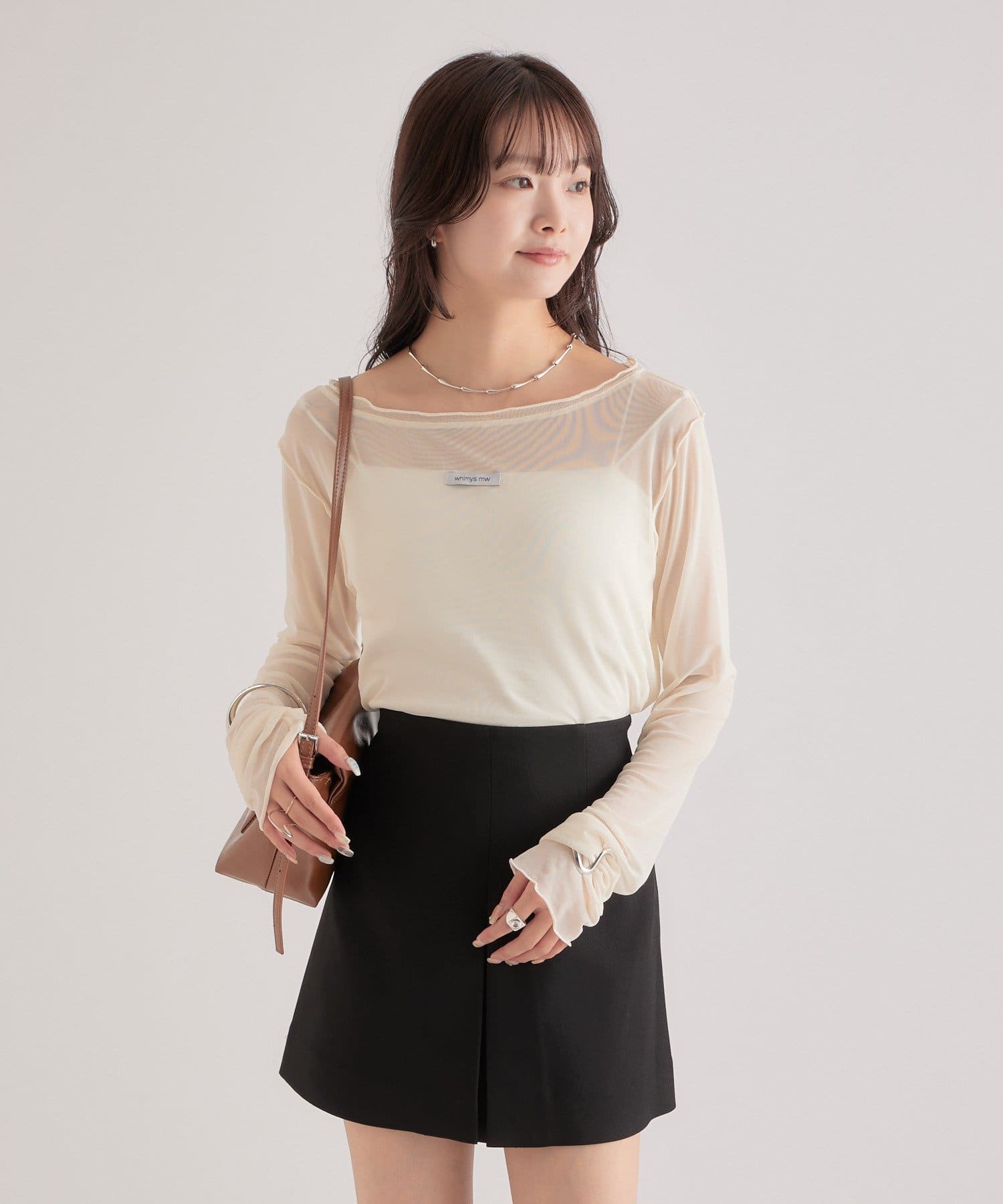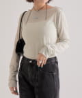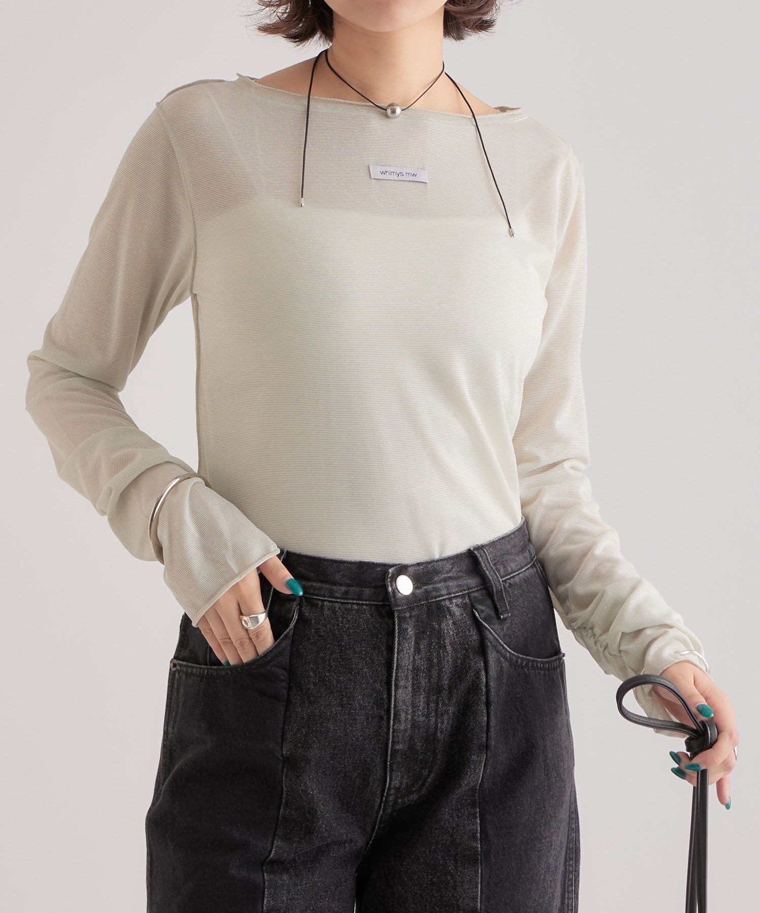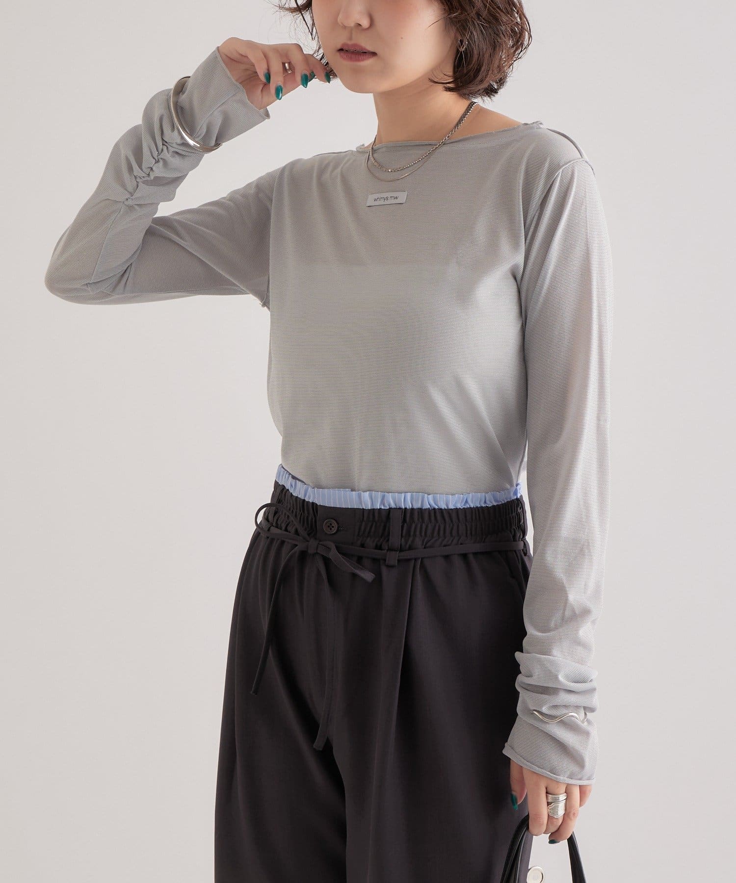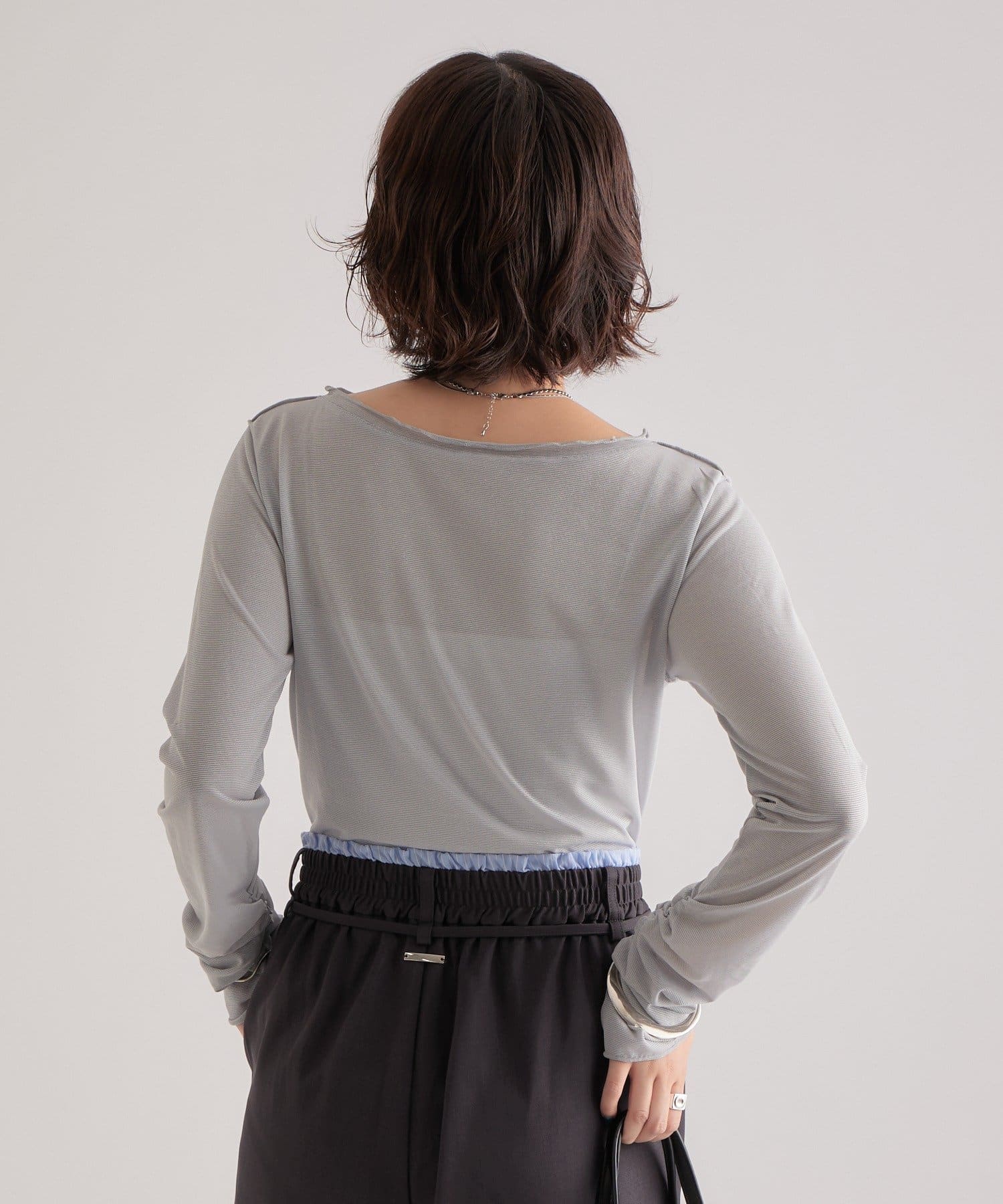 ・シンプルながらもシアー素材の抜け感とデザイン性のあるトップスで着回し力抜群アイテムです◎