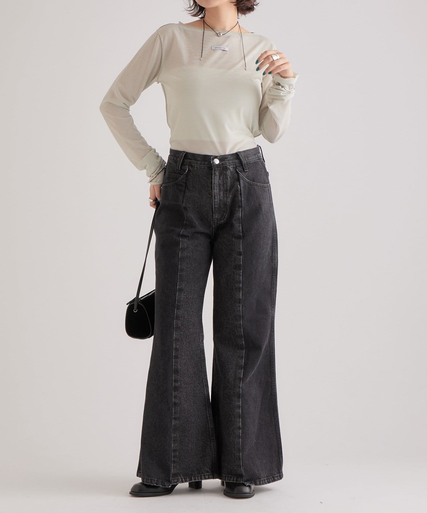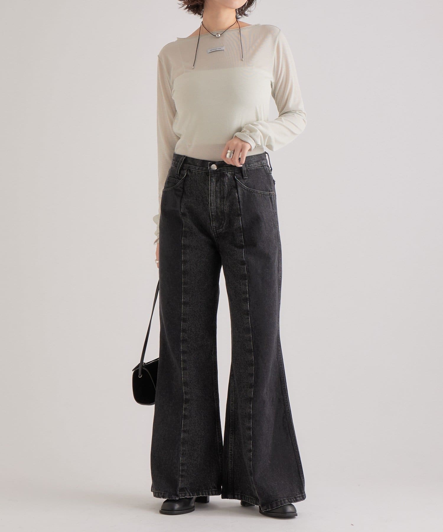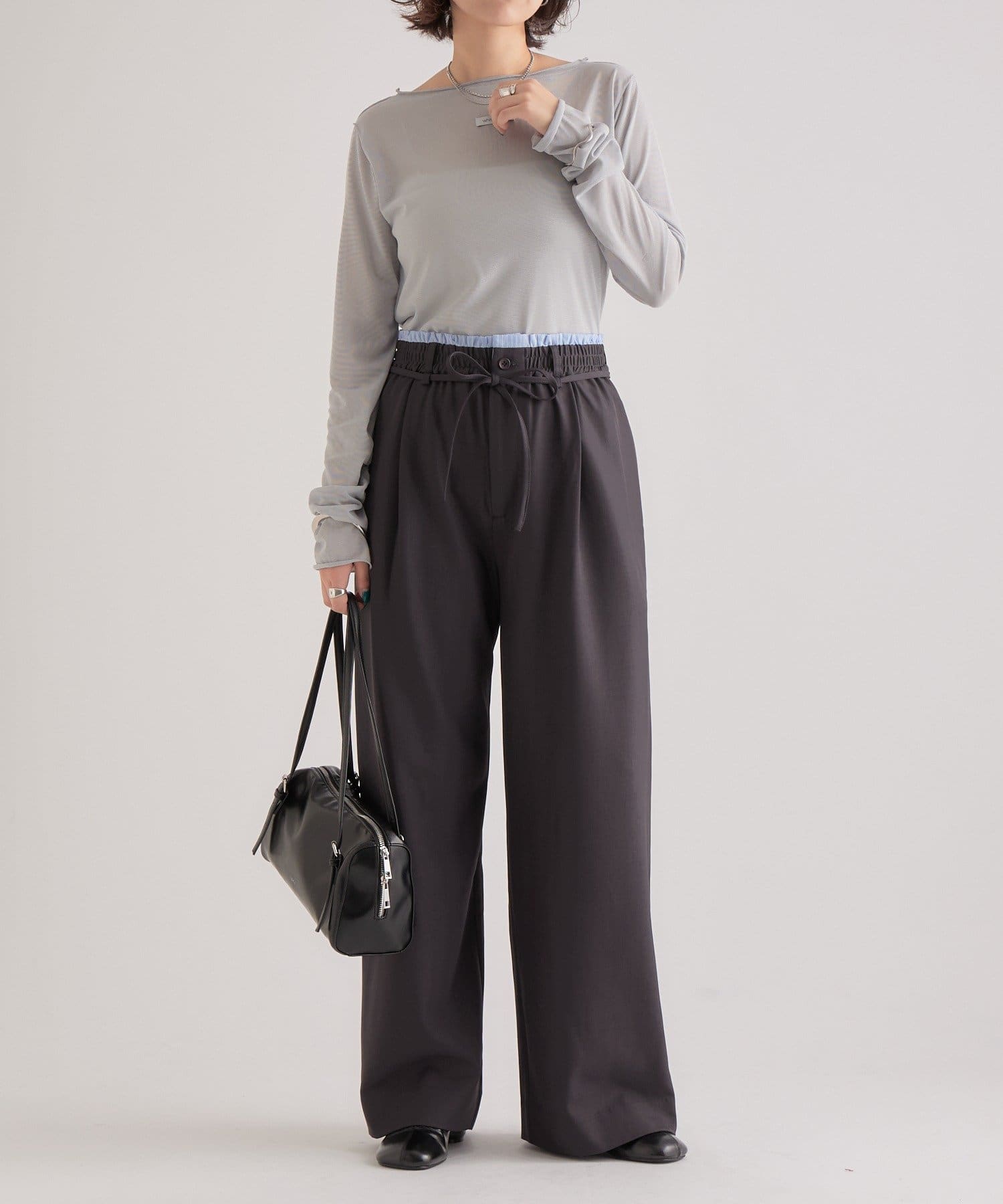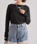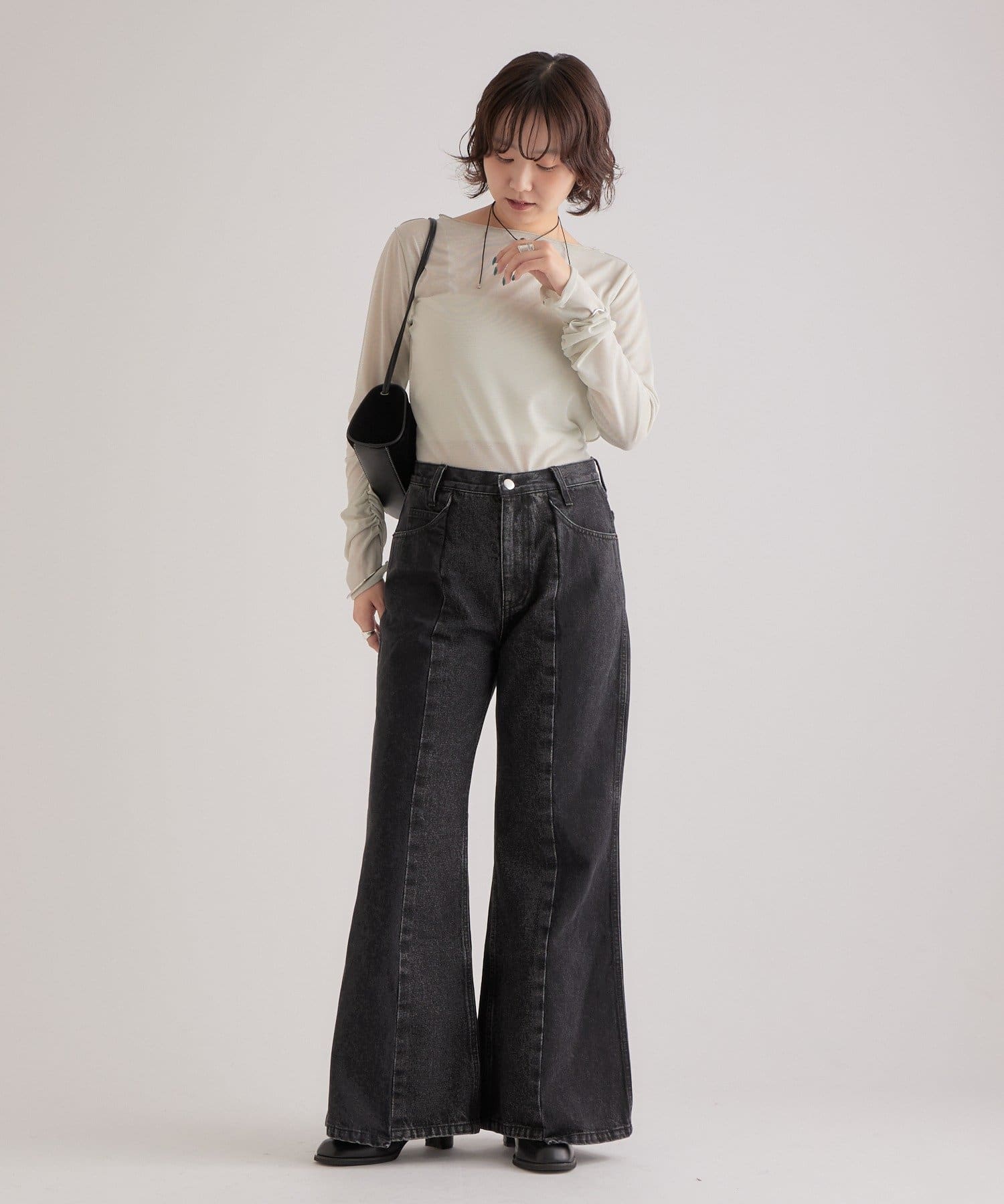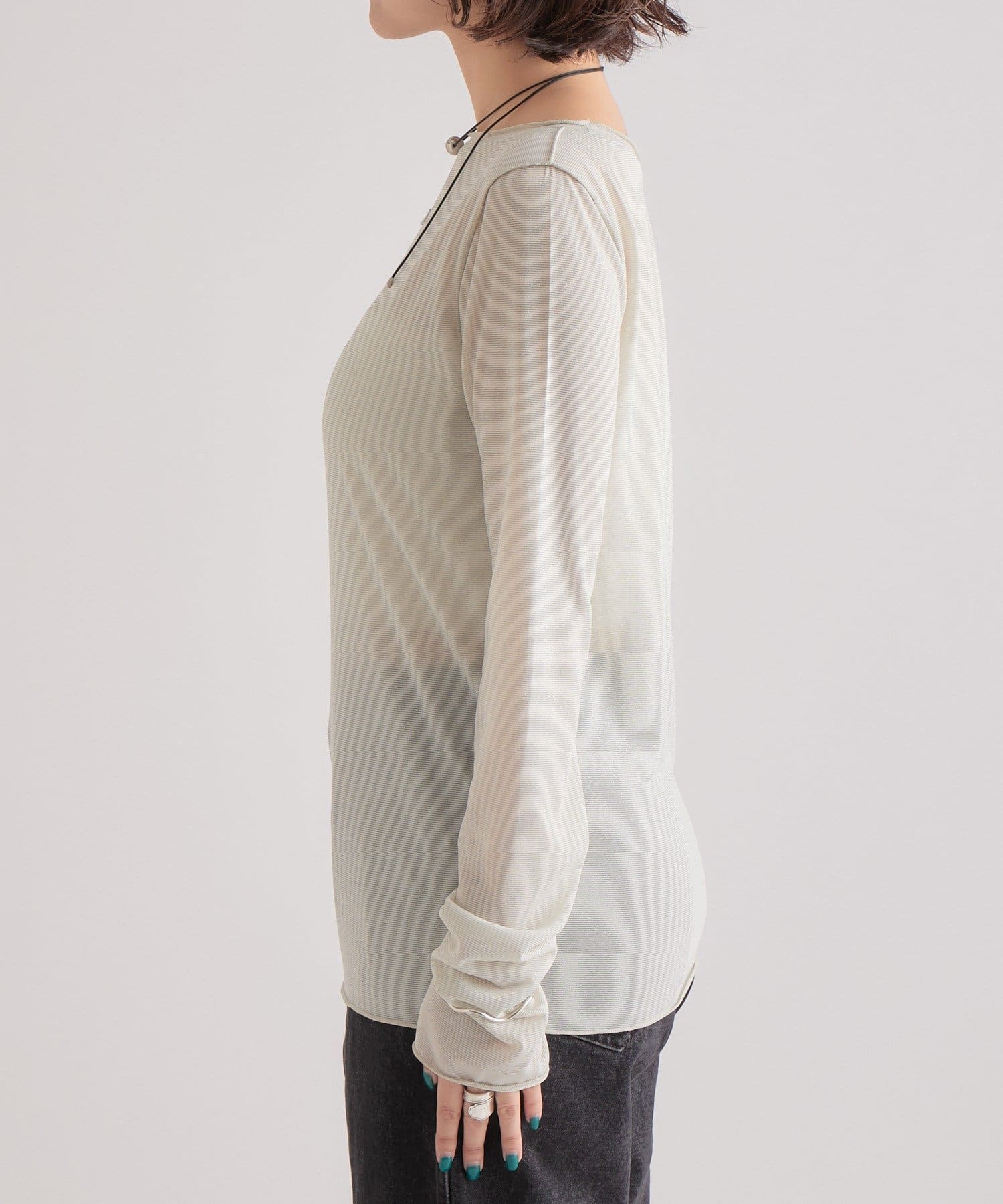 ・シンプルながらもシアー素材の抜け感とデザイン性のあるトップスで着回し力抜群アイテムです◎