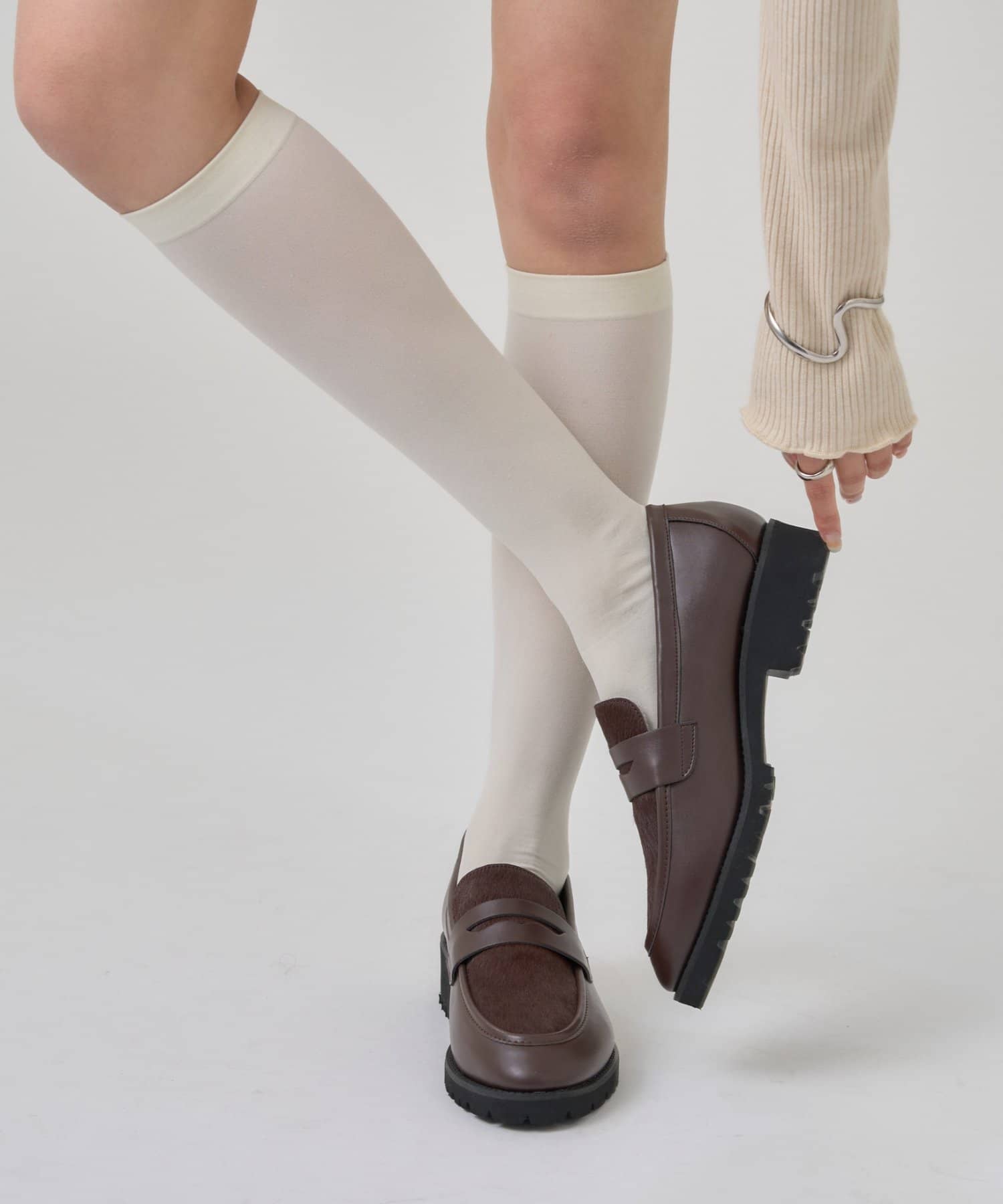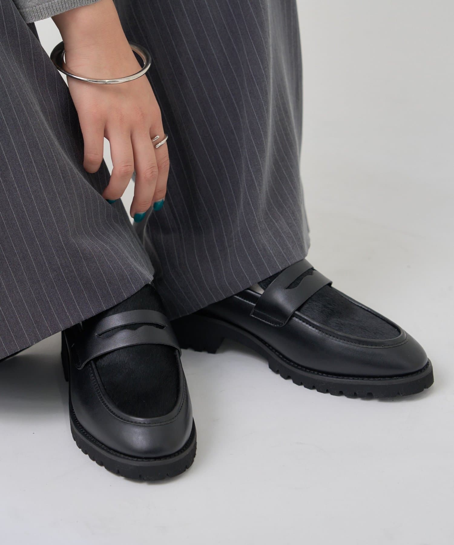・異素材の質感がアクセントになり、足元からスタイリングを引き締めてくれます。