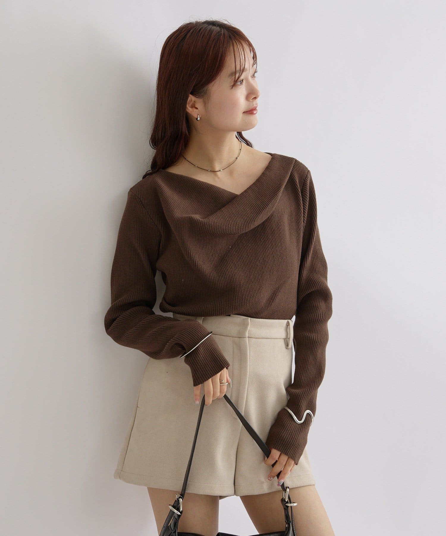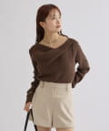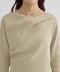 ・上品なドレープネックが、顔周りを華やかに演出します。