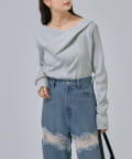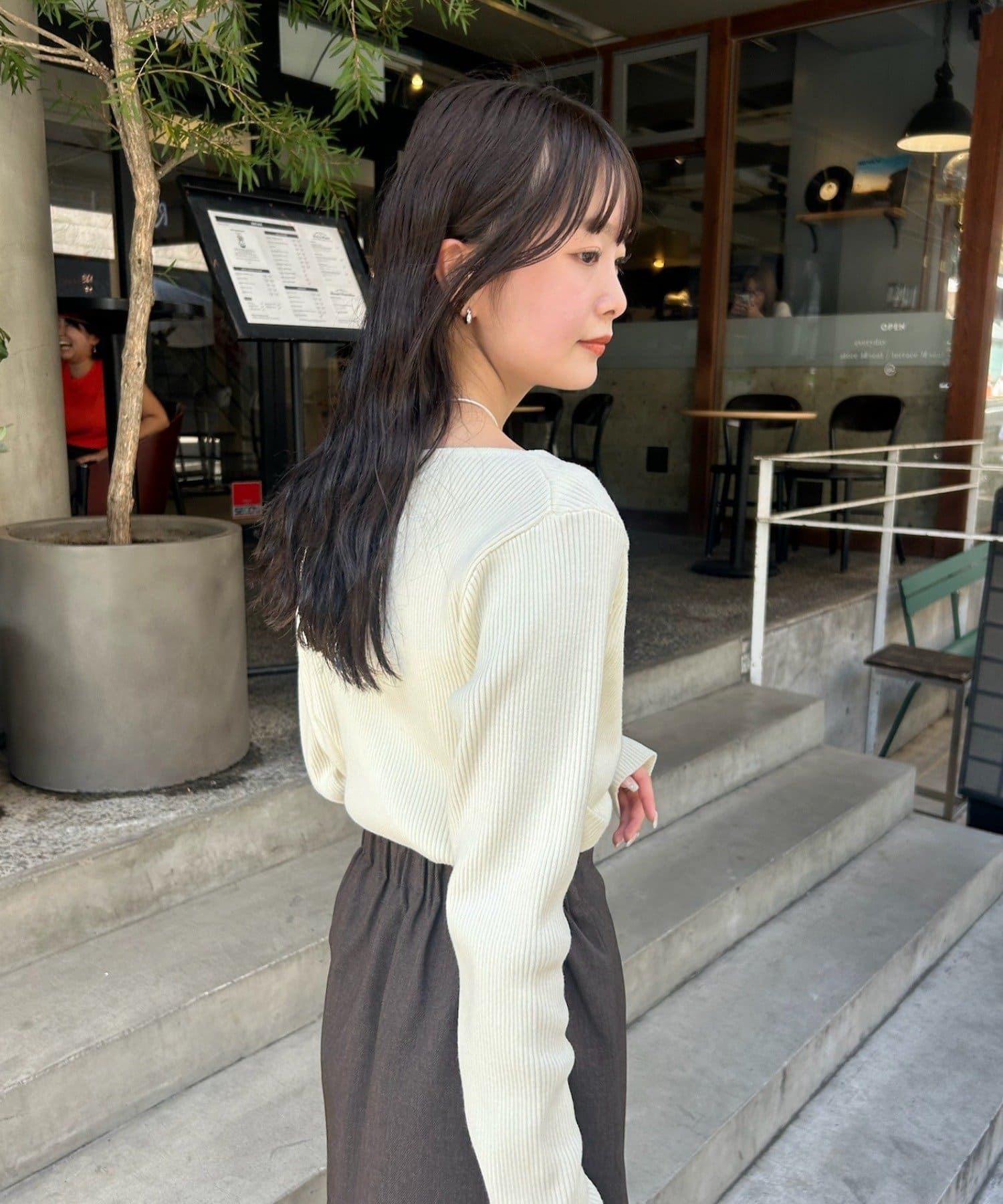 ・オフショルデザインでデコルテがキレイに見えるので、アクセサリーなどをプラスするのも◎