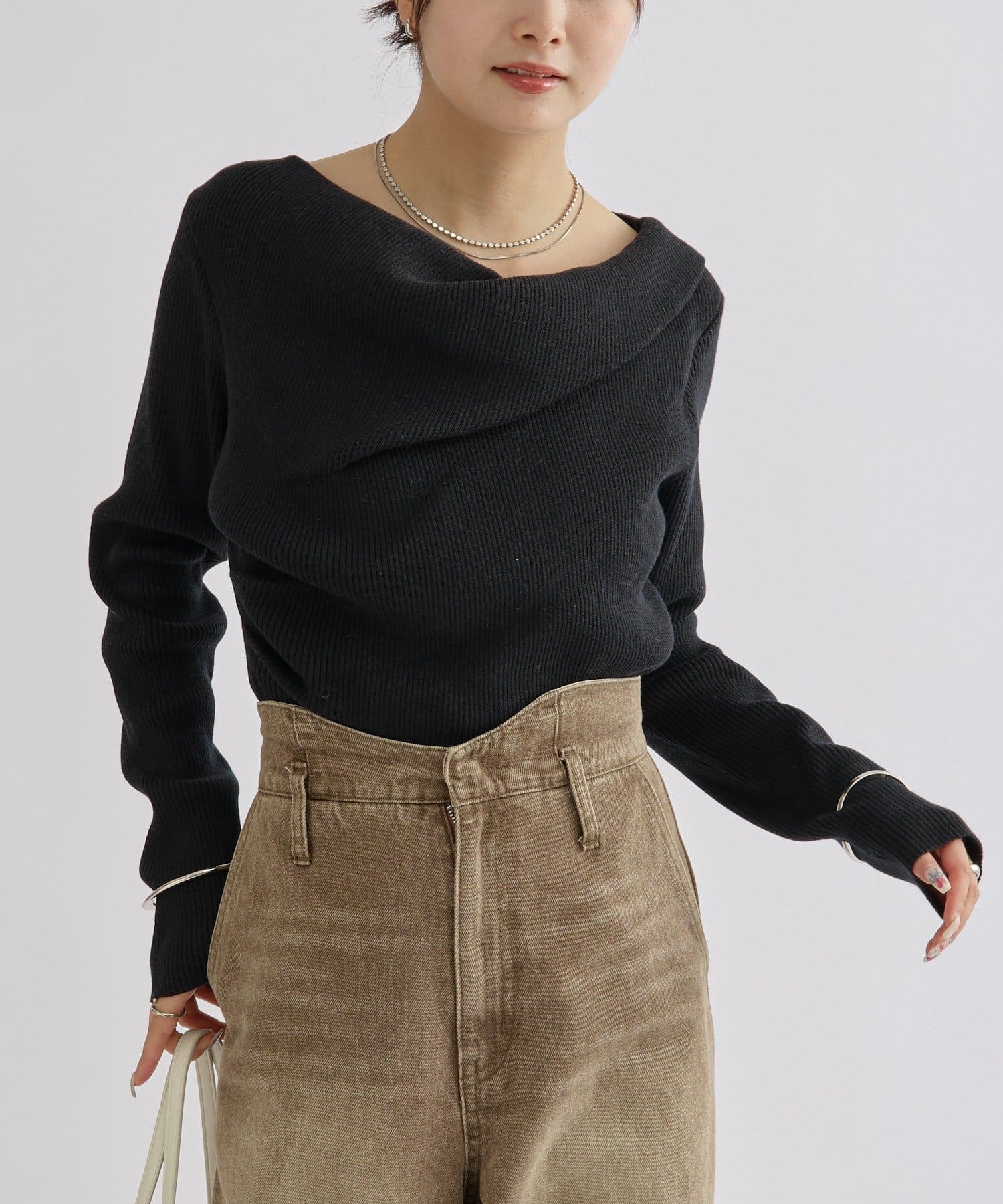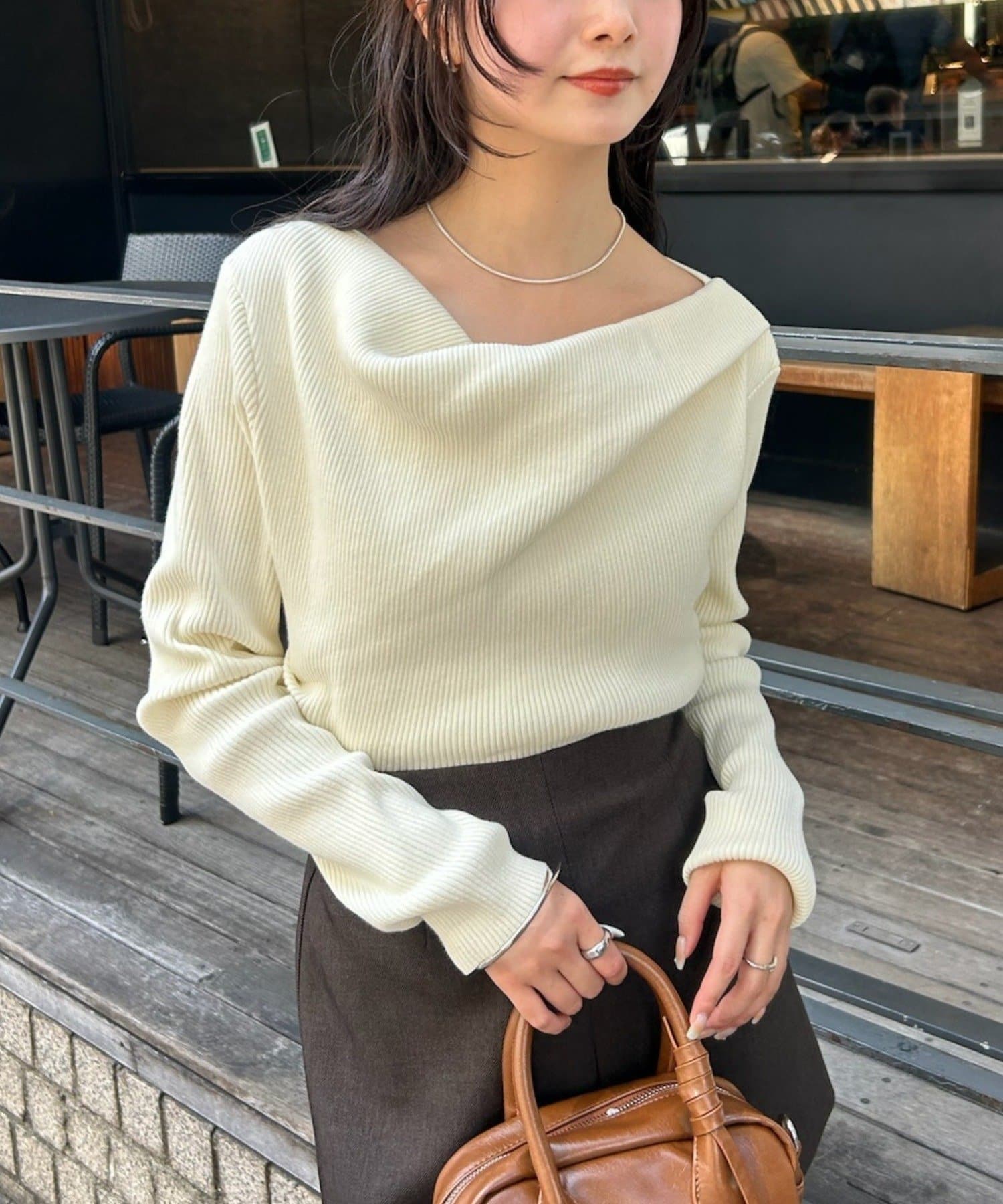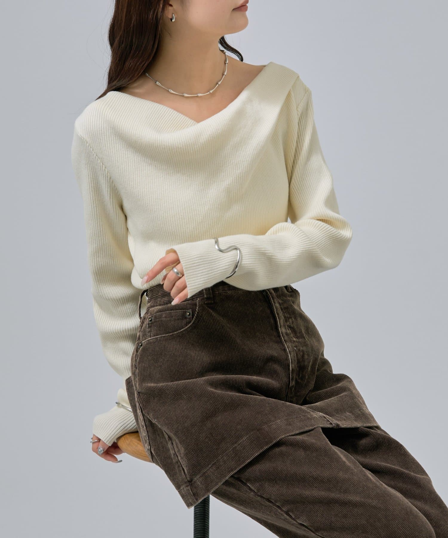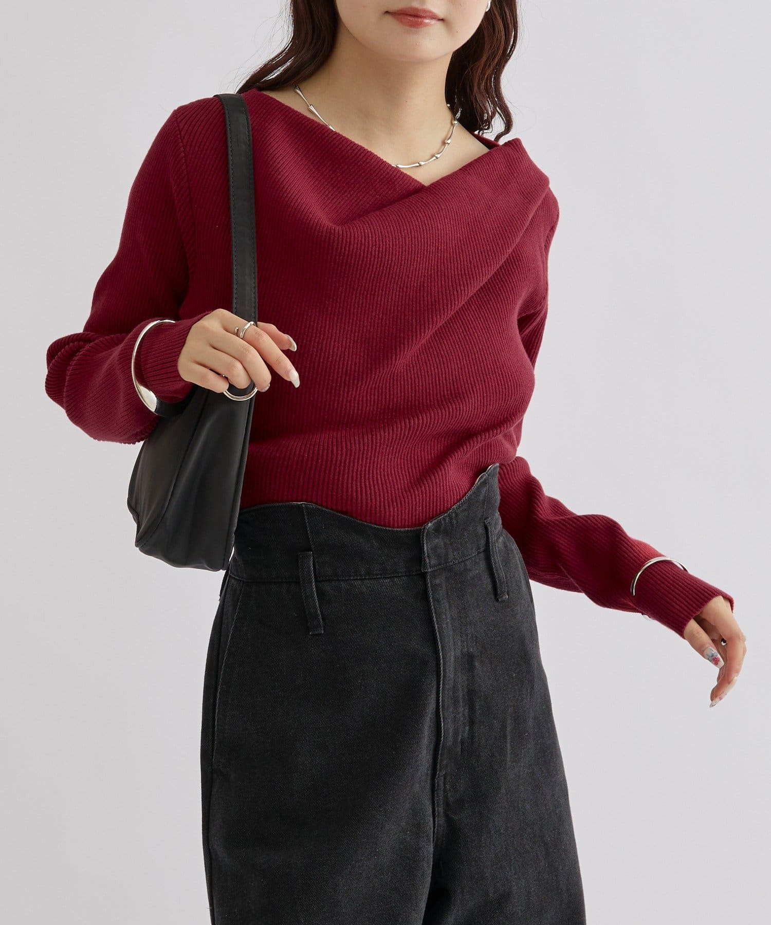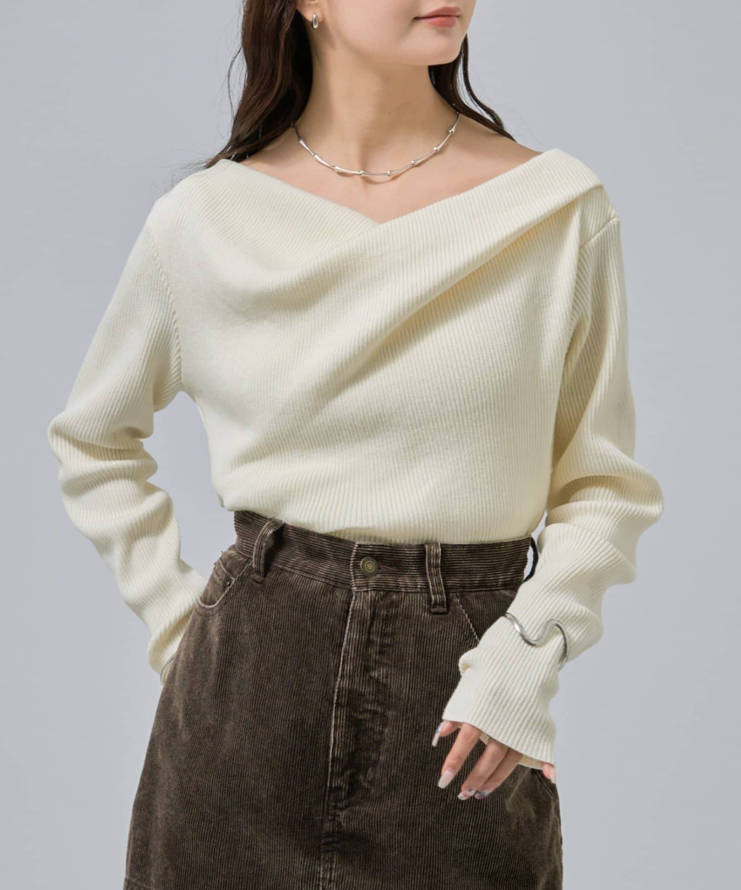 ≪パルクロウィークおすすめITEM!≫【年間総売上1万枚以上!ロングセラー人気アイテム!】オフショルリブニット