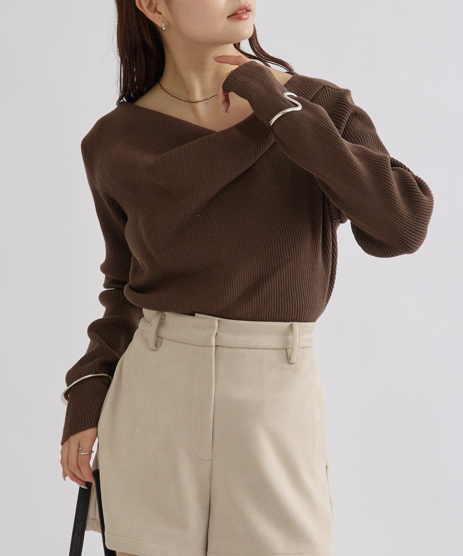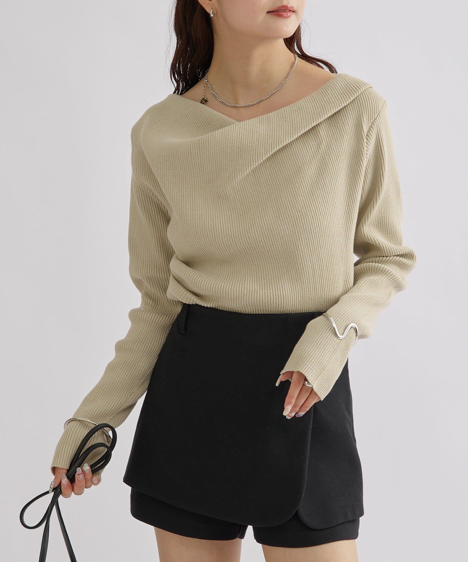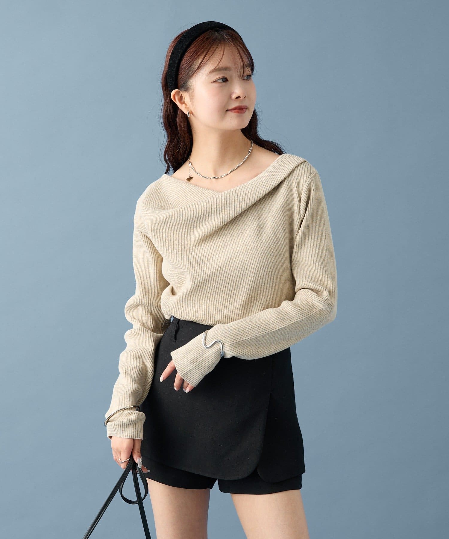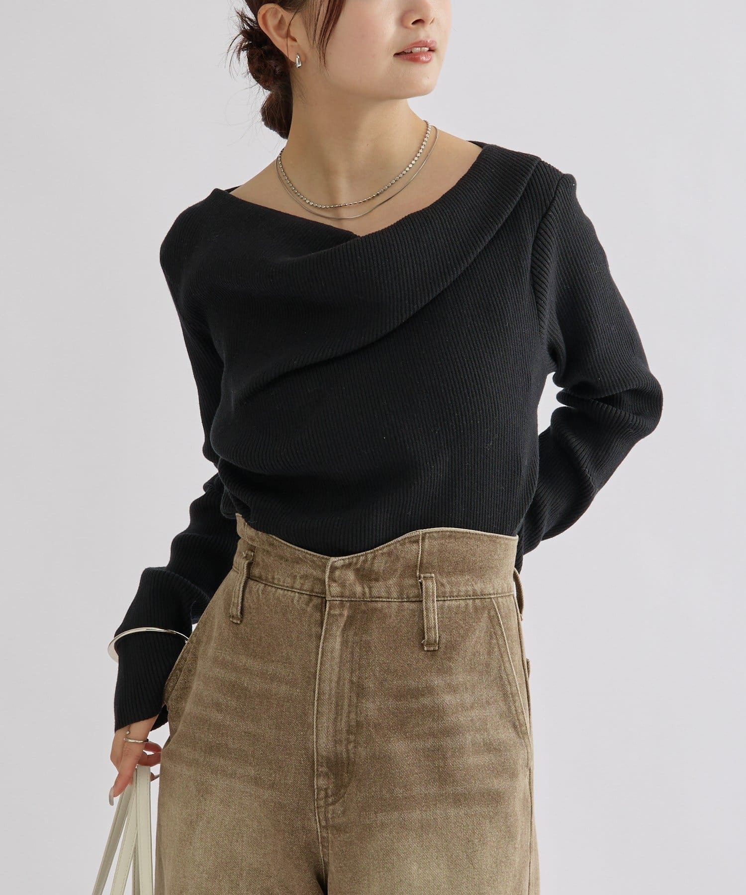 ≪パルクロウィークおすすめITEM!≫【年間総売上1万枚以上!ロングセラー人気アイテム!】オフショルリブニット