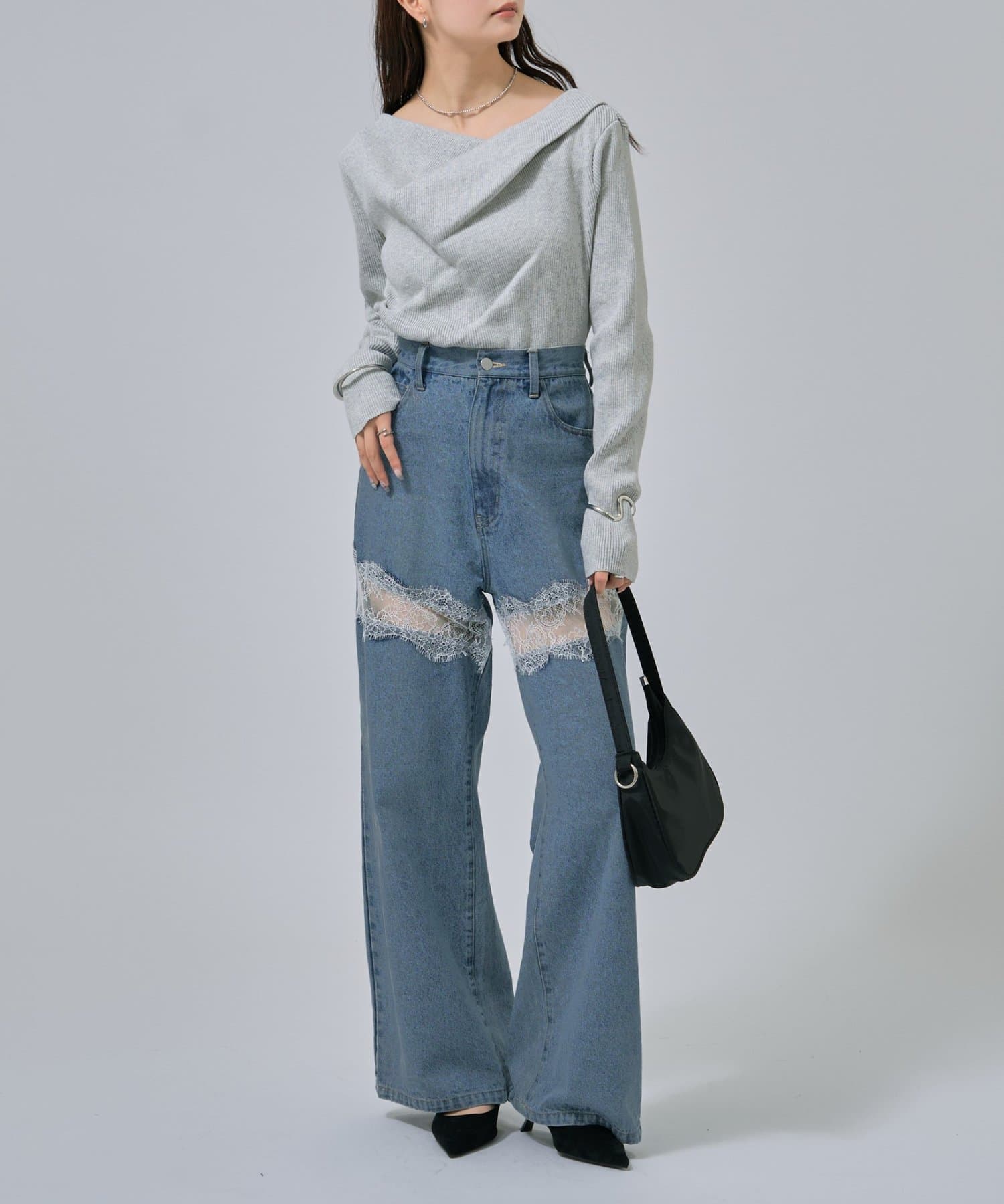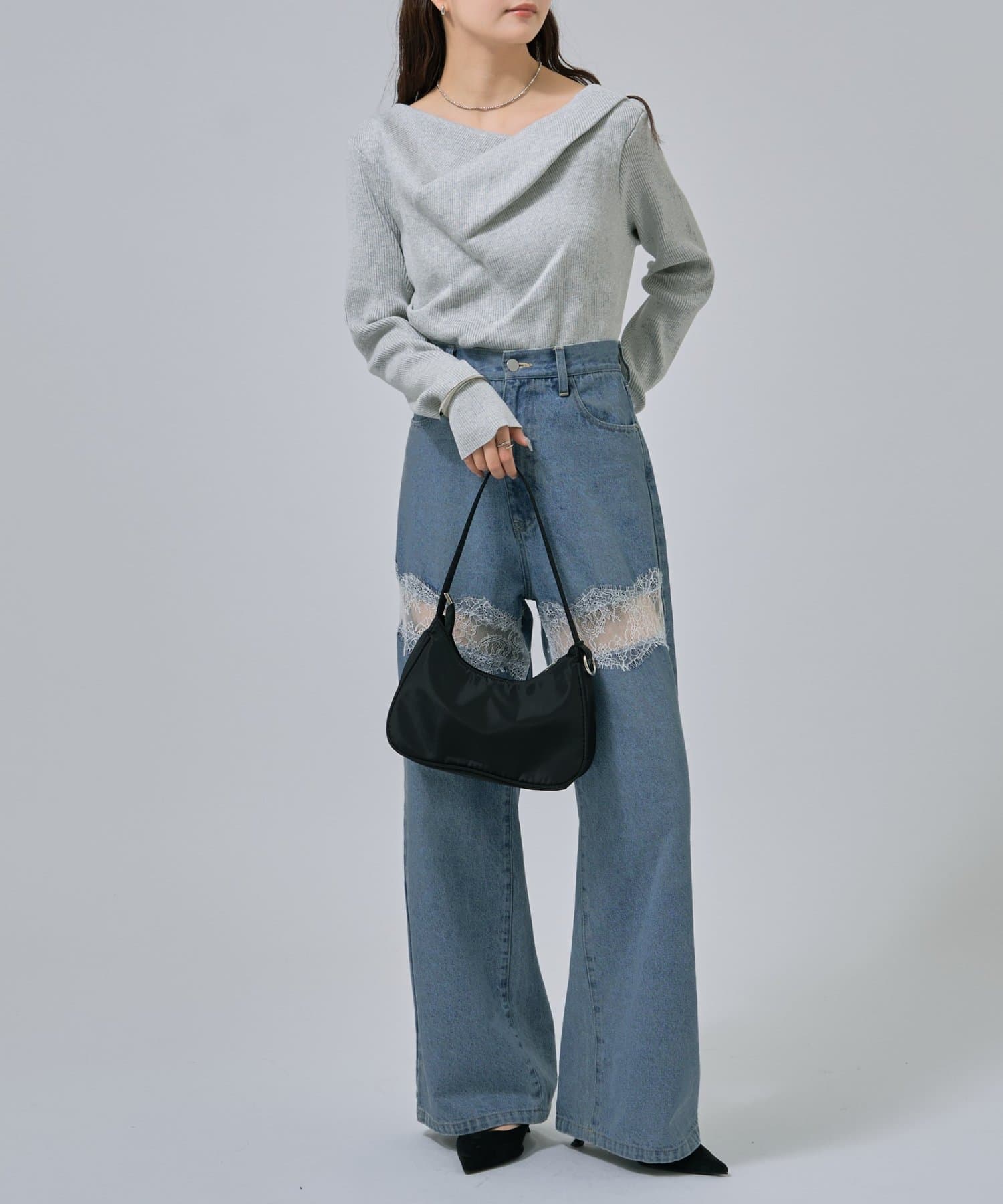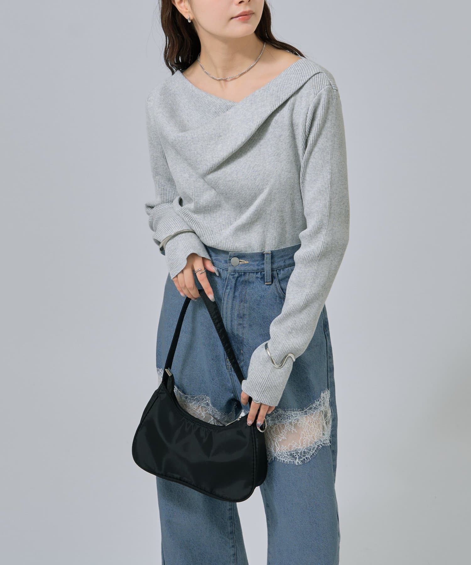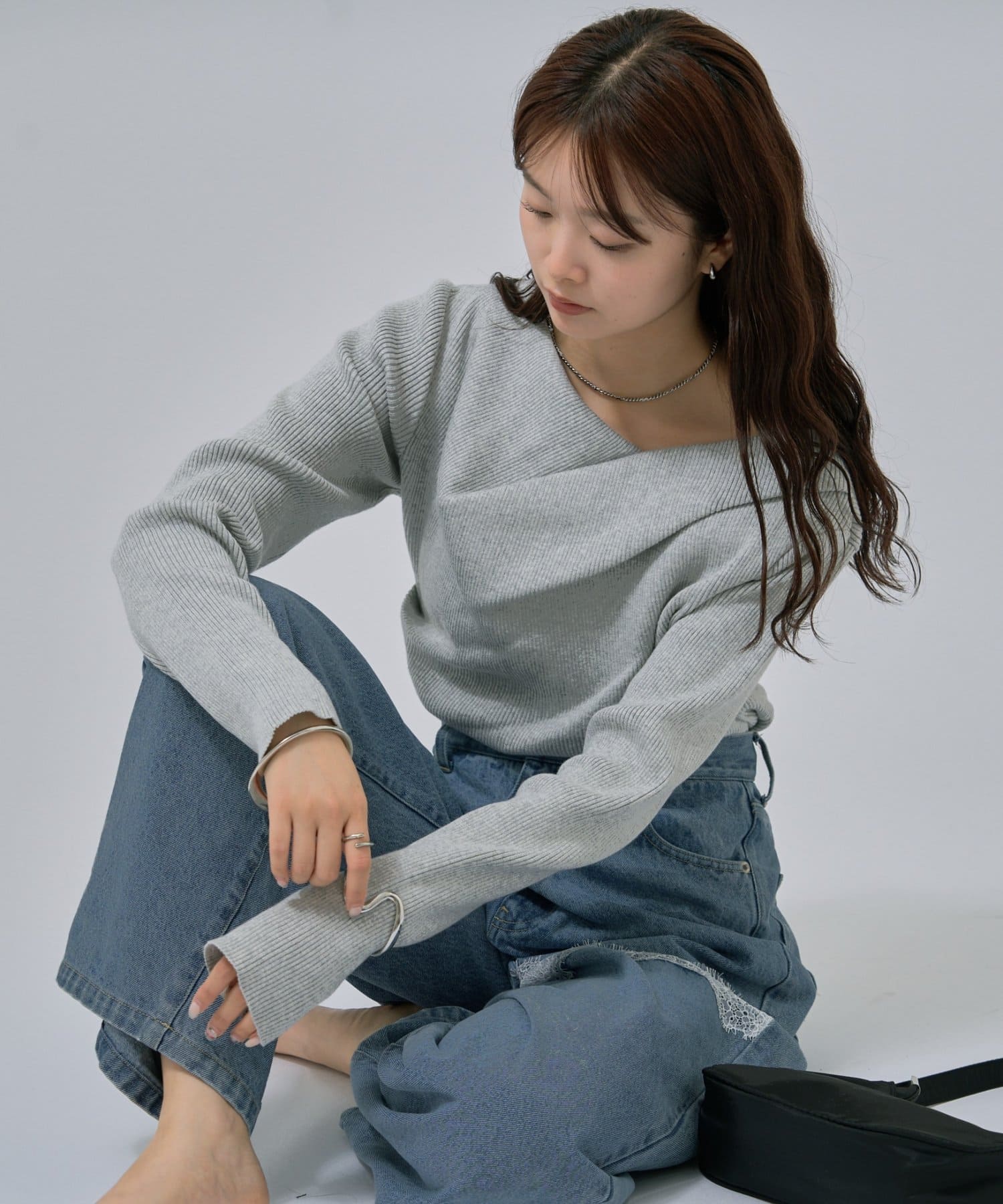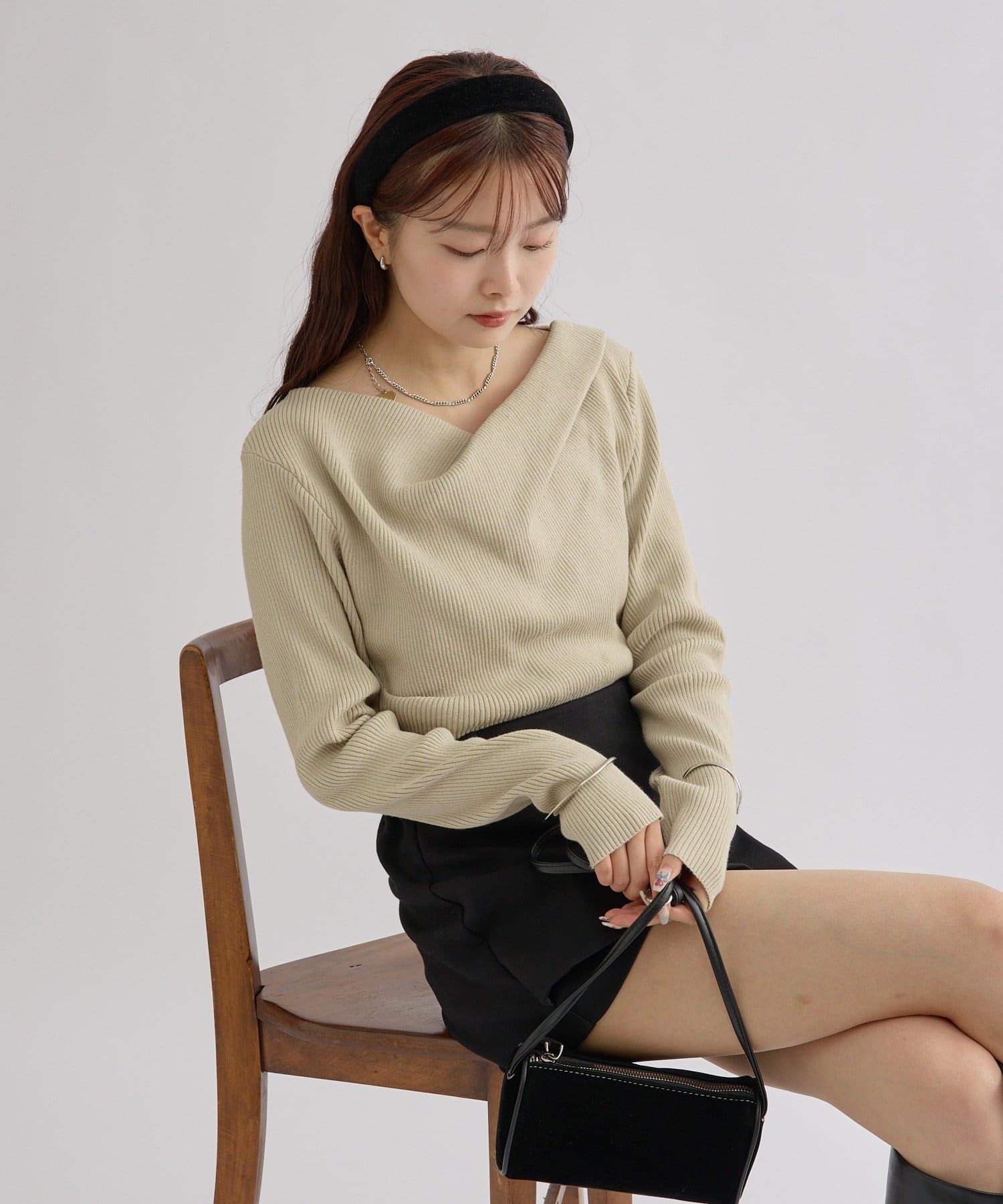 ≪パルクロウィークおすすめITEM!≫【年間総売上1万枚以上!ロングセラー人気アイテム!】オフショルリブニット