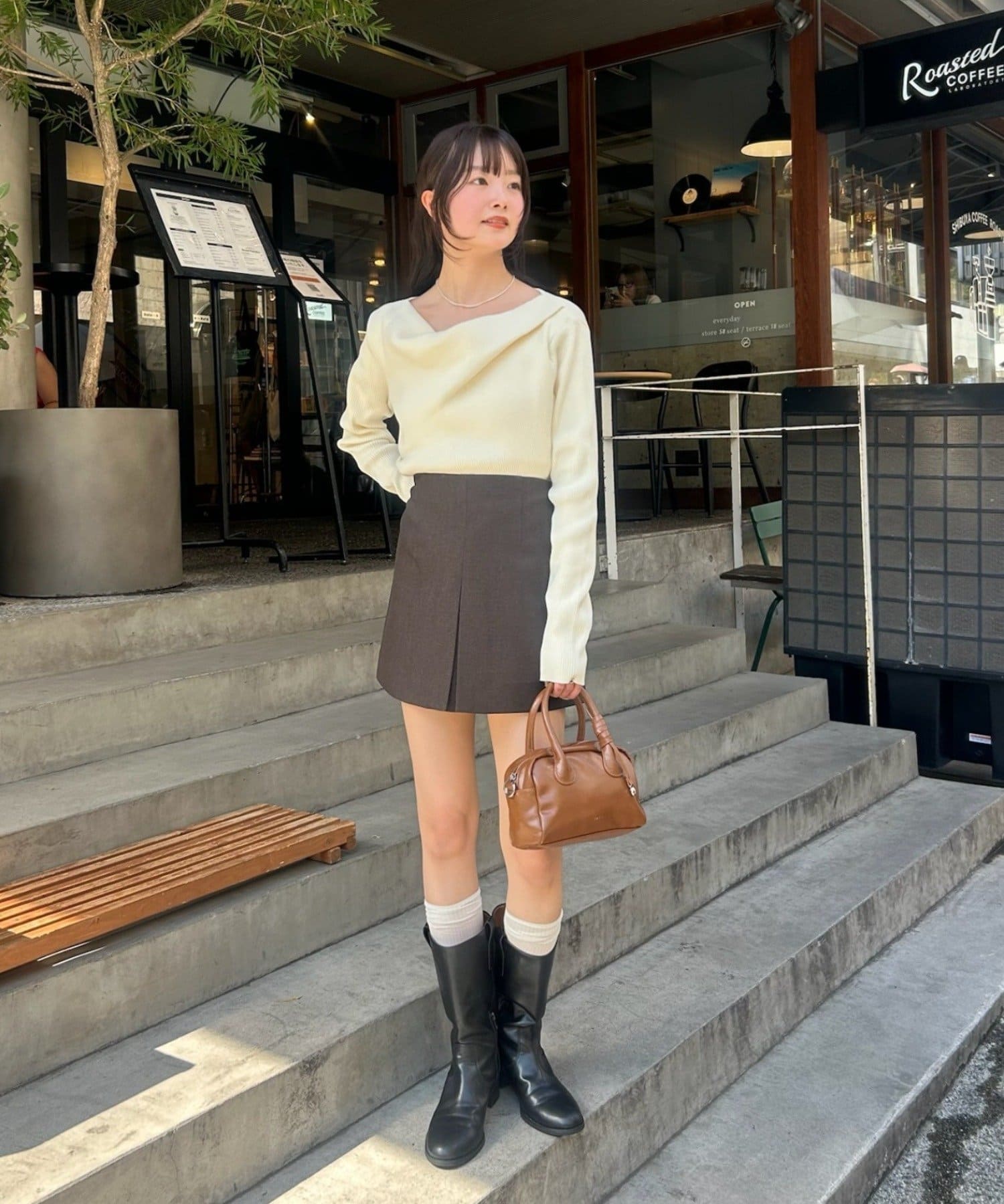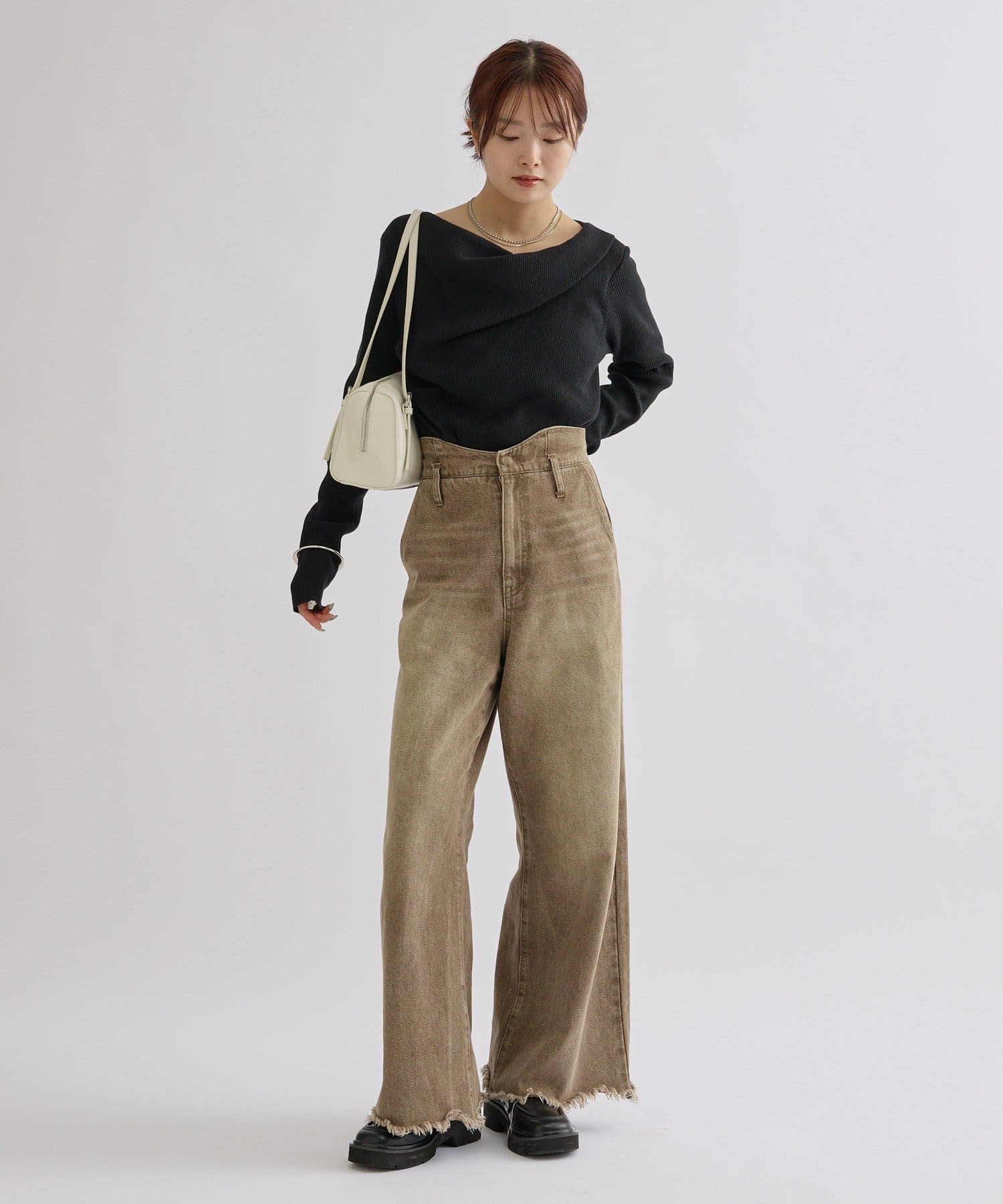 ・秋冬の定番オフショルニット!生地感はシンプルなので合わせるアイテムで好きな雰囲気で着ていただけます♡