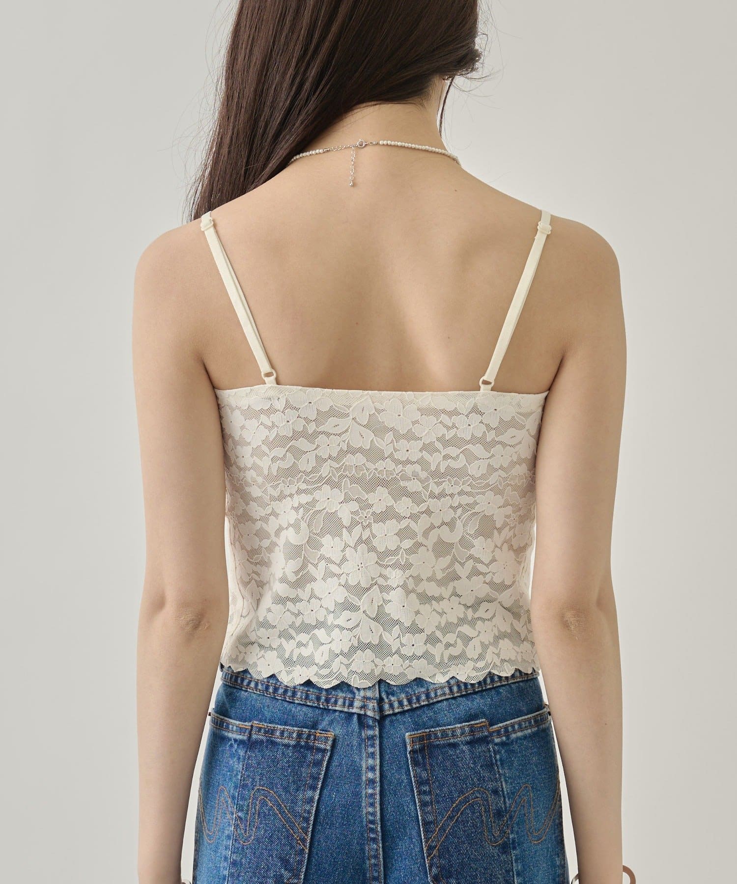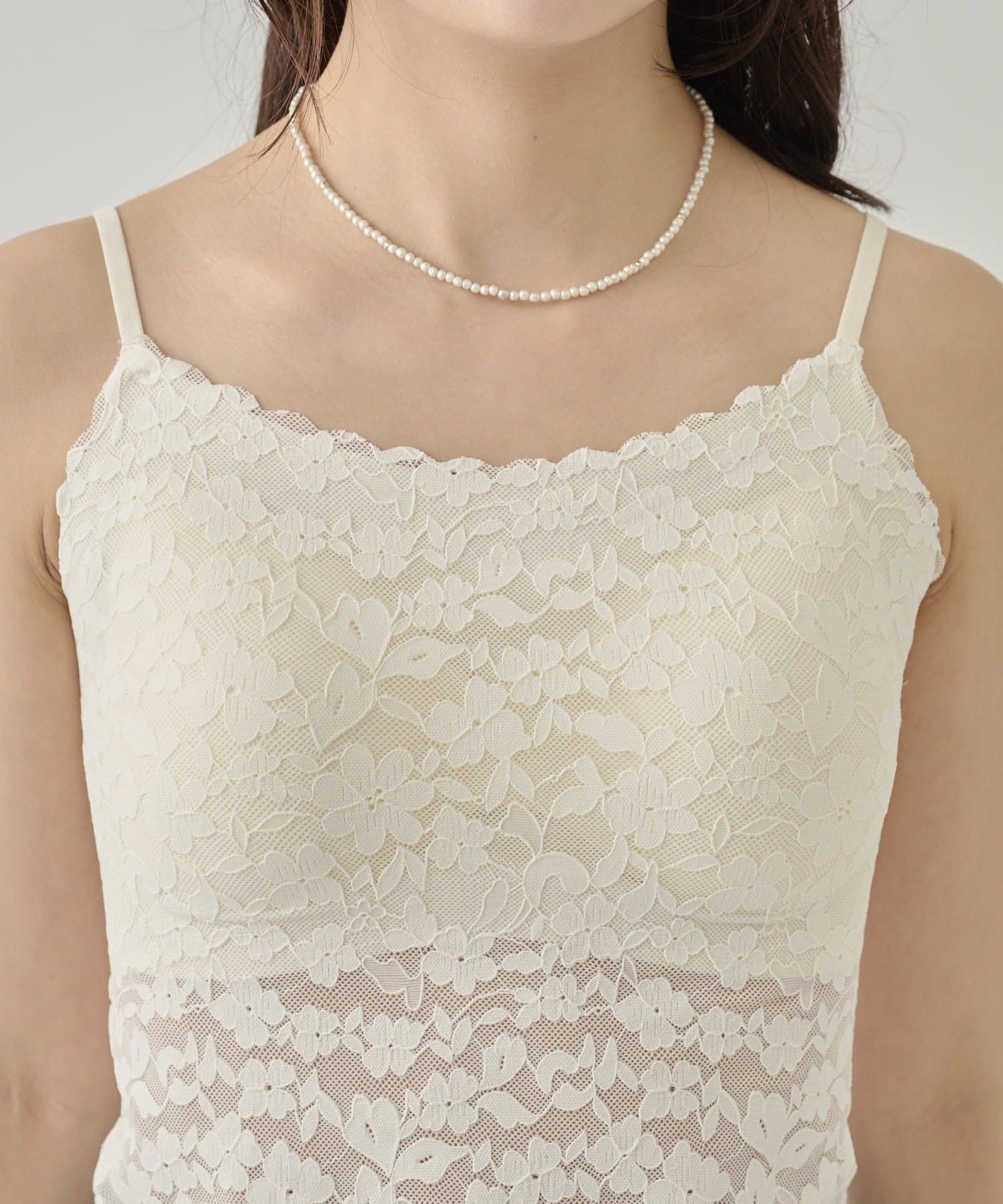・繊細なレースデザインが、上品で女性らしい印象のキャミソール。