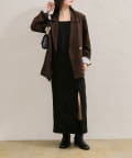 ワンピースのスリットが女性らしく、抜け感を演出してくれます。