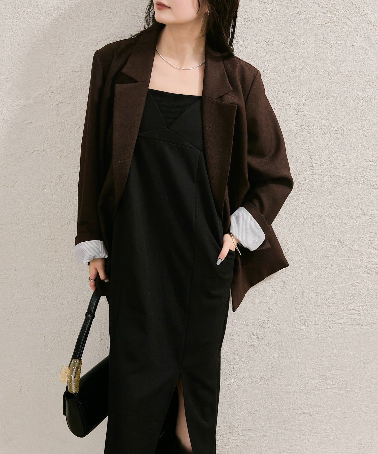 ・ワンピースはフロント左部分にスリットが入っていて、Iラインシルエットがスタイル良く魅せてくれます。