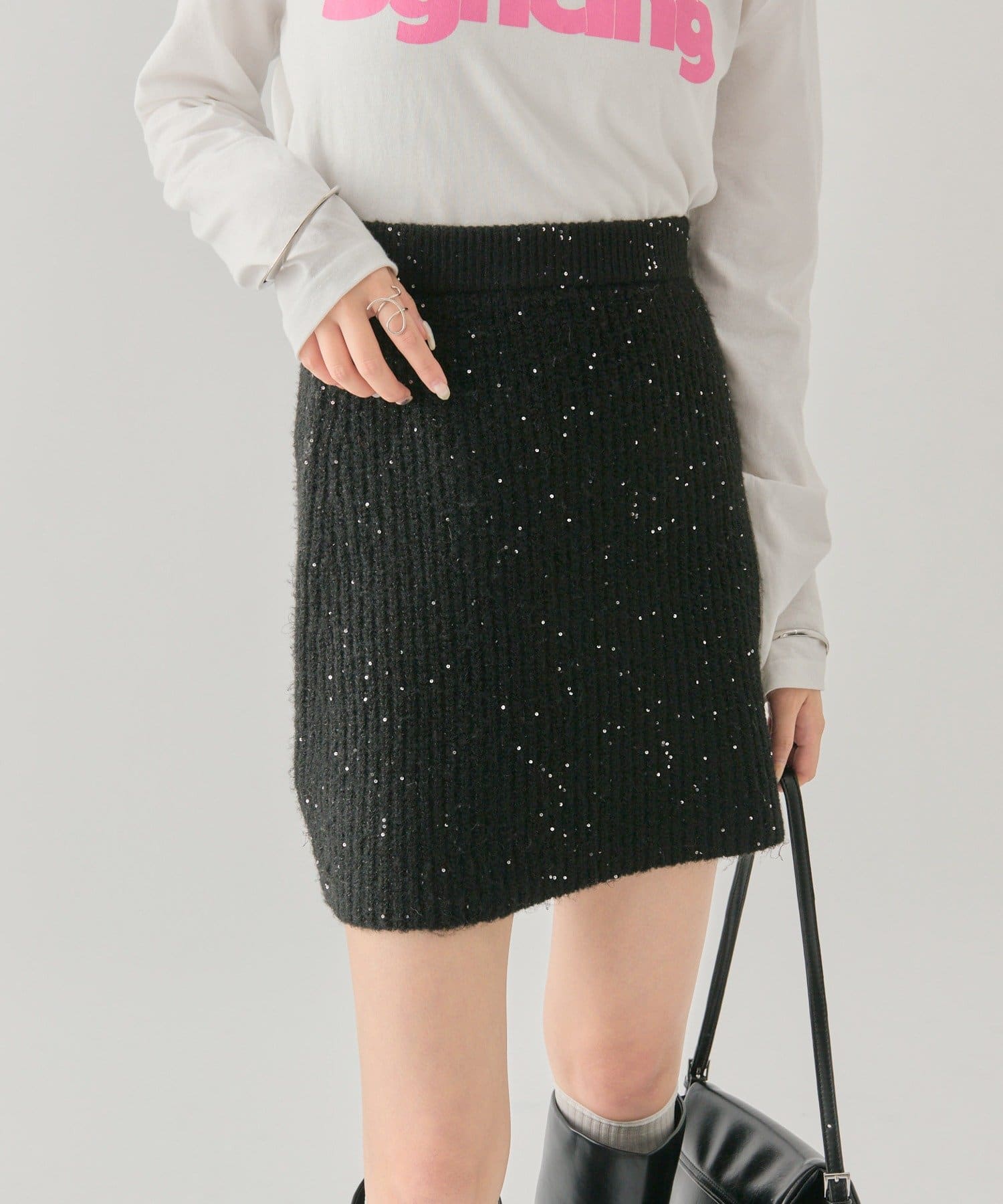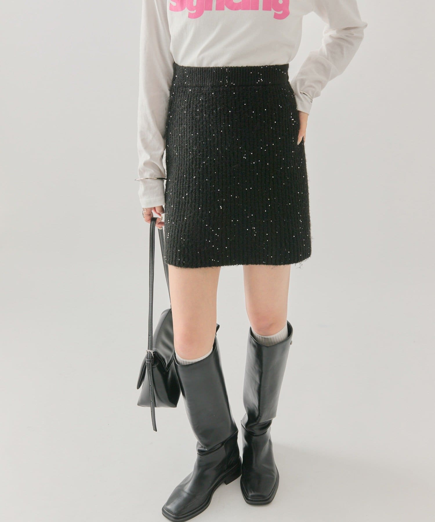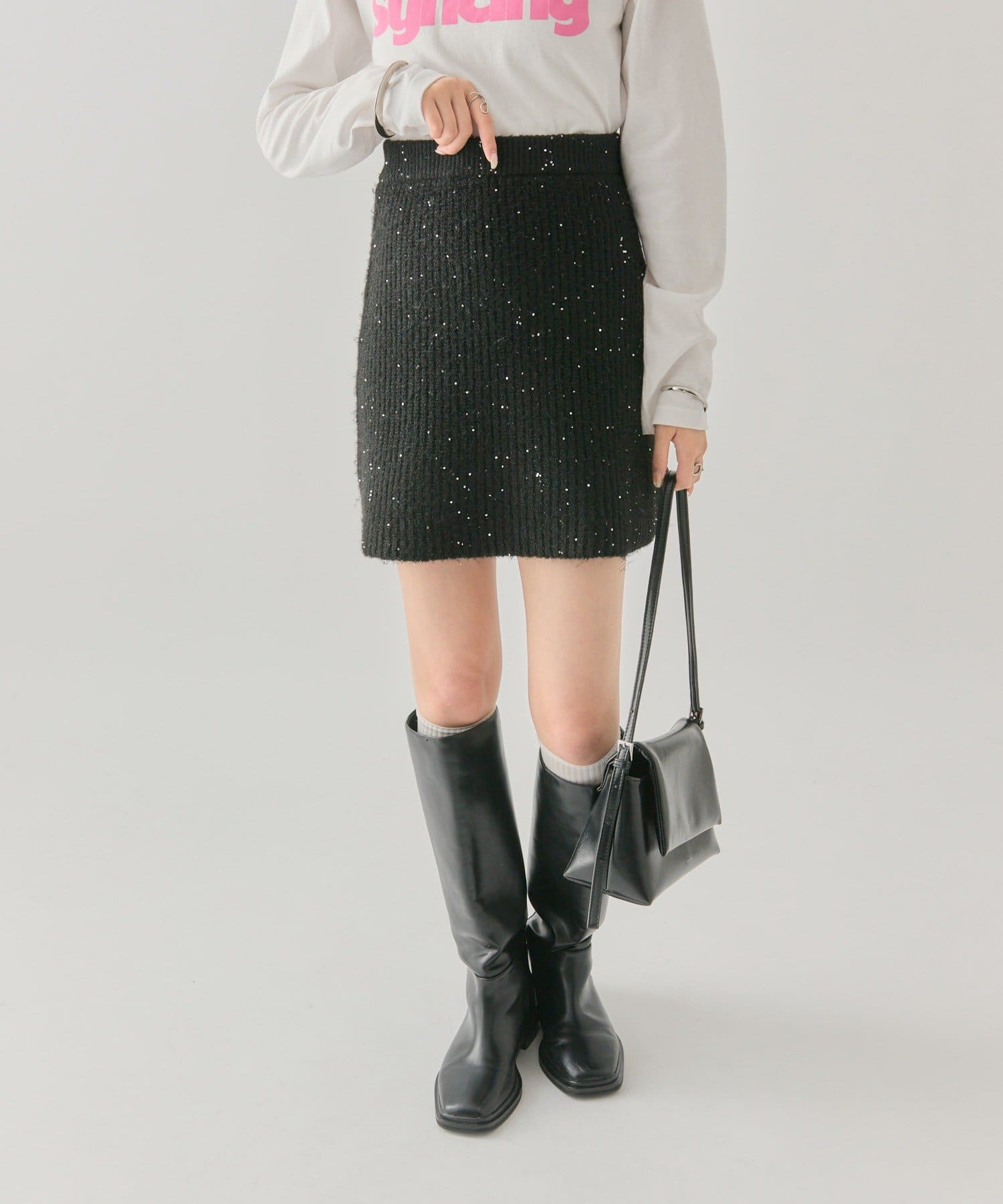 スパンコールが特別感を演出してくれるスカート!レイヤードスタイルも◎
