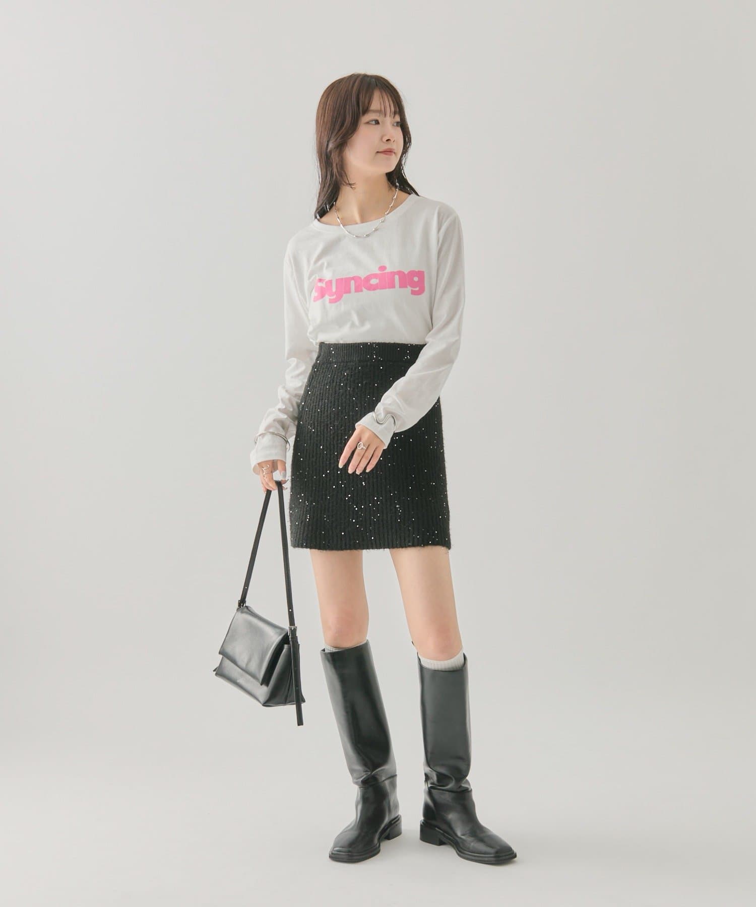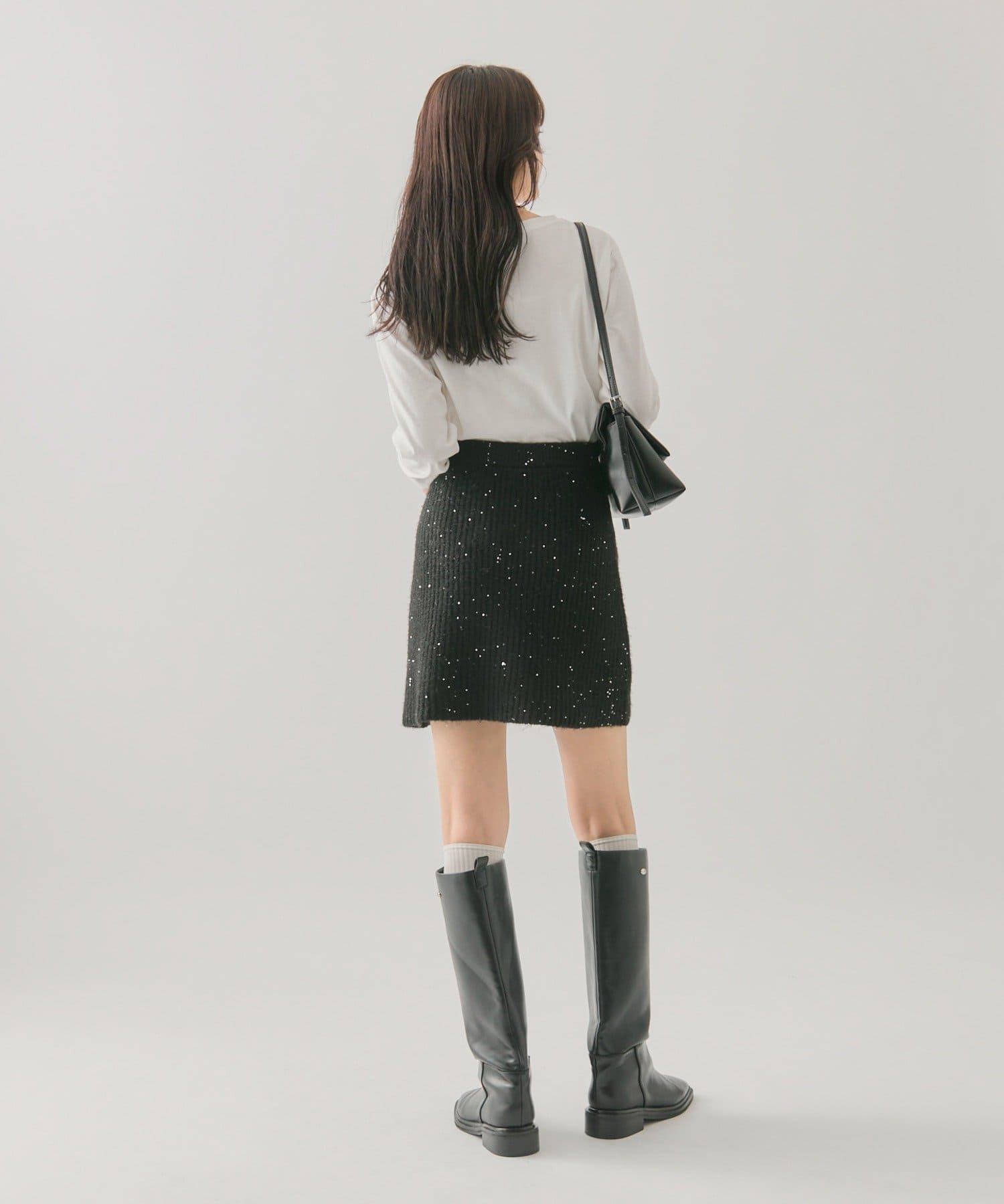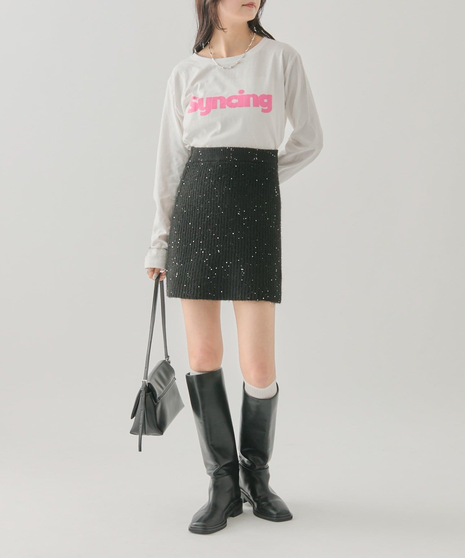 スパンコールが特別感を演出してくれるスカート!レイヤードスタイルも◎