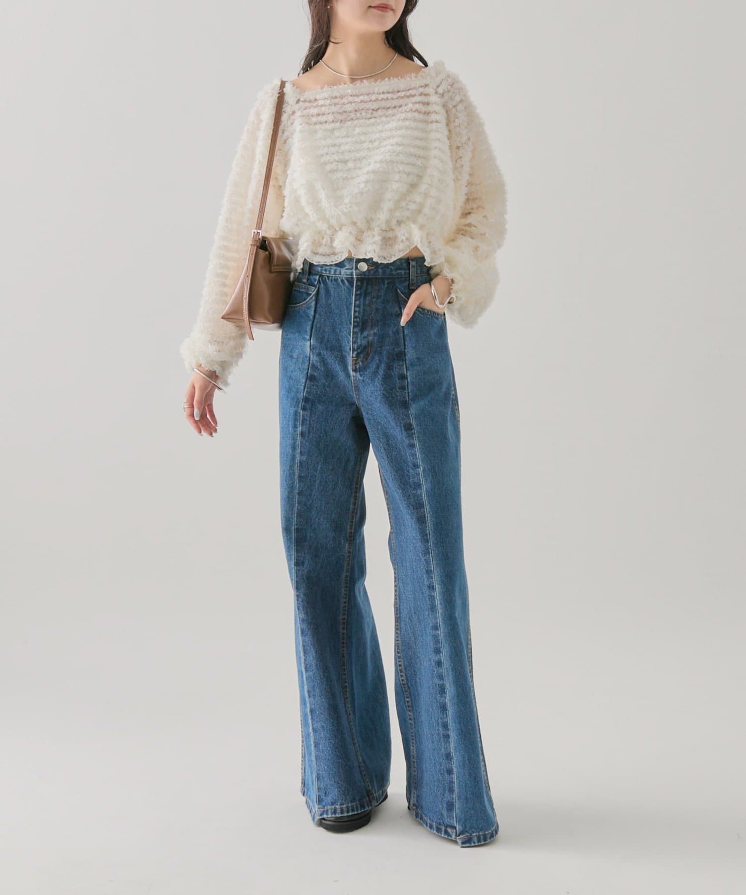 ・【美脚、脚長効果が叶う♡】ビューティーフレアデニム