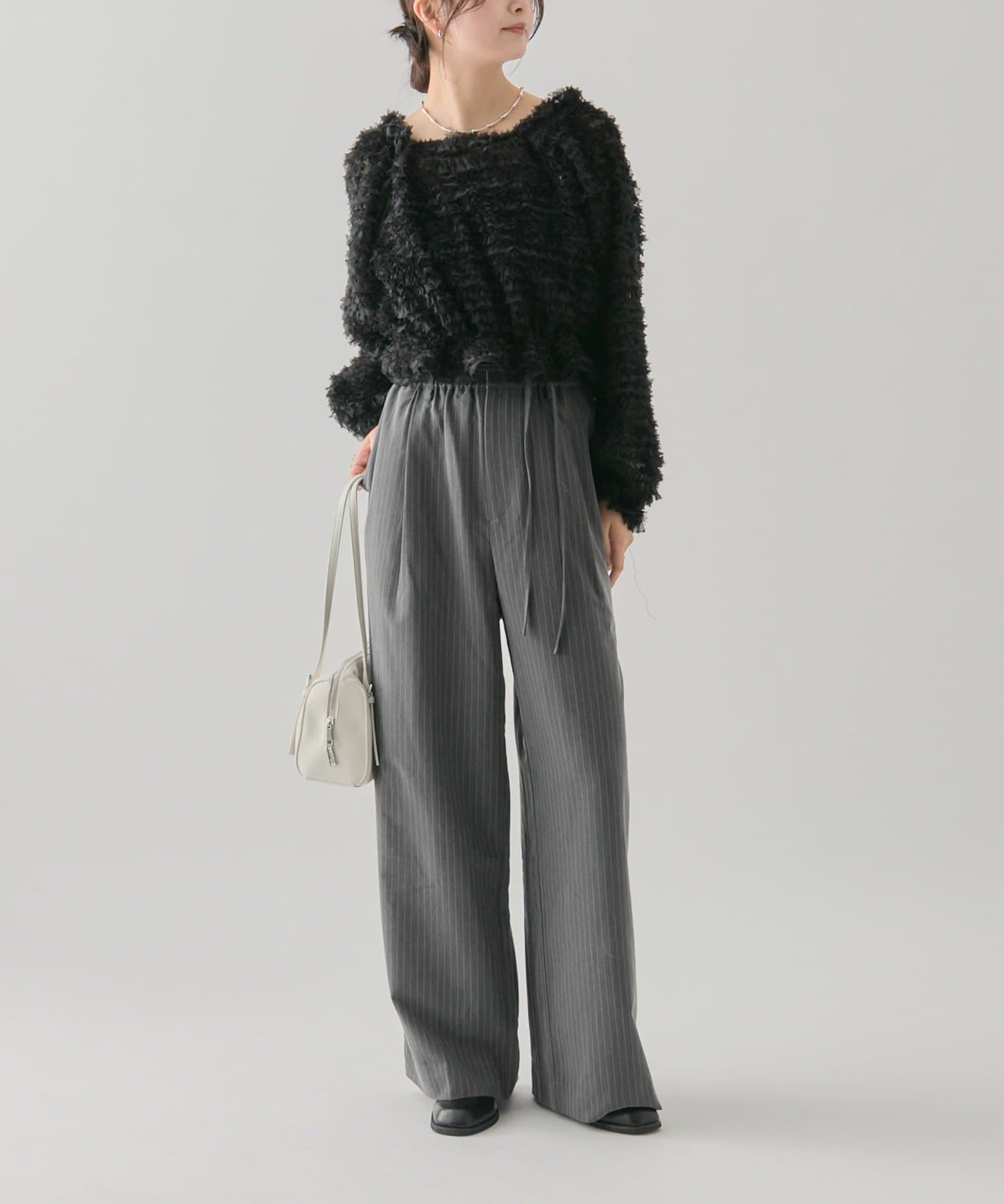 表面感のあるアイテムで、上半身にボリュームを出してくれるのでお気に入りです!