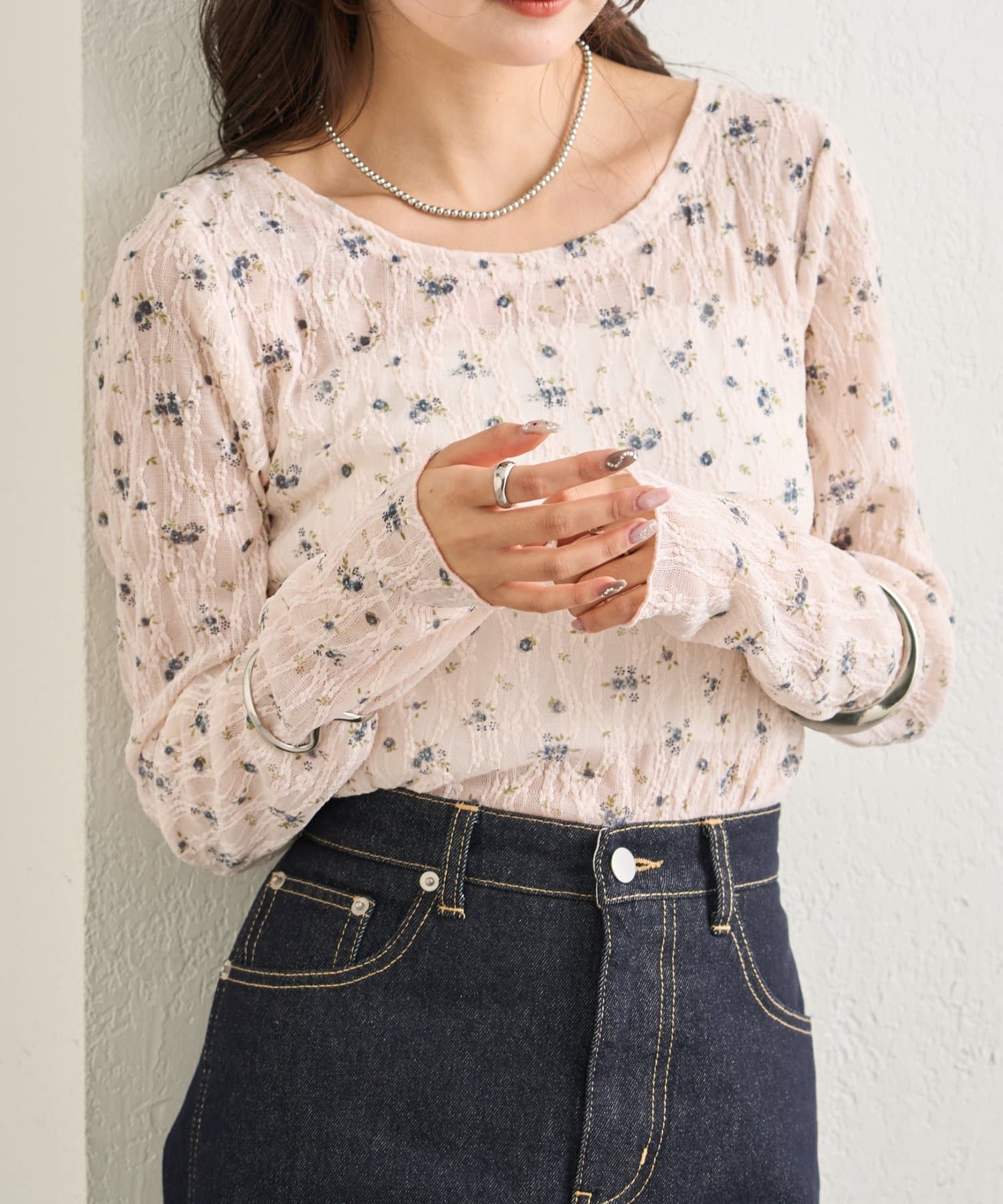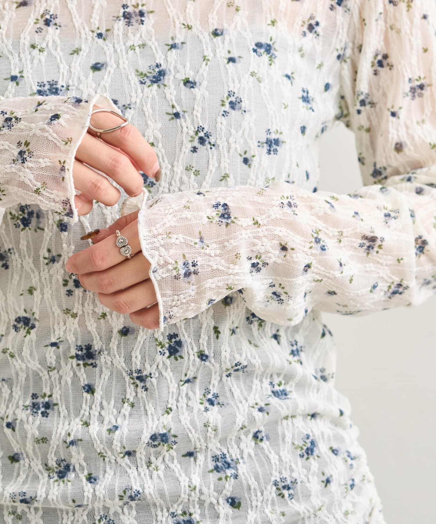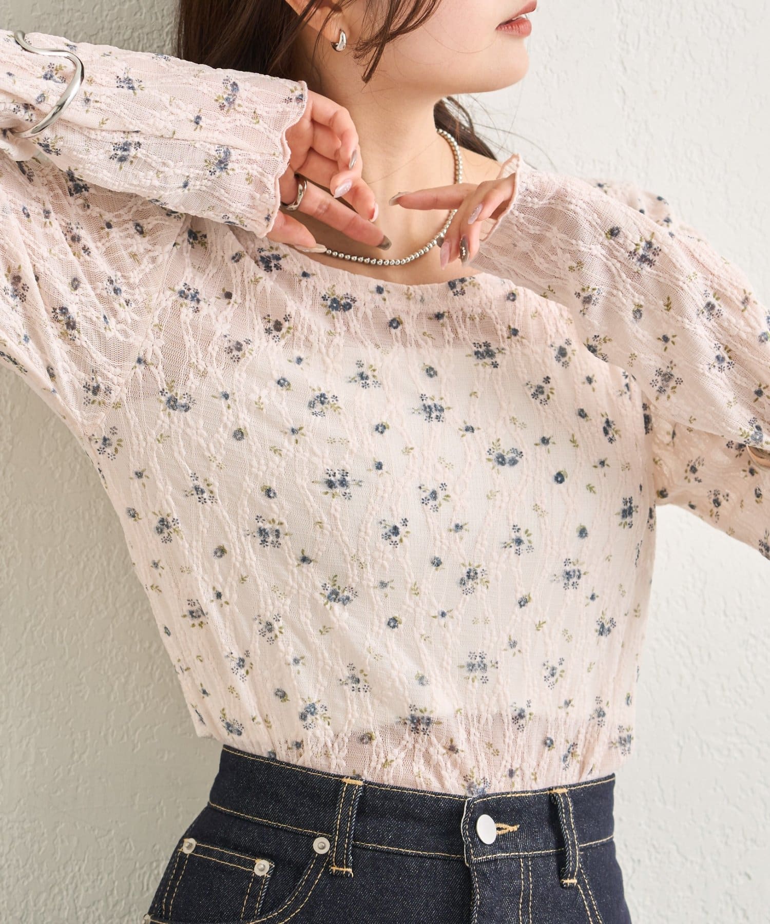 繊細なレースと小花柄がフェミニンな印象のシアーロンT。