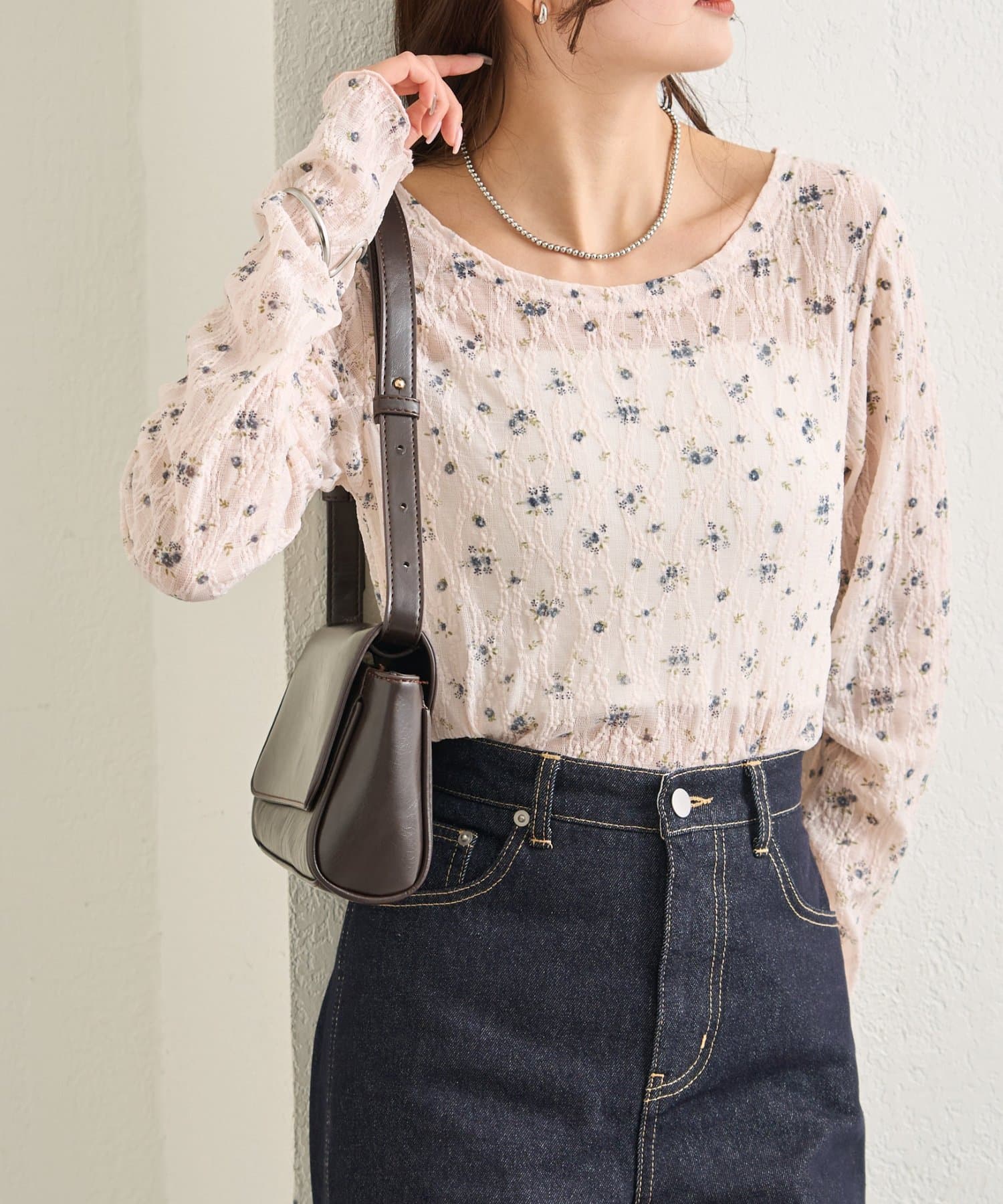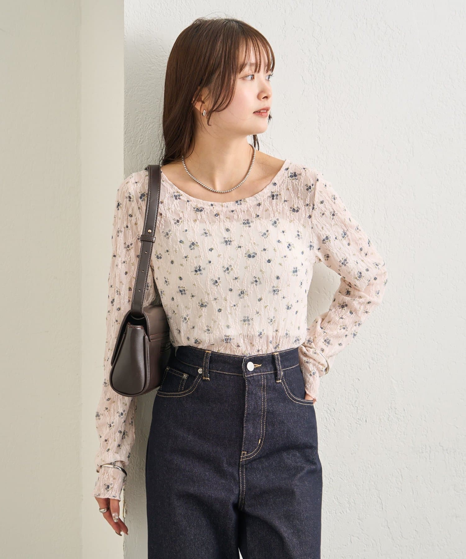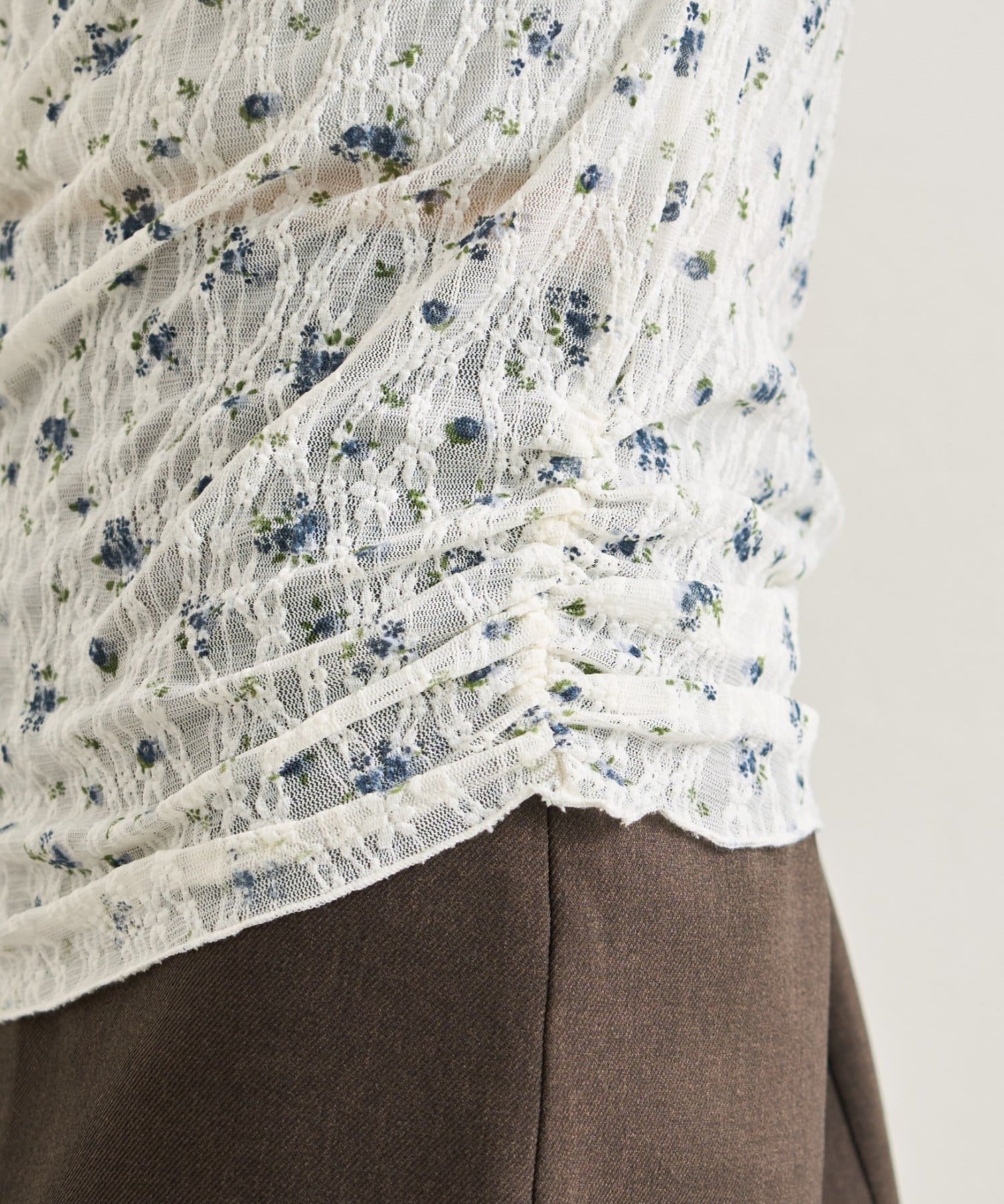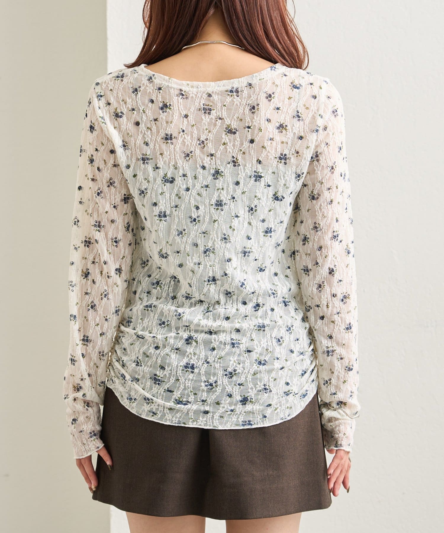 繊細なレースと小花柄がフェミニンな印象のシアーロンT。