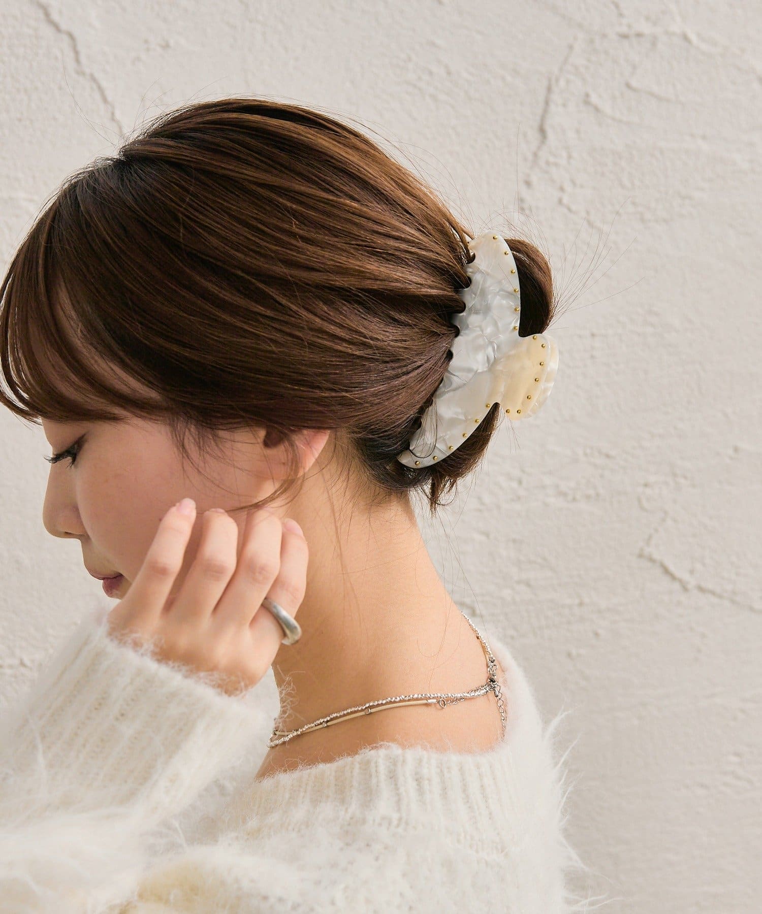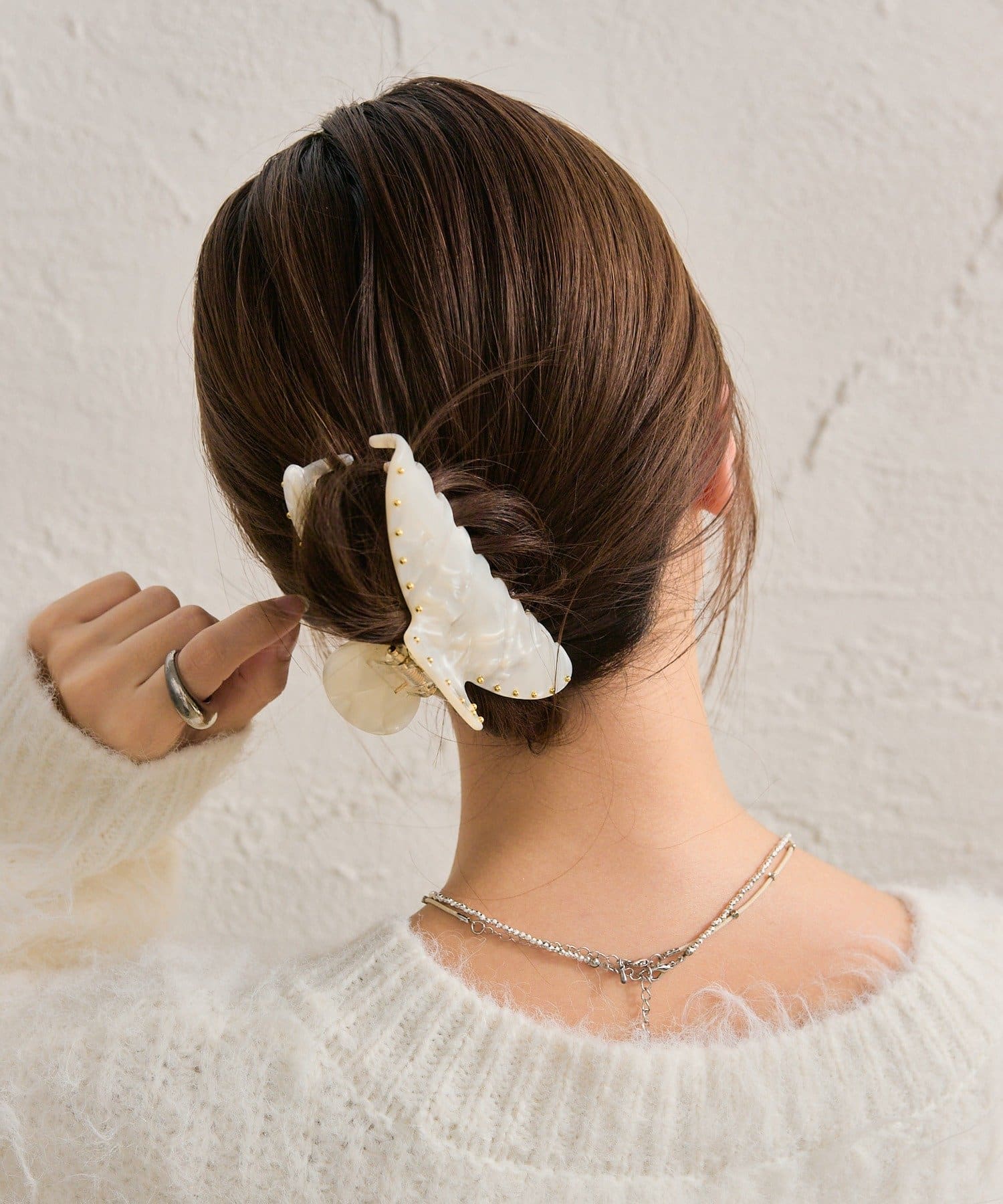 ・シンプルながら洗練されたデザインのヘアクリップ。スタイリングにも馴染みやすいデザインです。