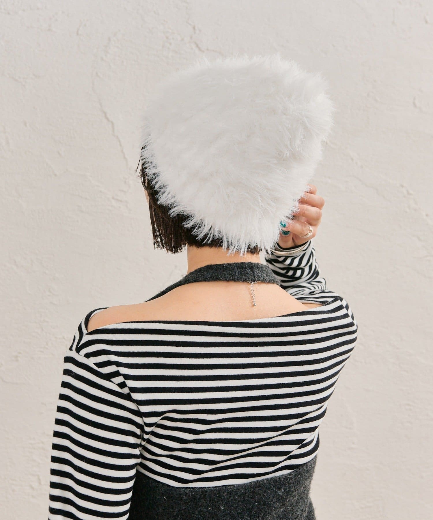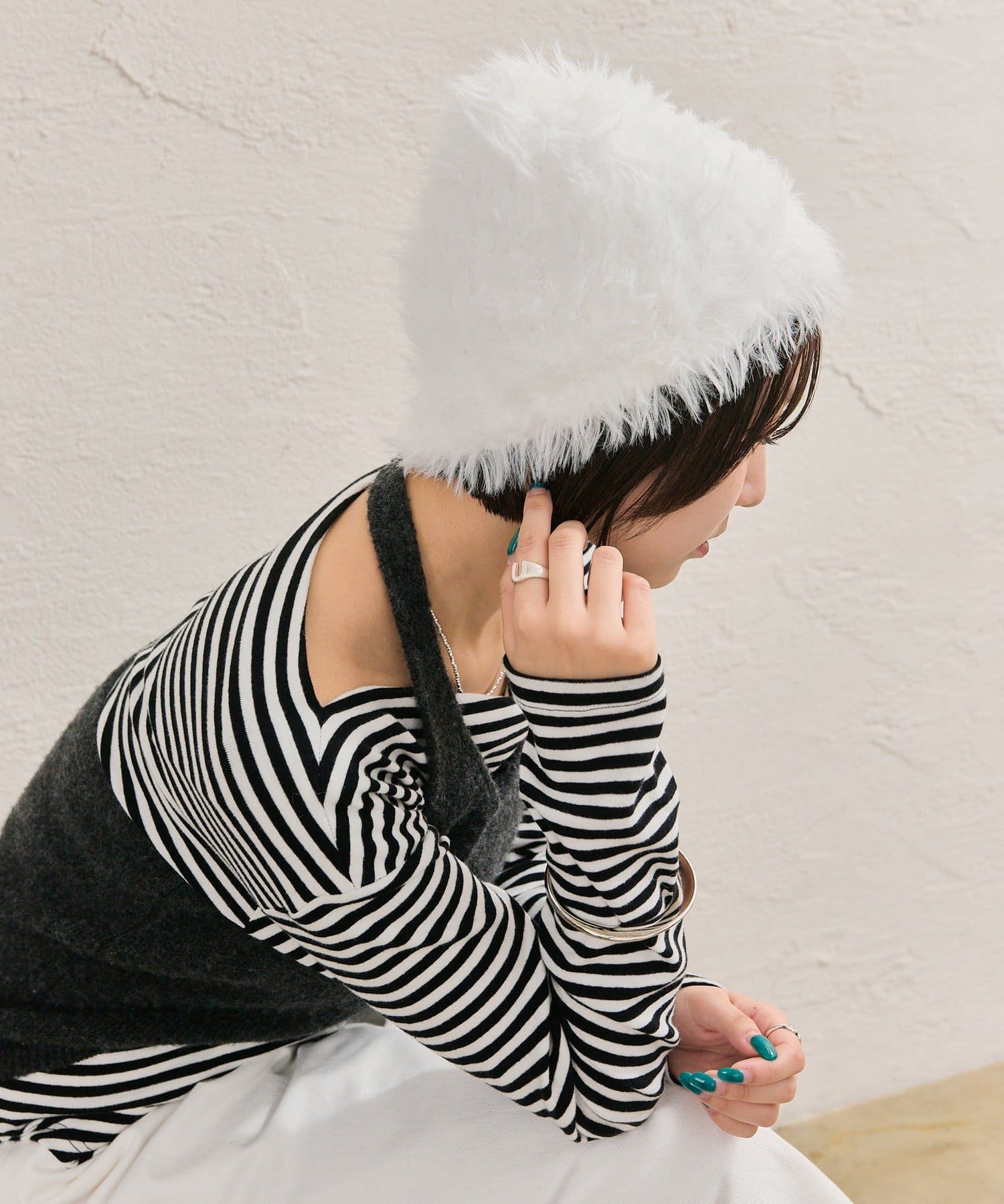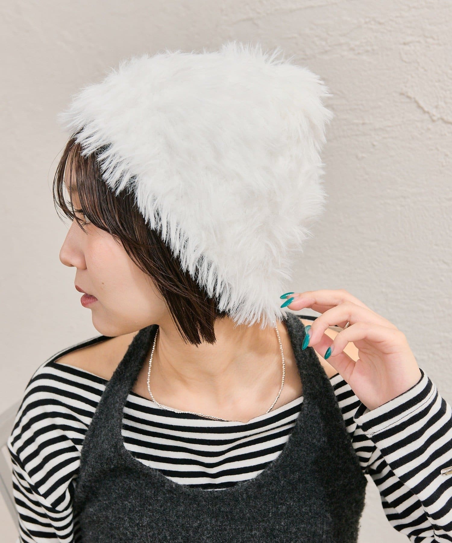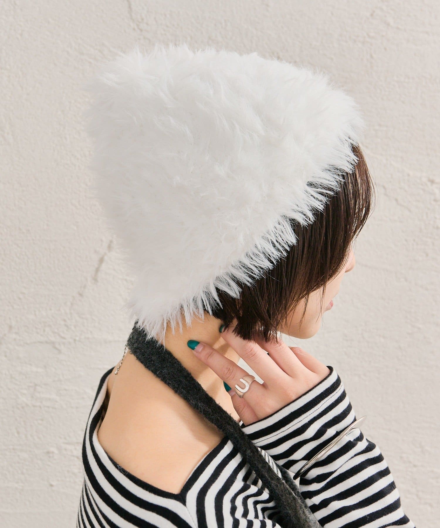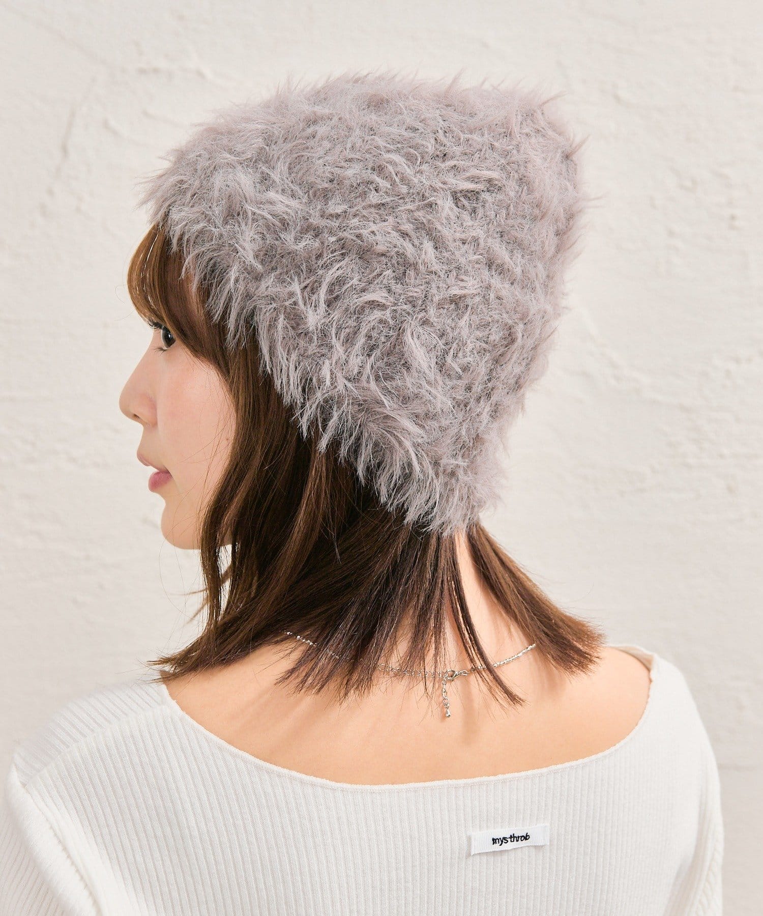 ・ふわっと毛足長めなシャギー素材で、柔らかくストレスフリーな被り心地のニット帽。