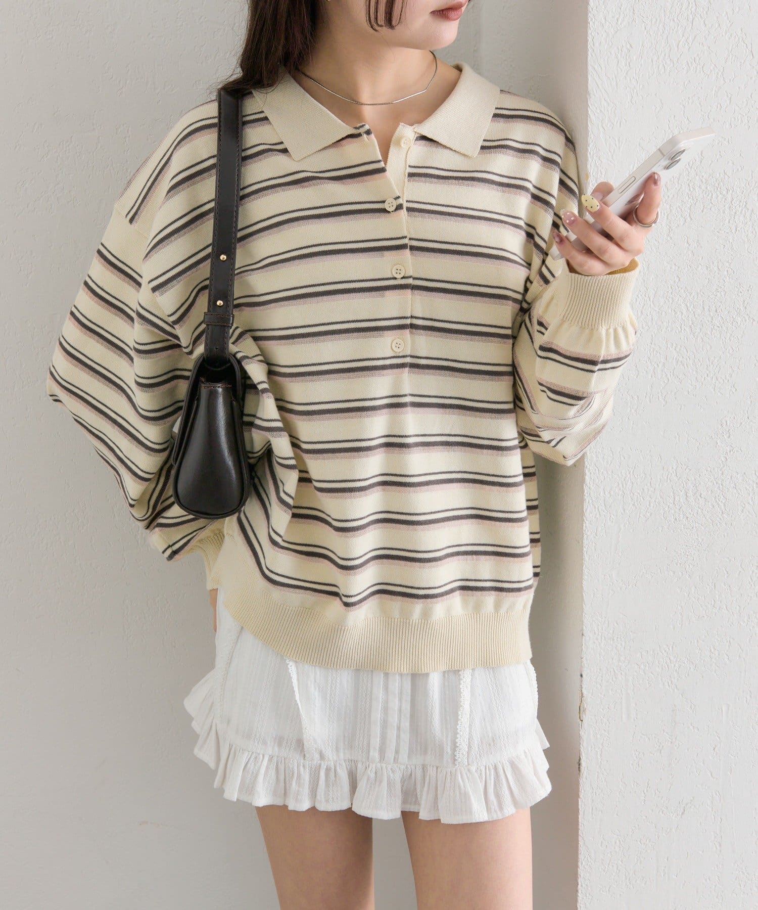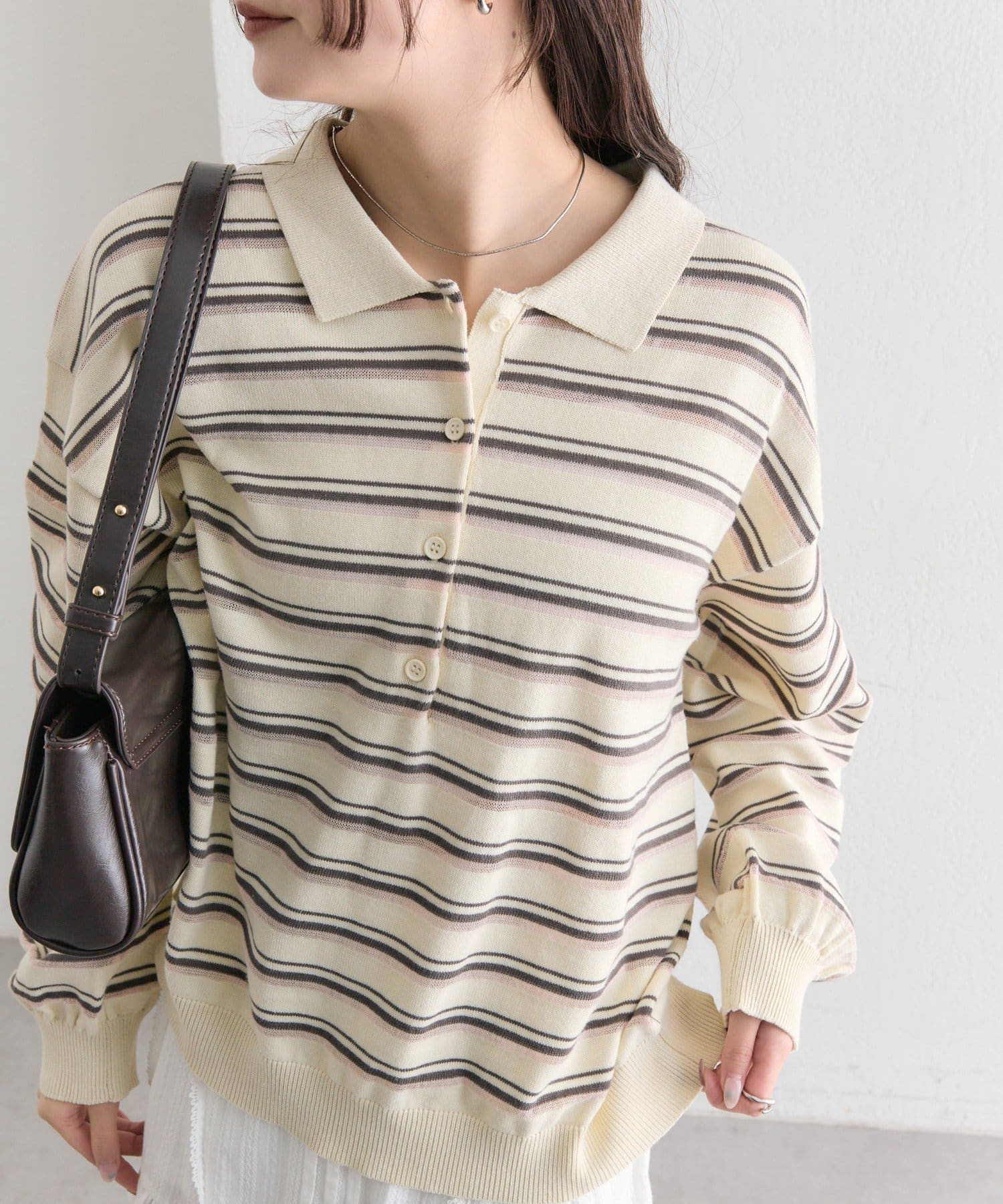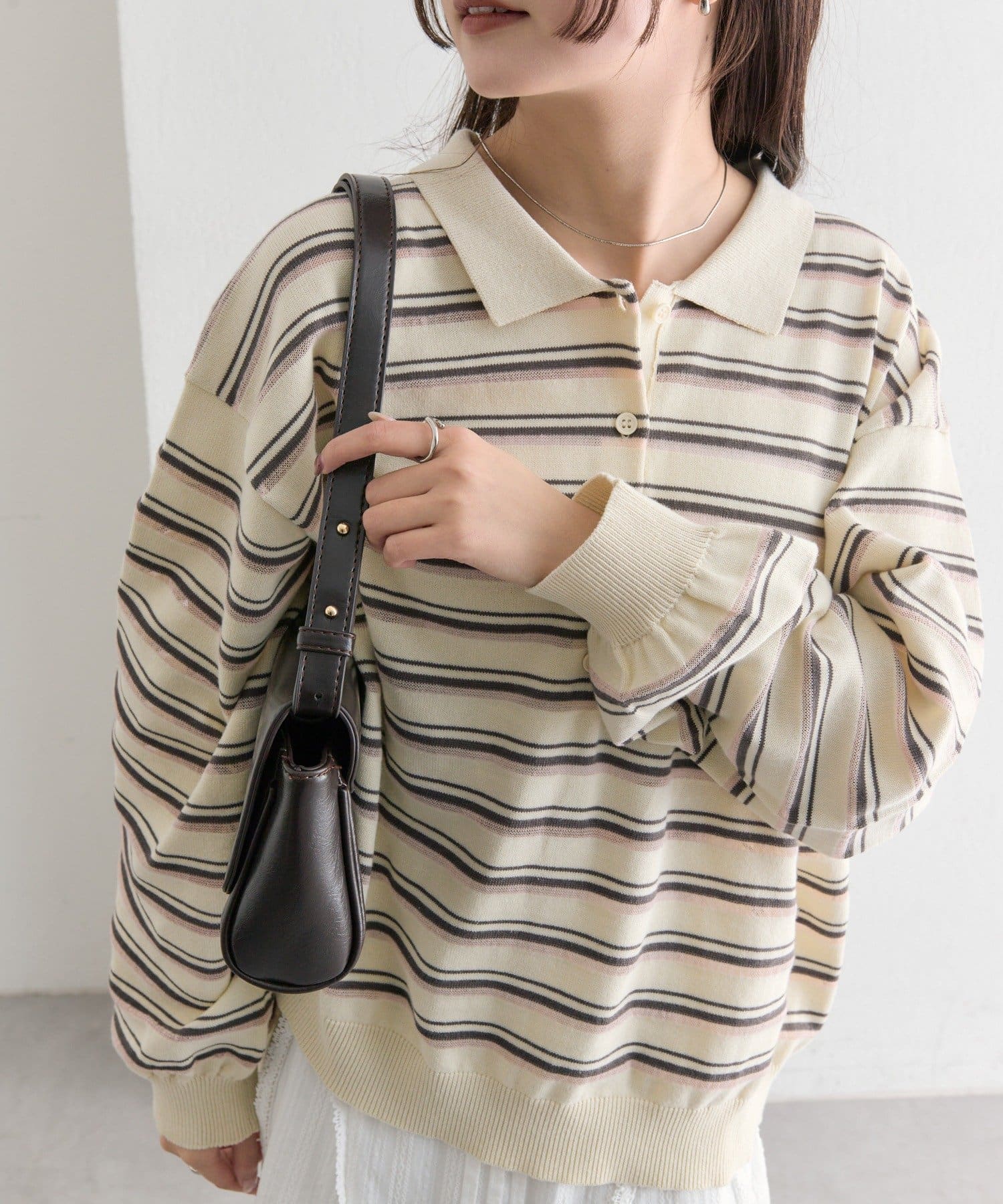 マルチボーダー柄がスタイリングの主役になるポロニット