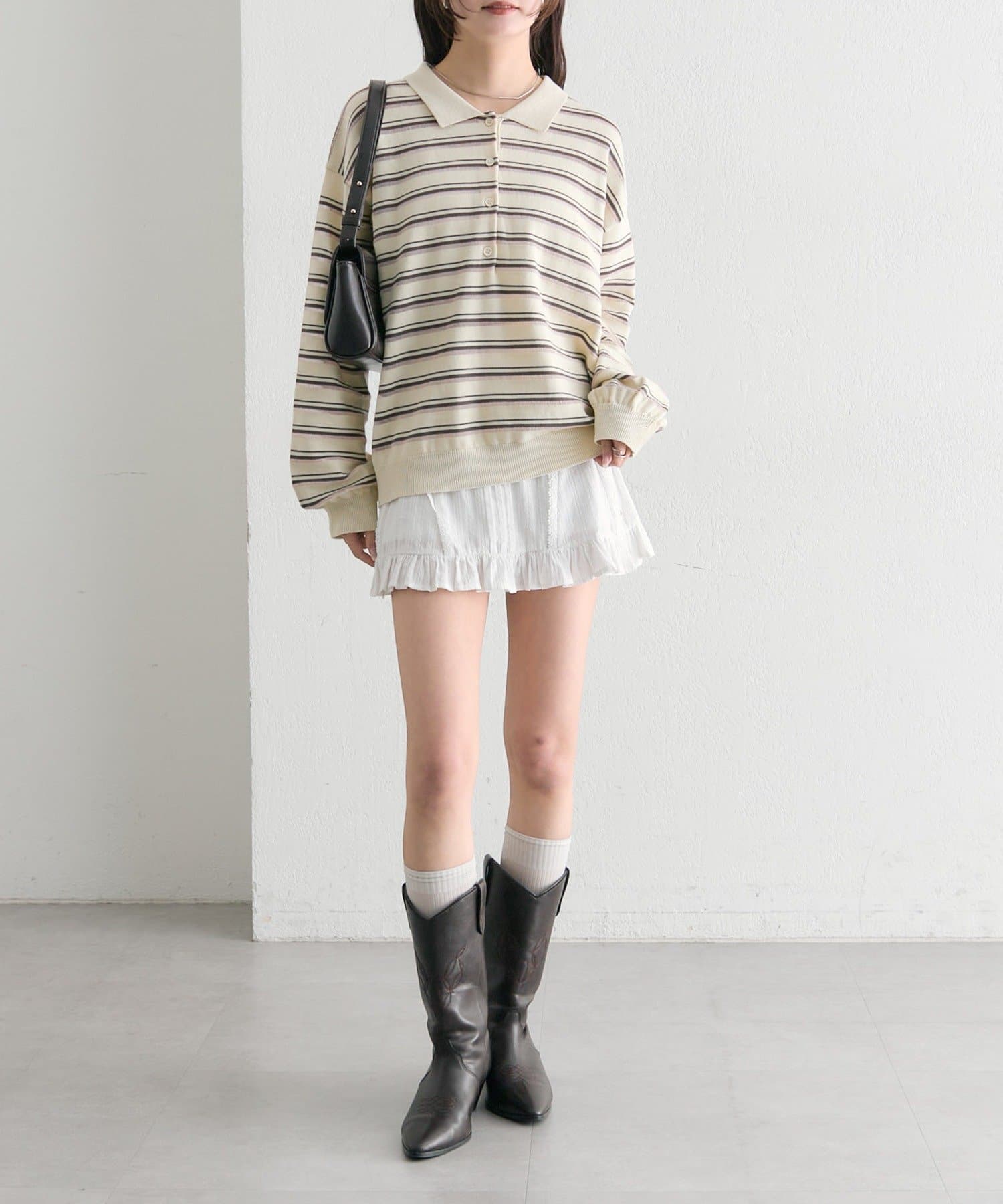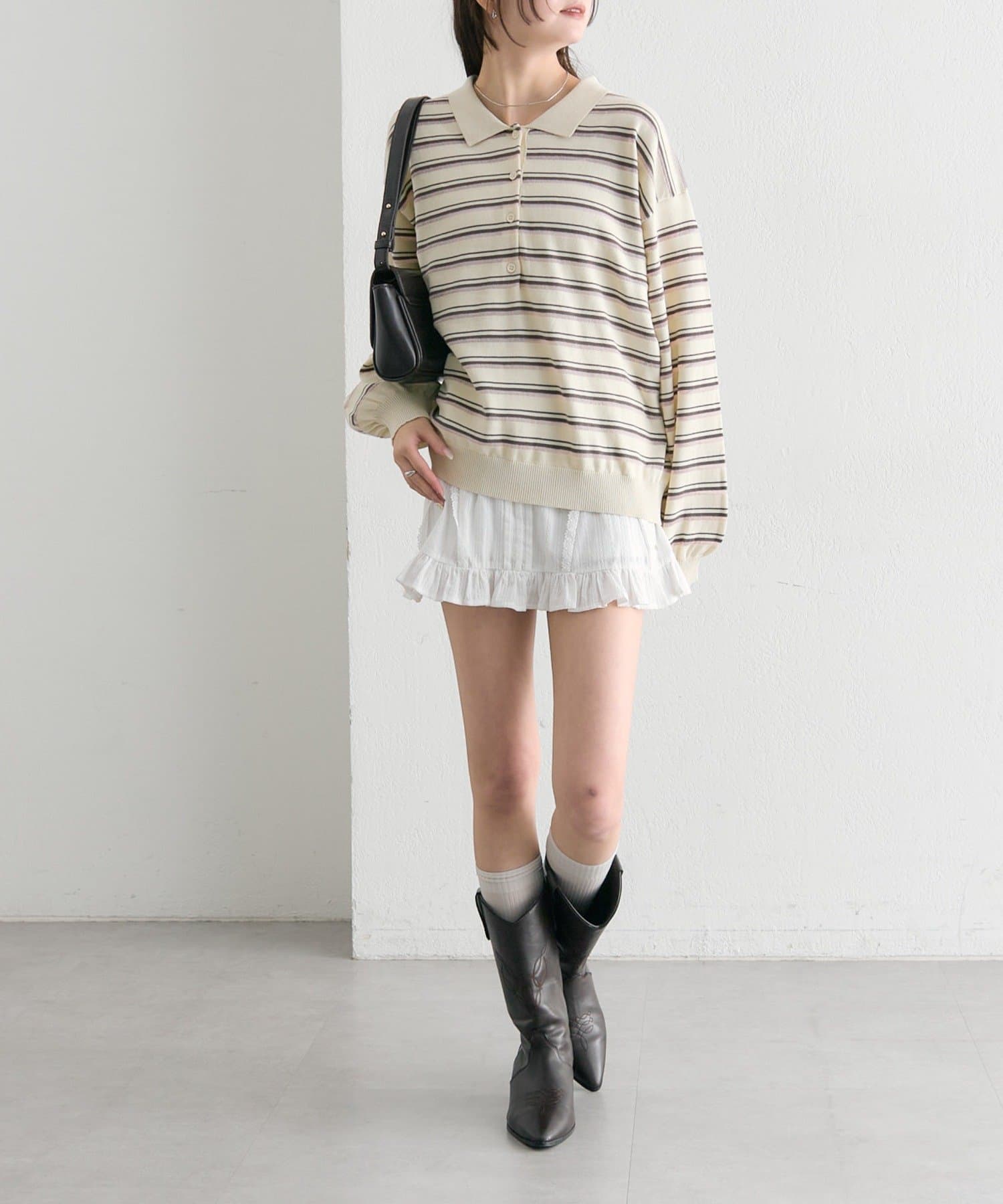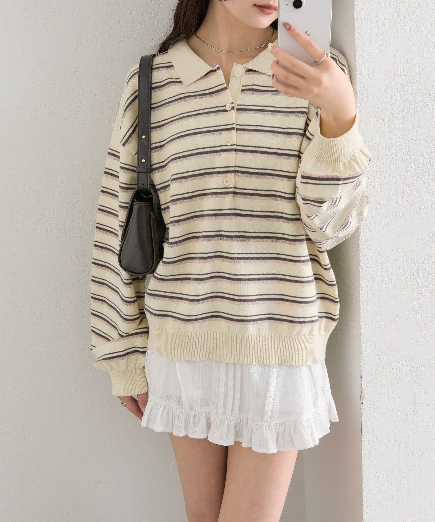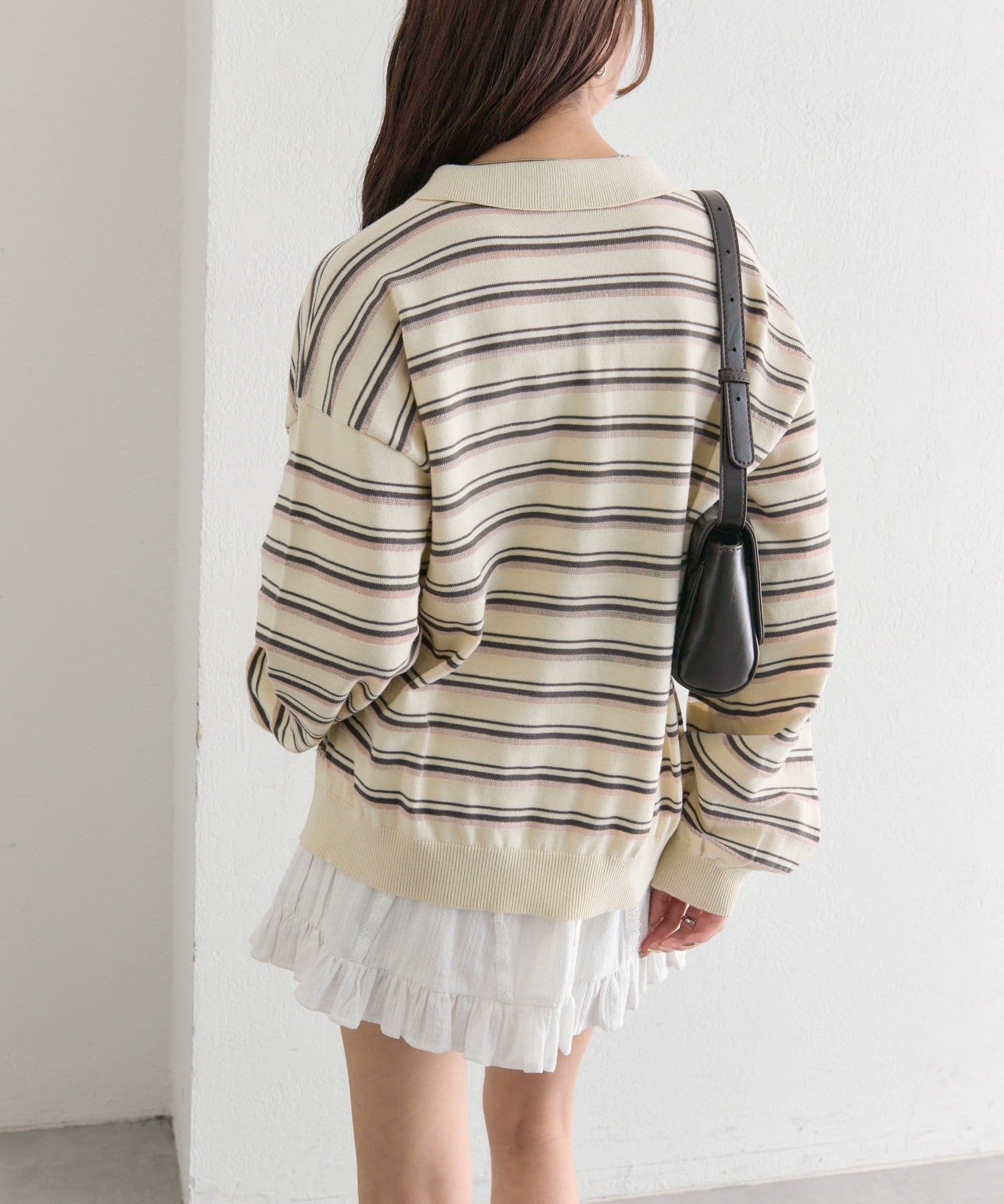 マルチボーダー柄がスタイリングの主役になるポロニット