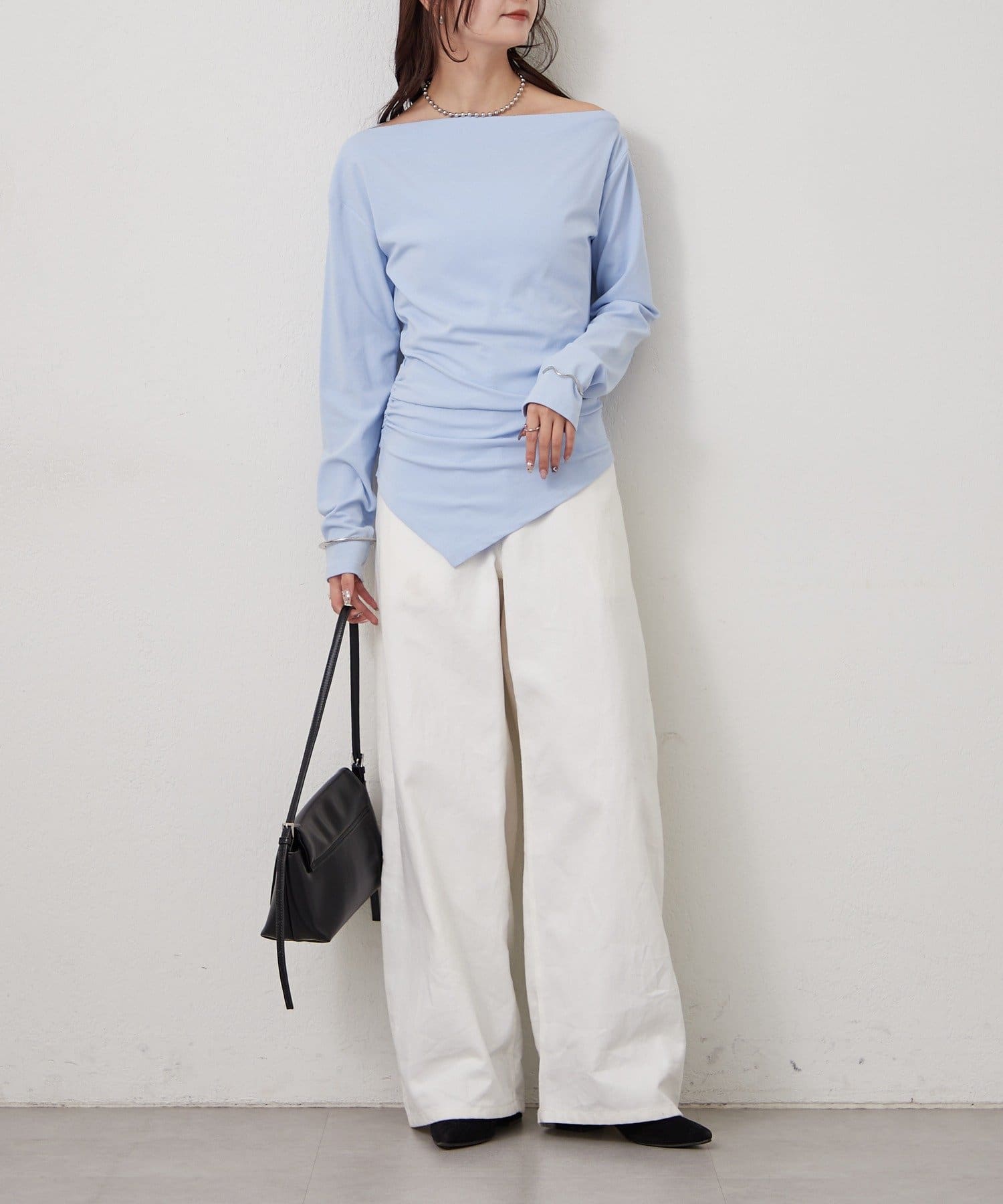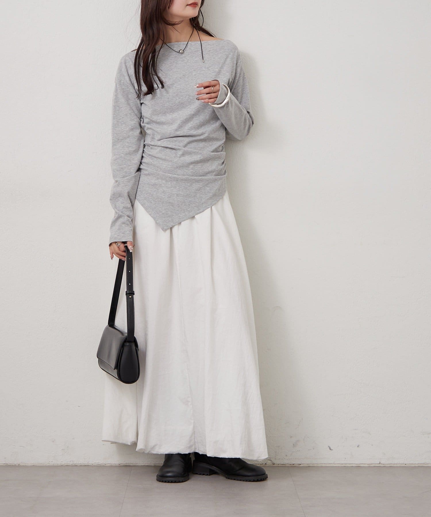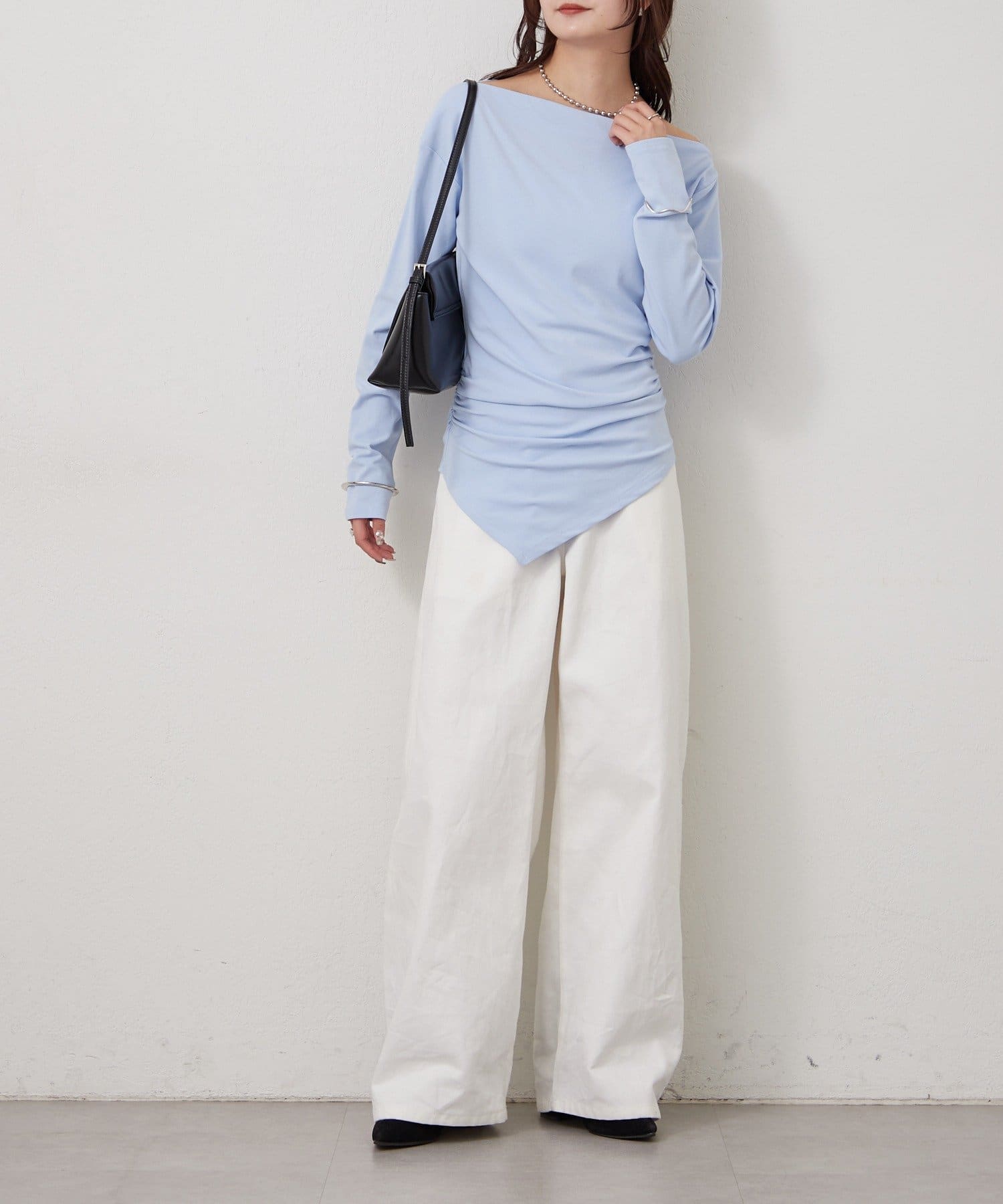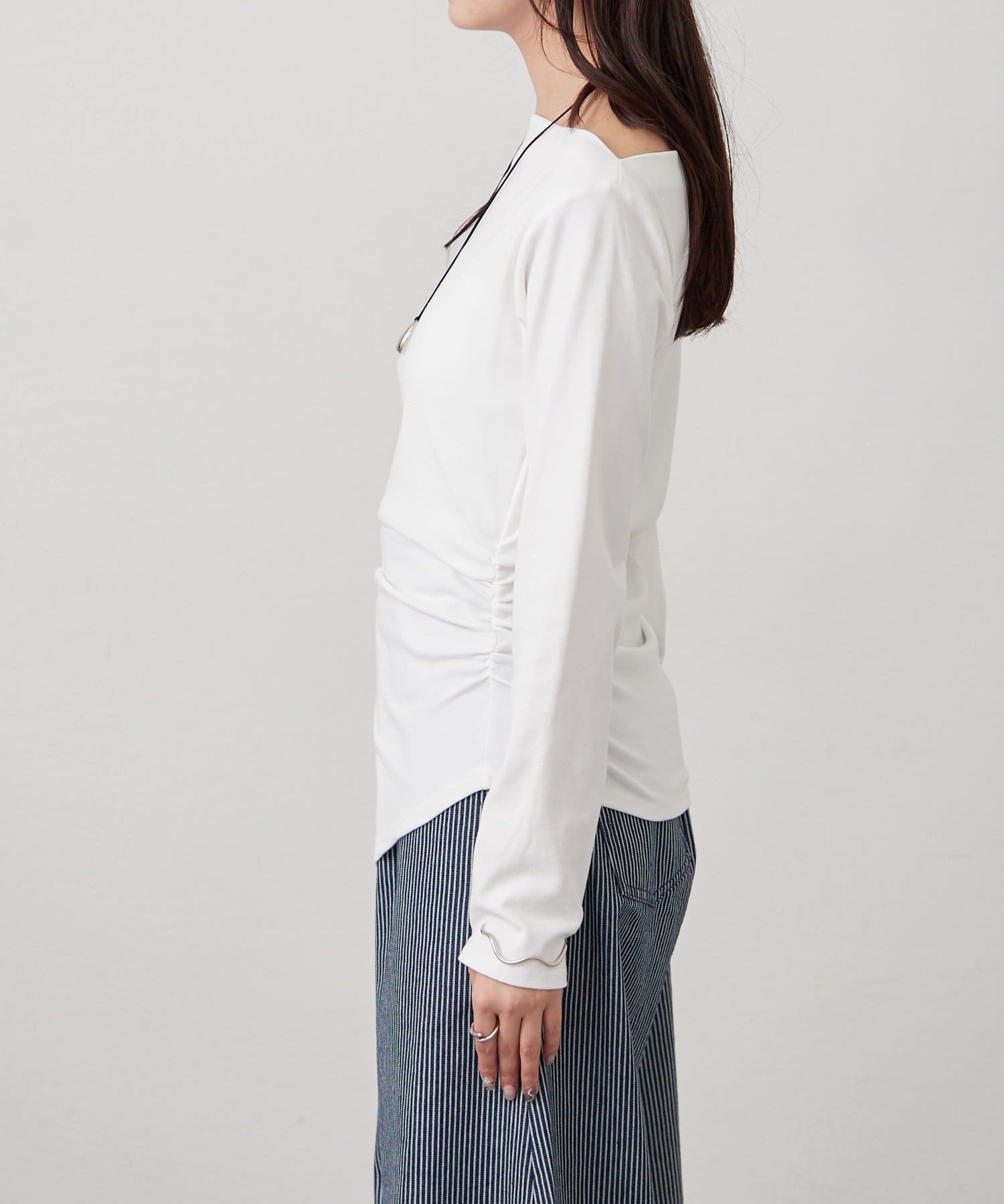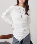 ・ウエストサイドに入ったギャザーで、一枚でも決まるトップス。