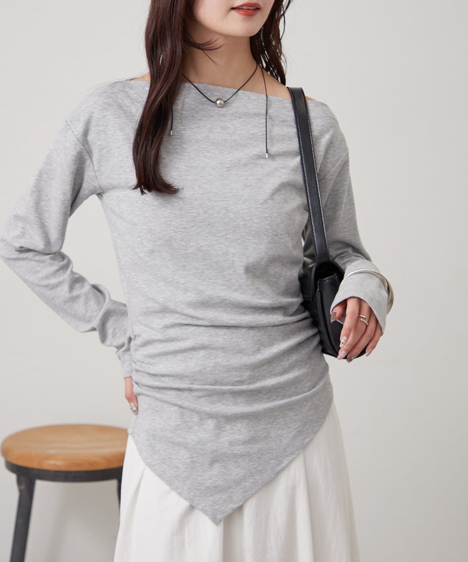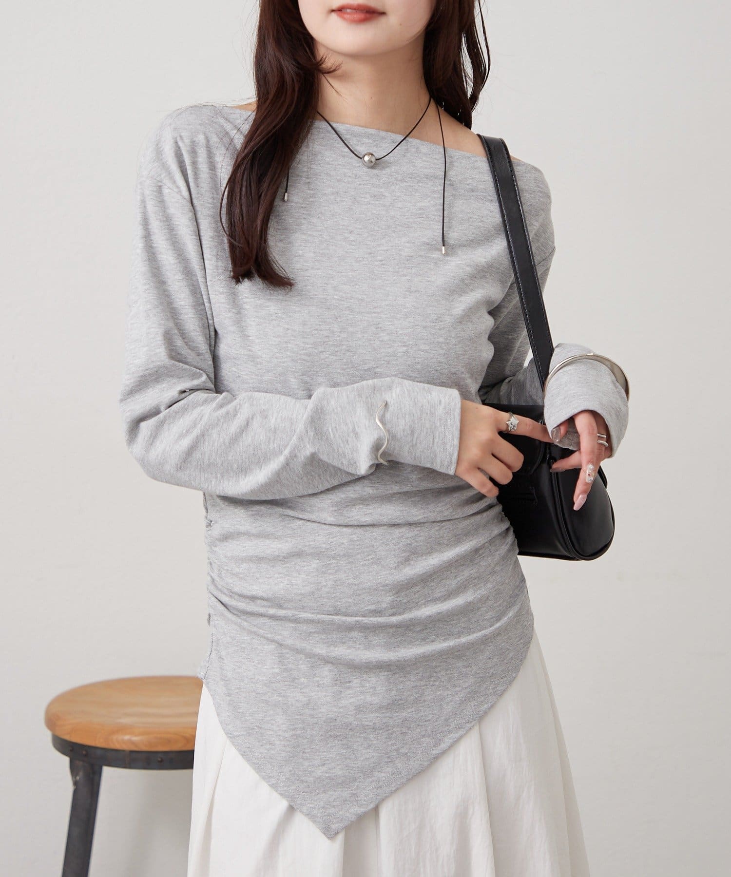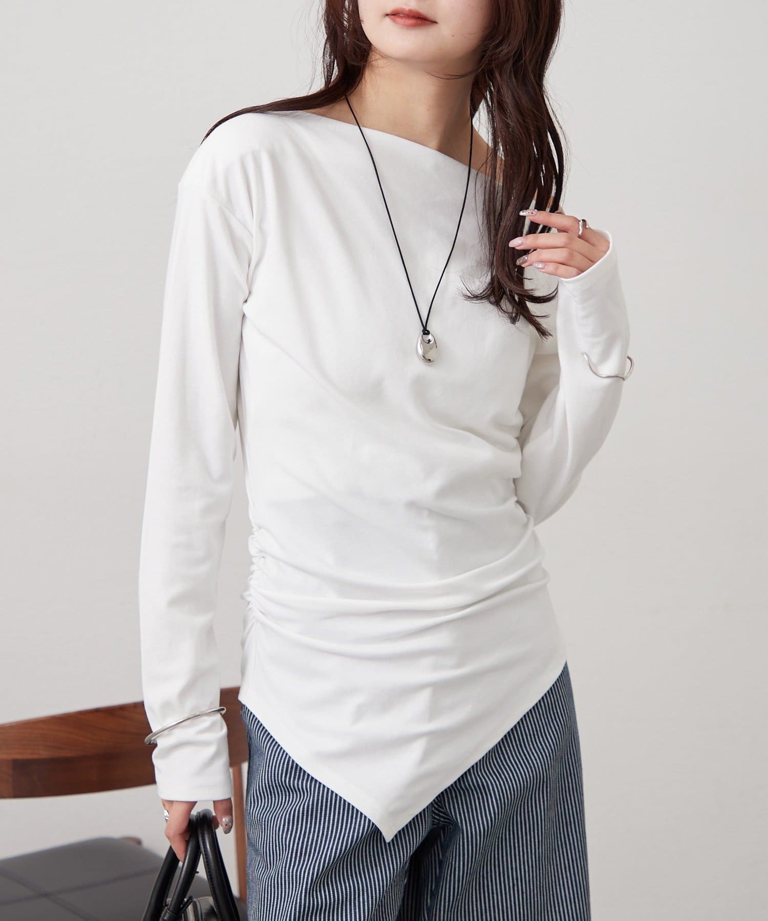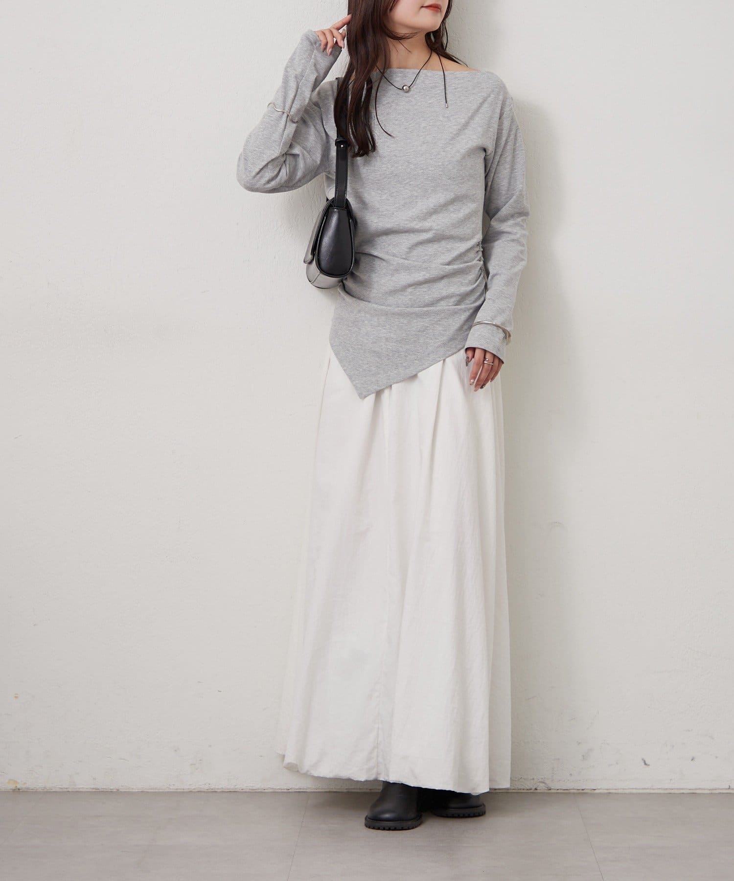 ・ウエストサイドに入ったギャザーで、一枚でも決まるトップス。
