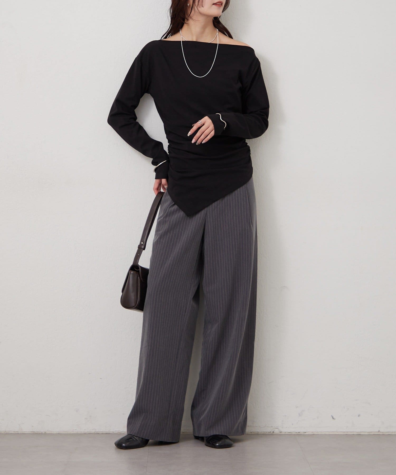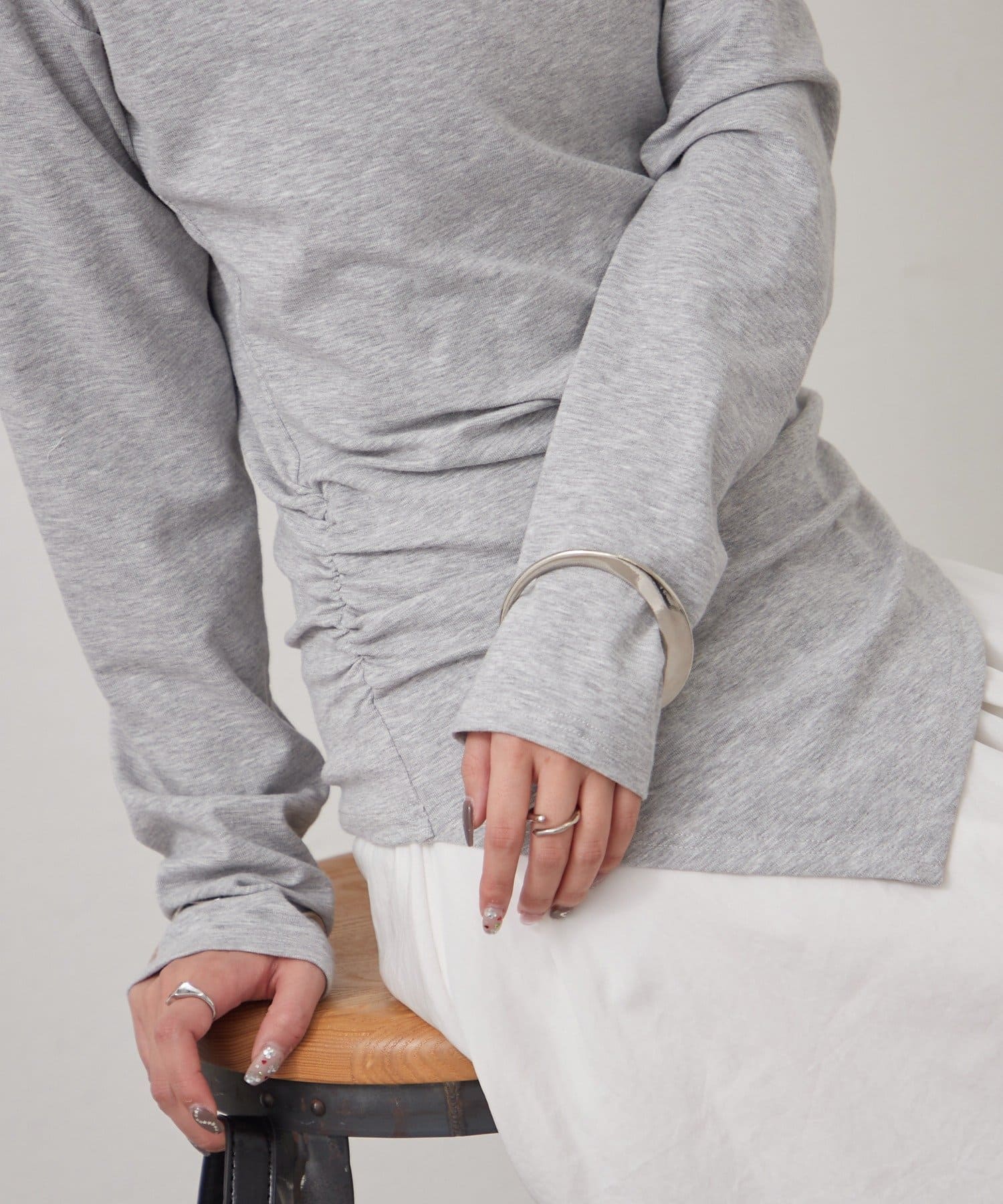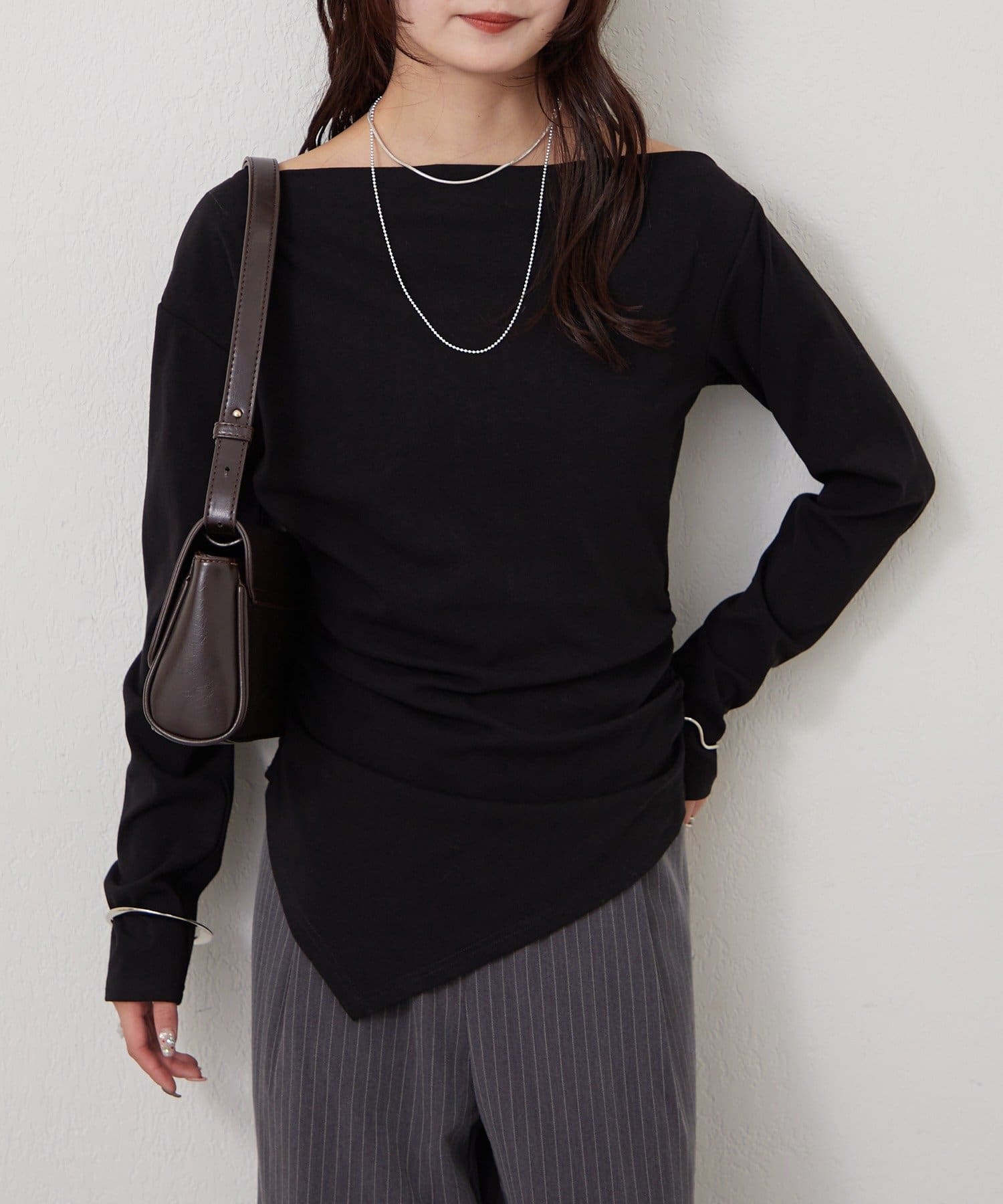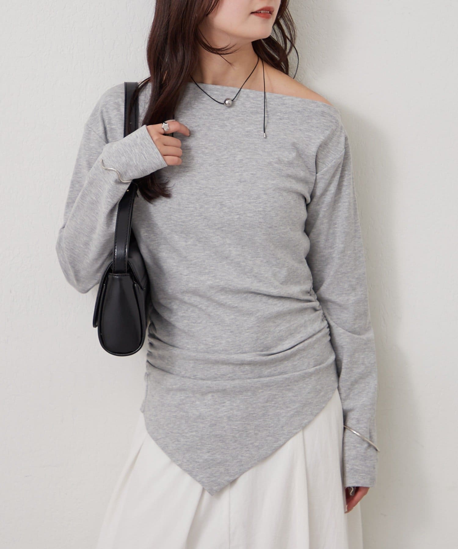 ・ウエストサイドに入ったギャザーで、一枚でも決まるトップス。