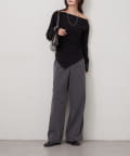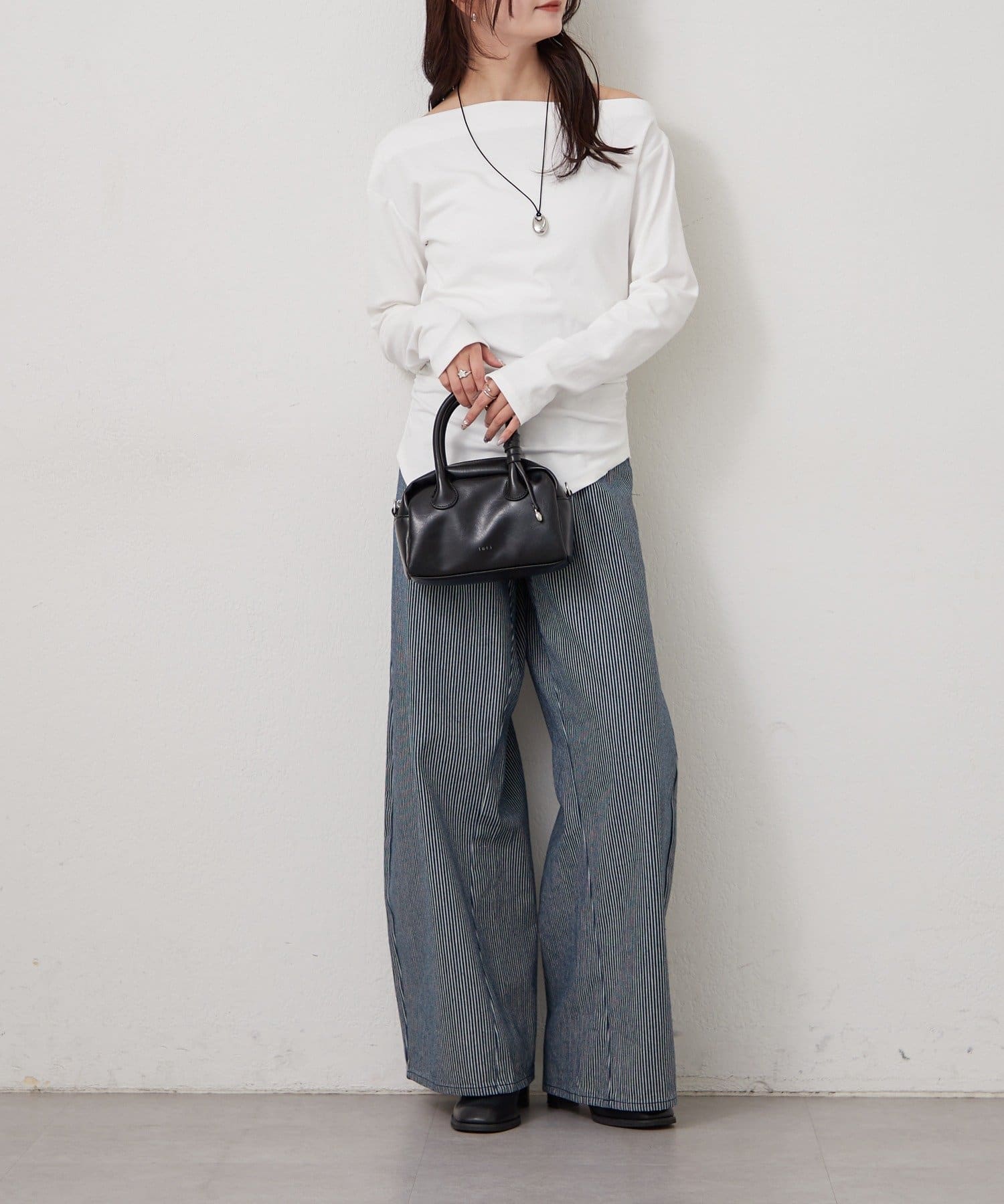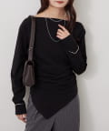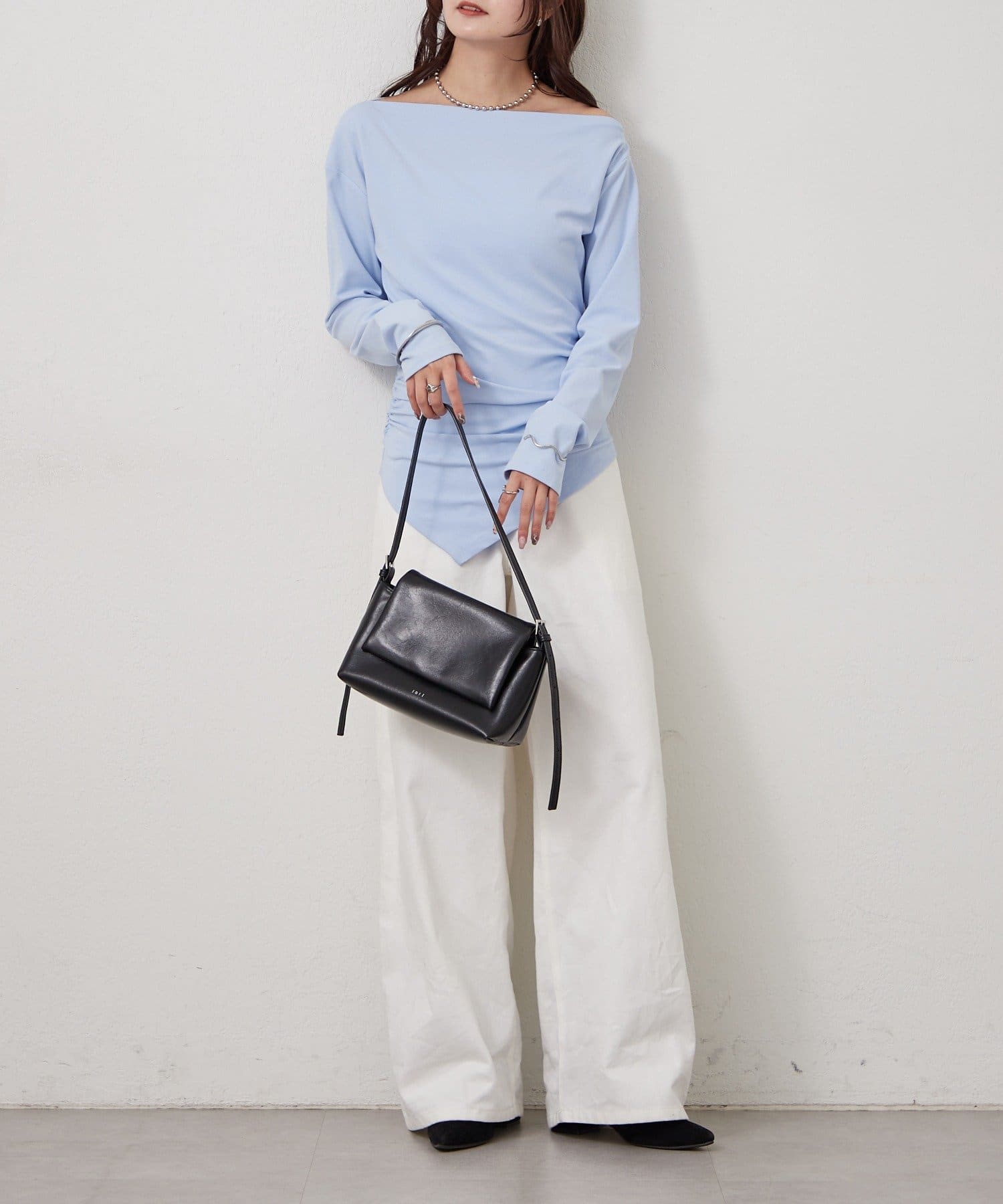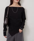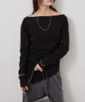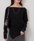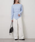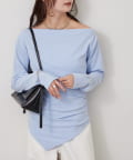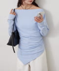 ・程よく肩が落ちるオフショルデザインで、女性らしさと抜け感を演出。