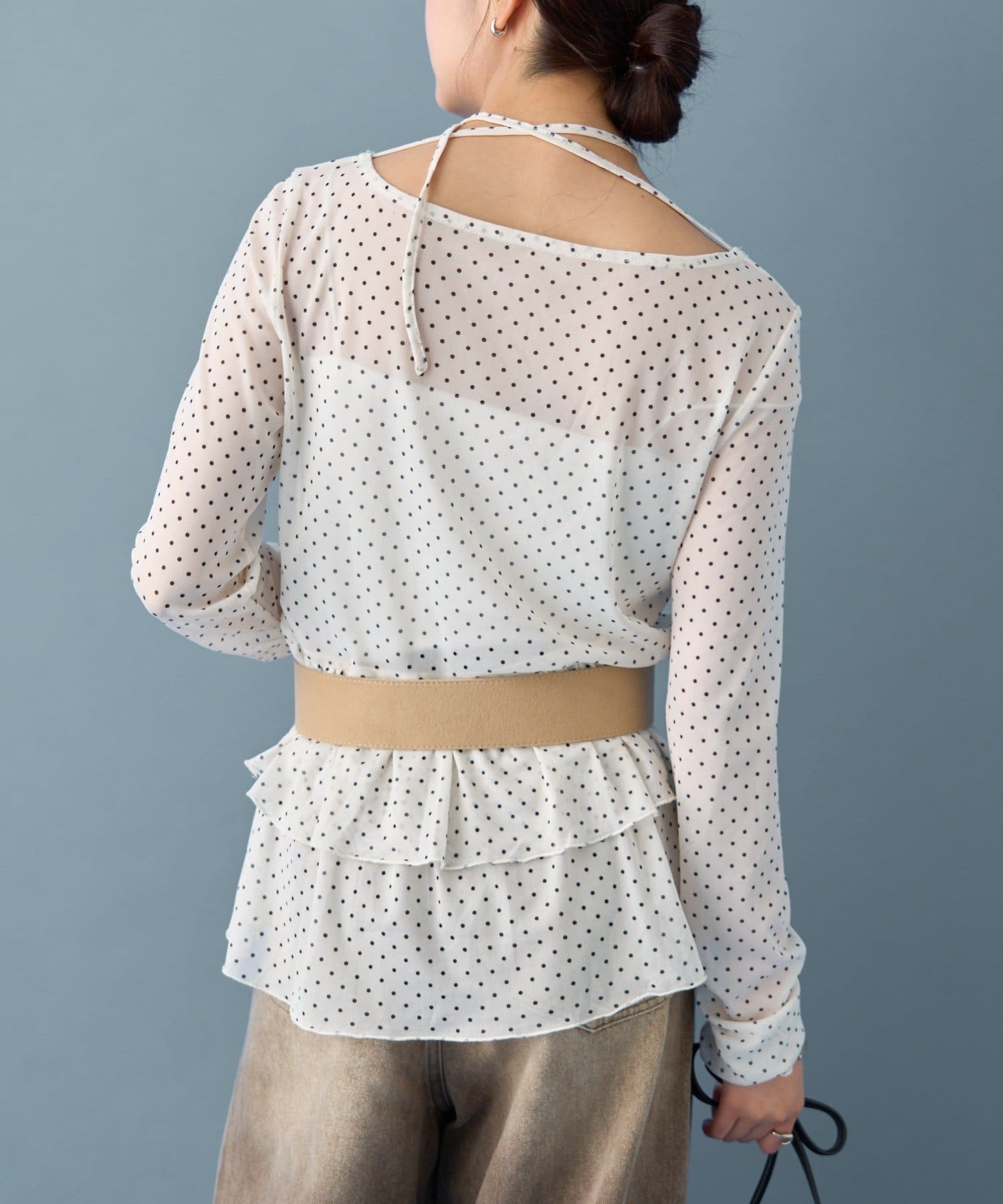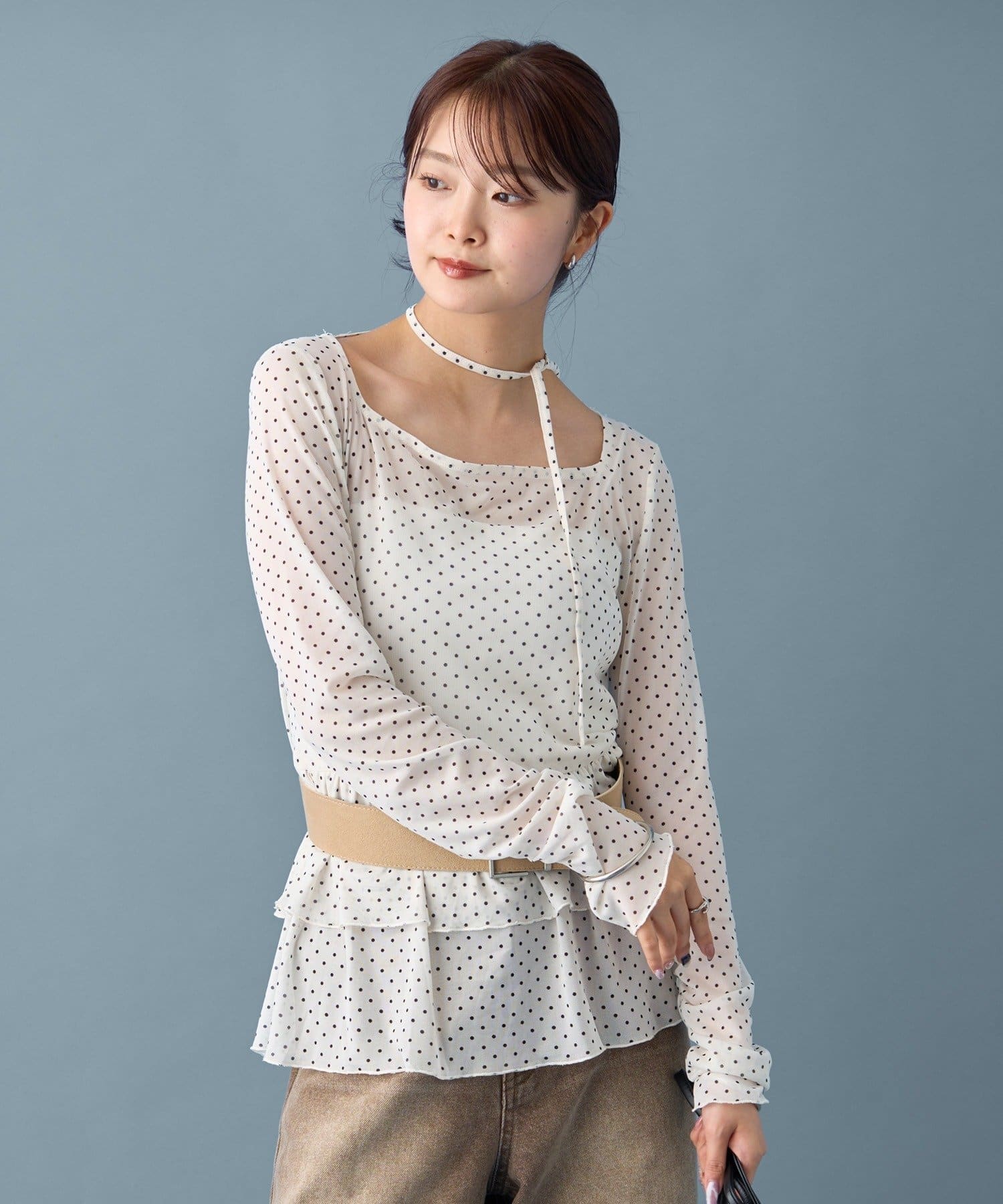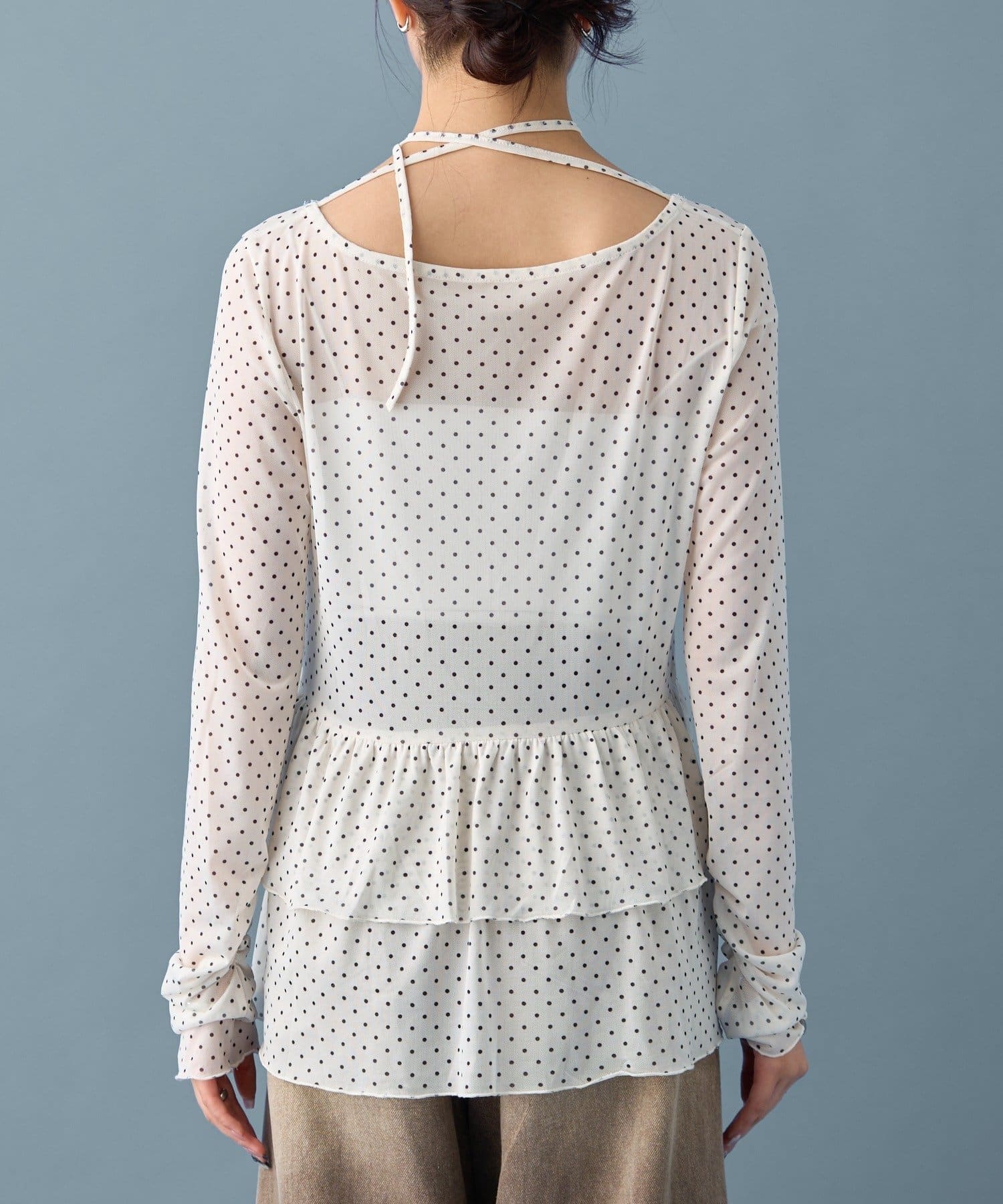 ドット柄の可愛らしさの中に、シアー素材の透け感で女性らしさも表現してくれました!