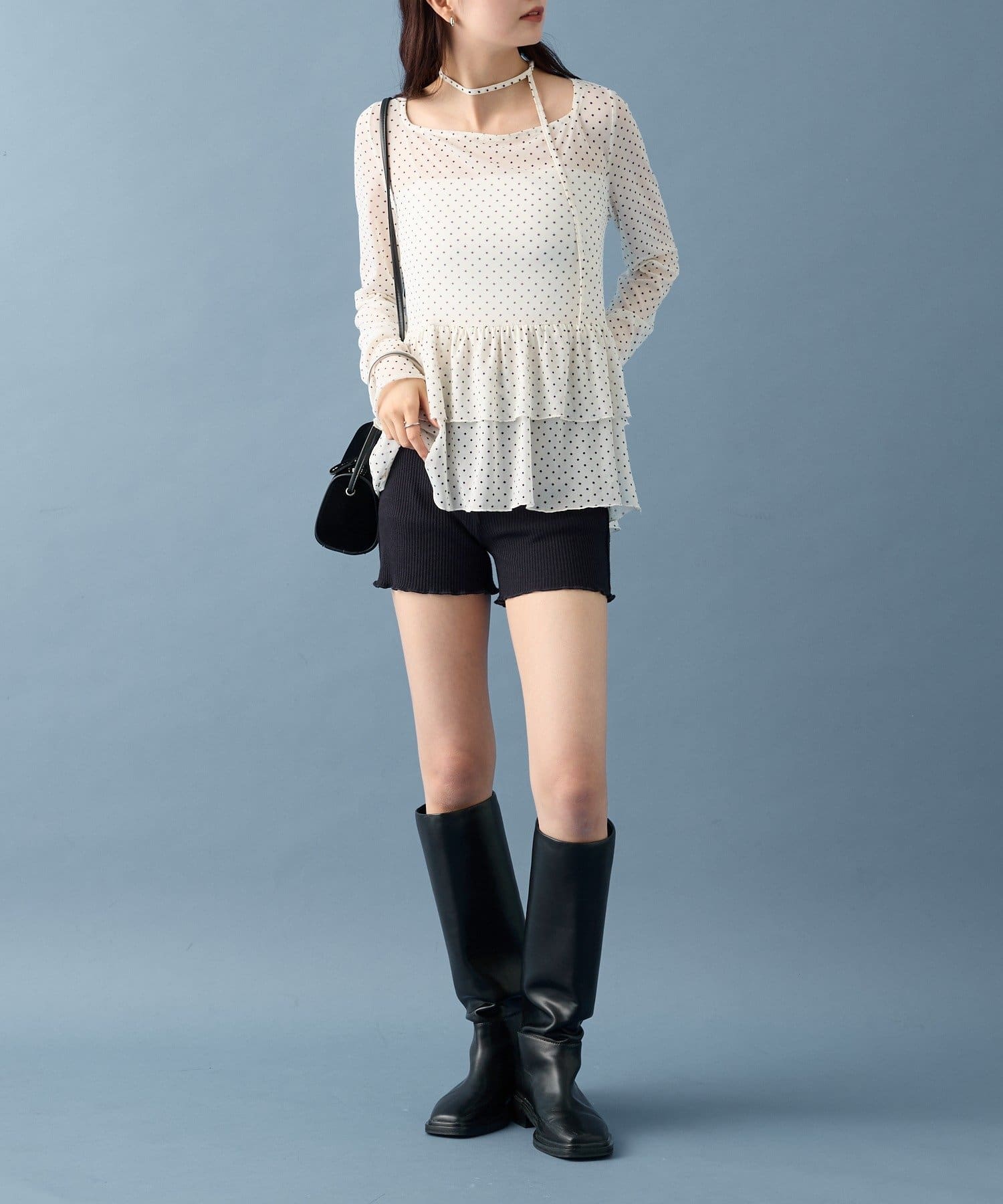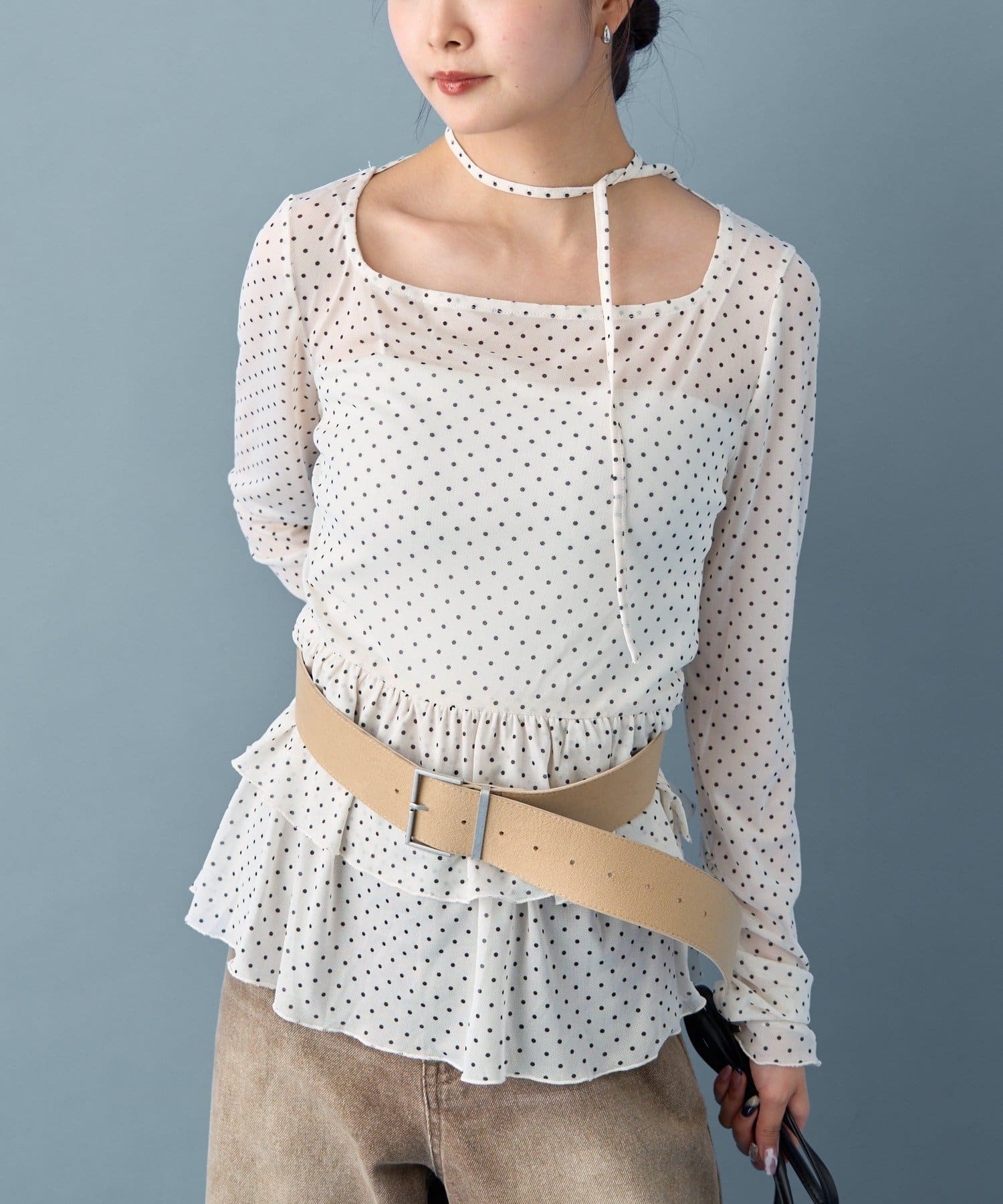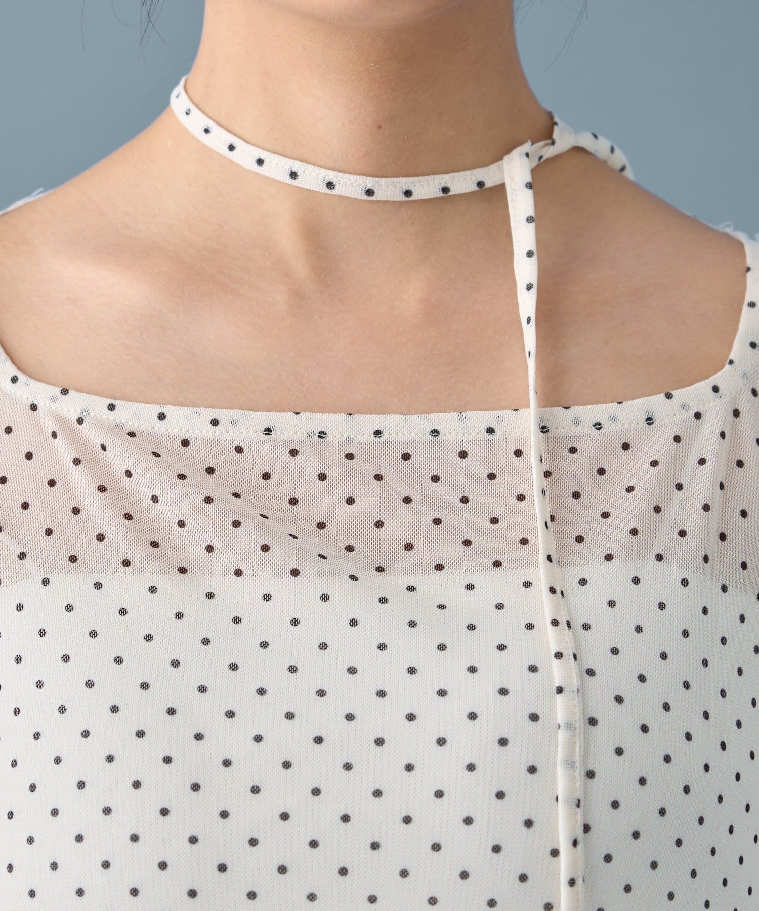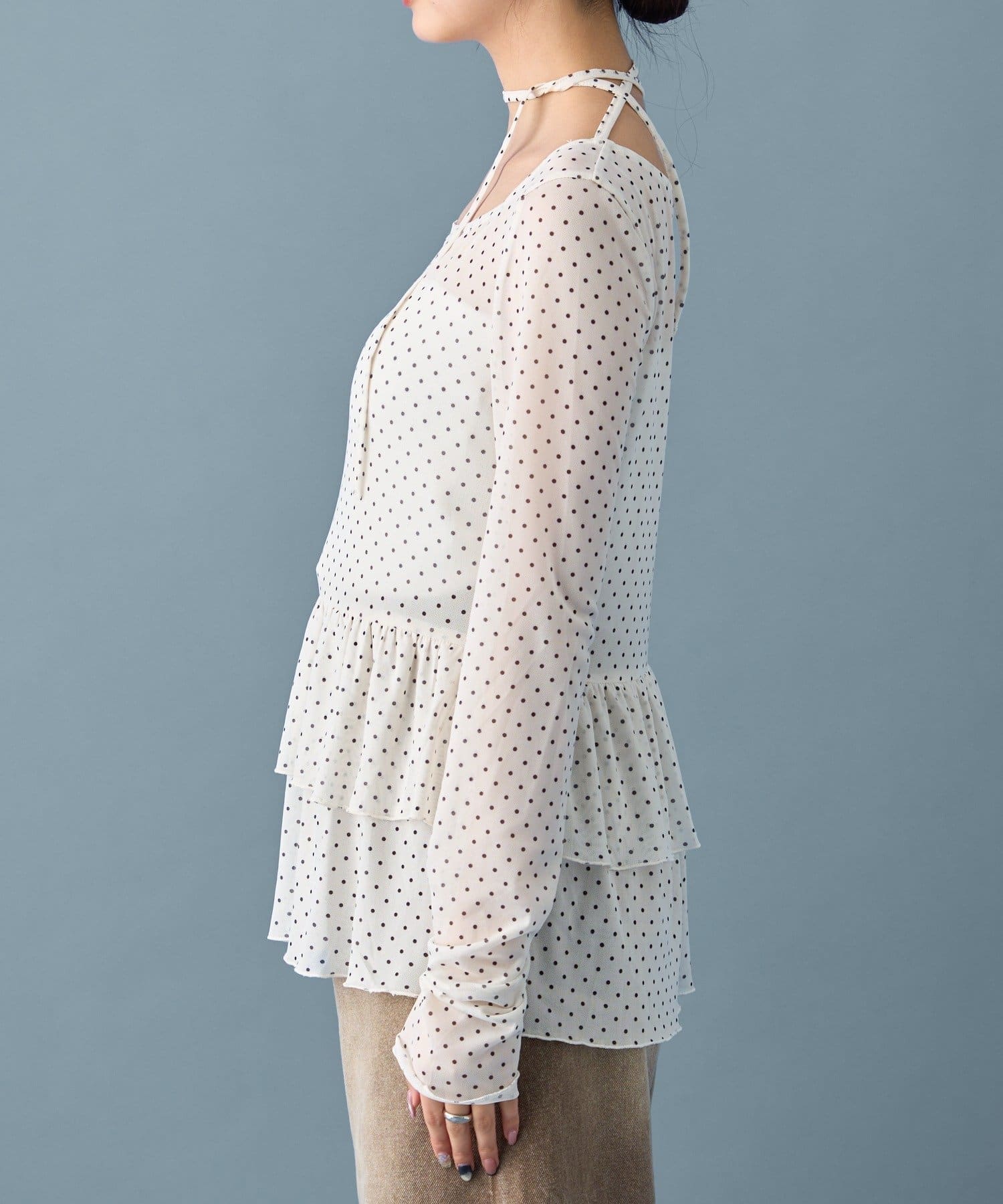 ドット柄の可愛らしさの中に、シアー素材の透け感で女性らしさも表現してくれました!